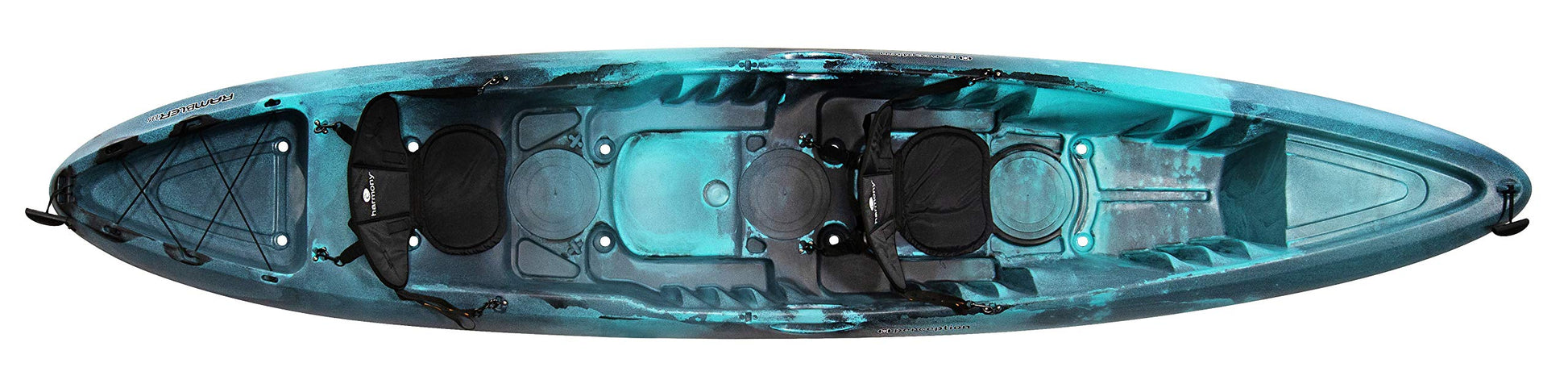 The Perception Rambler 13.5 tandem kayak is the perfect choice for new paddlers or anyone in search of a playful, highly versatile, and affordable boat. The supremely stable sit-on-top design is exceptionally safe and easy for anyone to get in and out of. The roomy, two-person design maintains the maneuverability of its smaller sibling, while adding stability. Features like easy-access storage and spacious seats that are padded and adjustable mean maximum comfort while sharing the water.