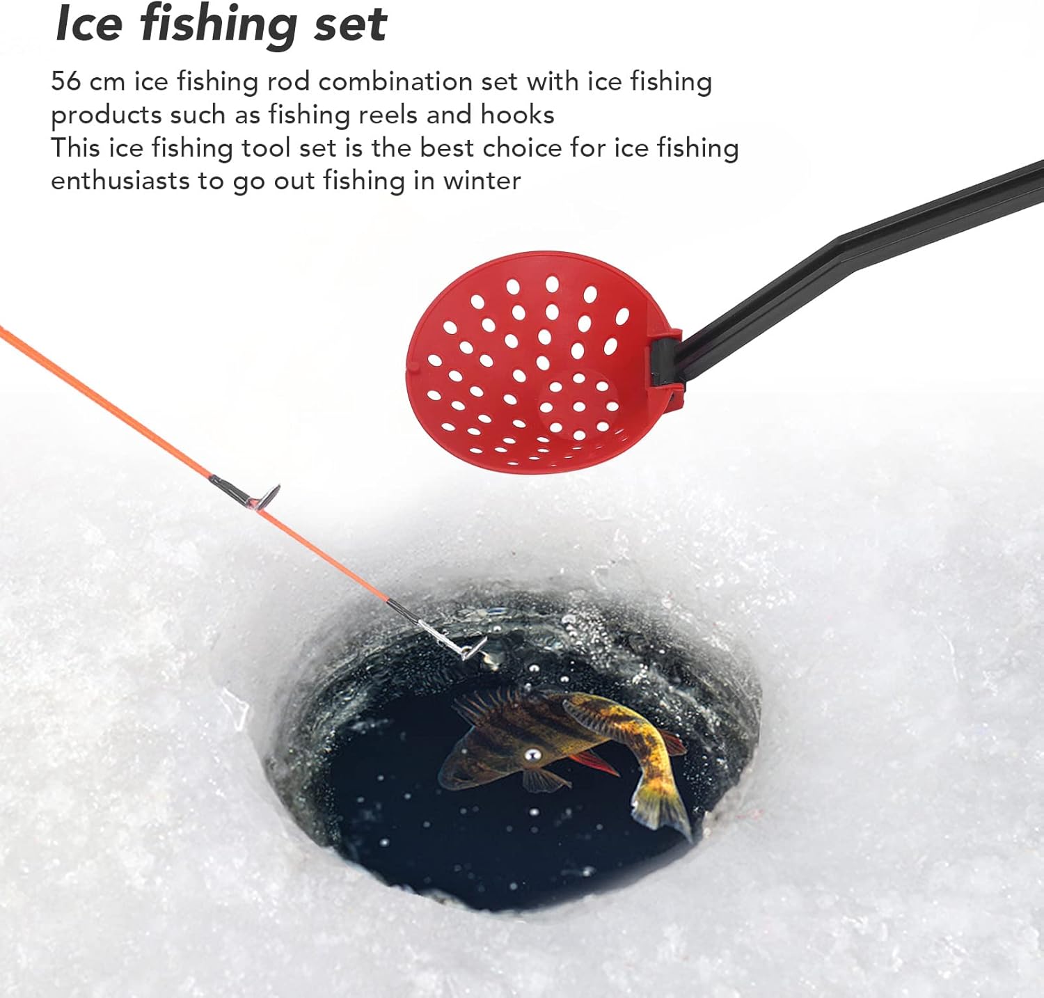 - Ice Fishing Tool Set: A 56cm ice fishing rod combination set with ice fishing products such as reels and hooks for your chances of success on the ice this season.