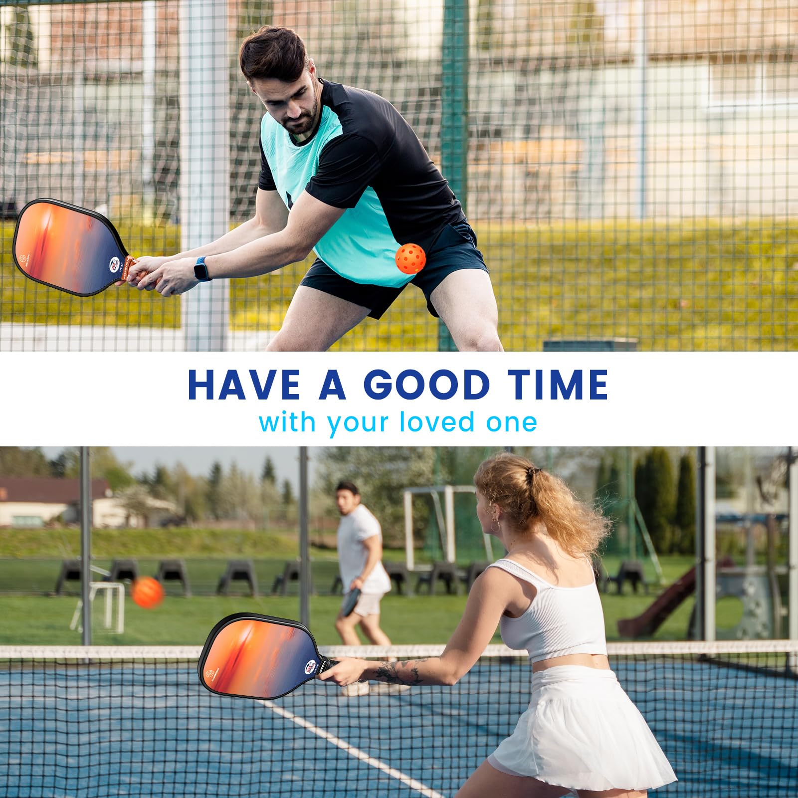 - High-Quality Honeycomb Structure Paddles: Our pickleball set is made with advanced glass fiber and polypropylene honeycomb core technology, which reduces vibration and provides excellent power and control. The fiberglass surface offers outstanding spin. Our paddle is light, at only 7.8 ounces, preventing hand fatigue and helping to improve your skills on the court. Dimensions: 15.8 inches in length and 7.8 inches in width