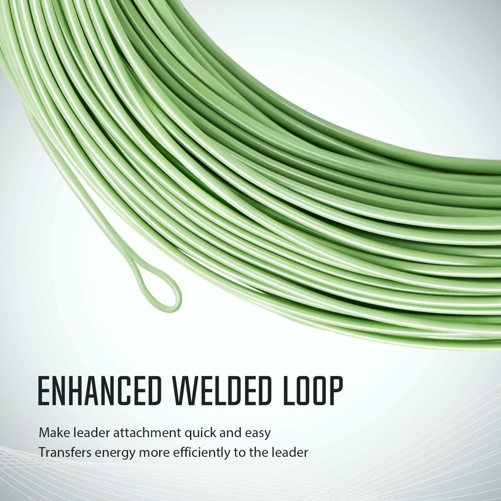 - Enhanced Welded Loop: The sleek and enhanced welded loop in the new design facilitates quick and easy leader attachment, transferring energy more efficiently for improved turnover. The two-color fly line features two exposed core loops, aiding in fast rigging to both the leader and backing line
