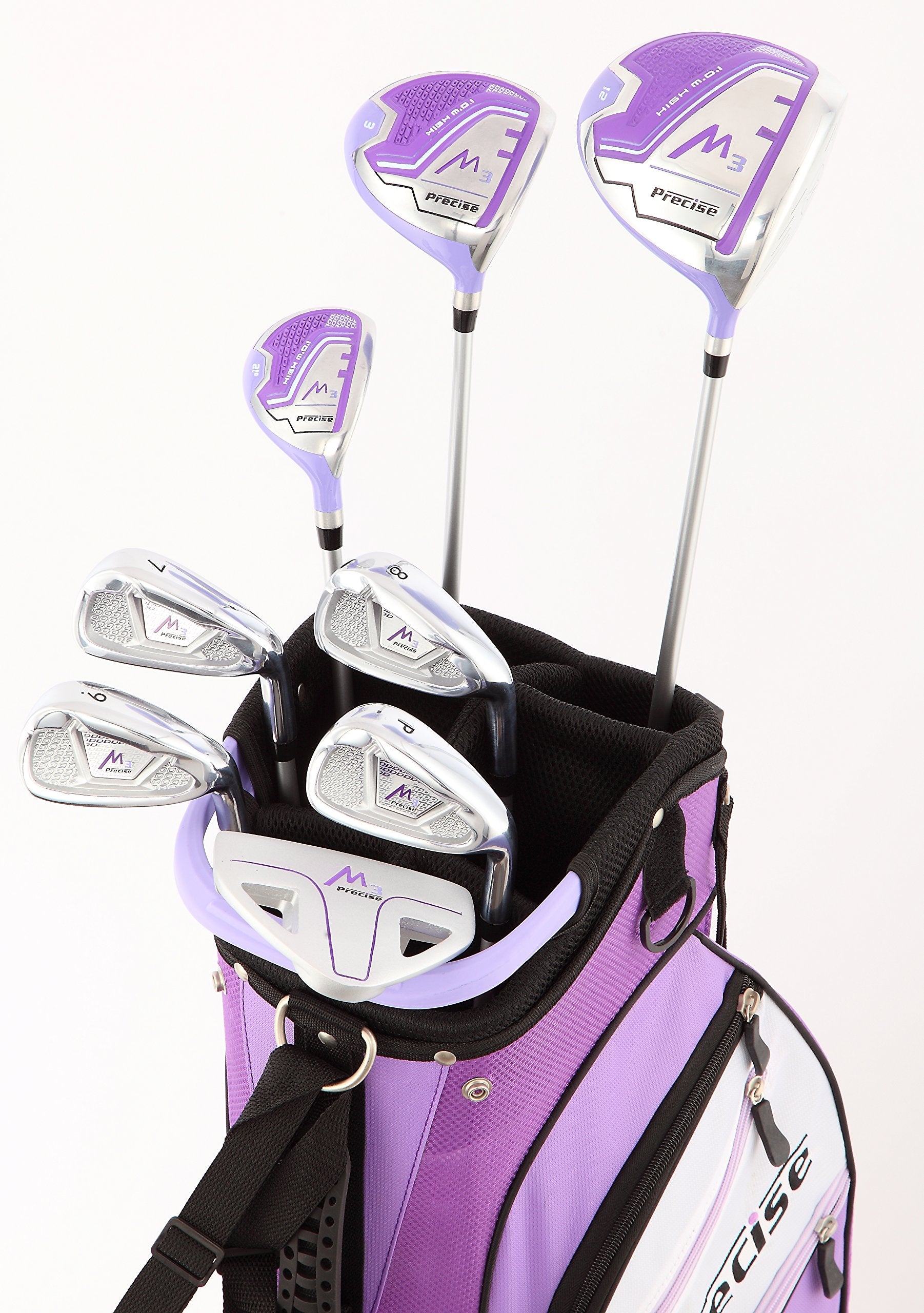 Precise M3 Complete Womens Golf Clubs Set, Includes Driver, Fairway, Hybrid, 7-PW Irons, Wedge, Putter, Stand Bag, 3 H/C's Purple, Golf Clubs Women Right Handed, Comes in 3 Sizes