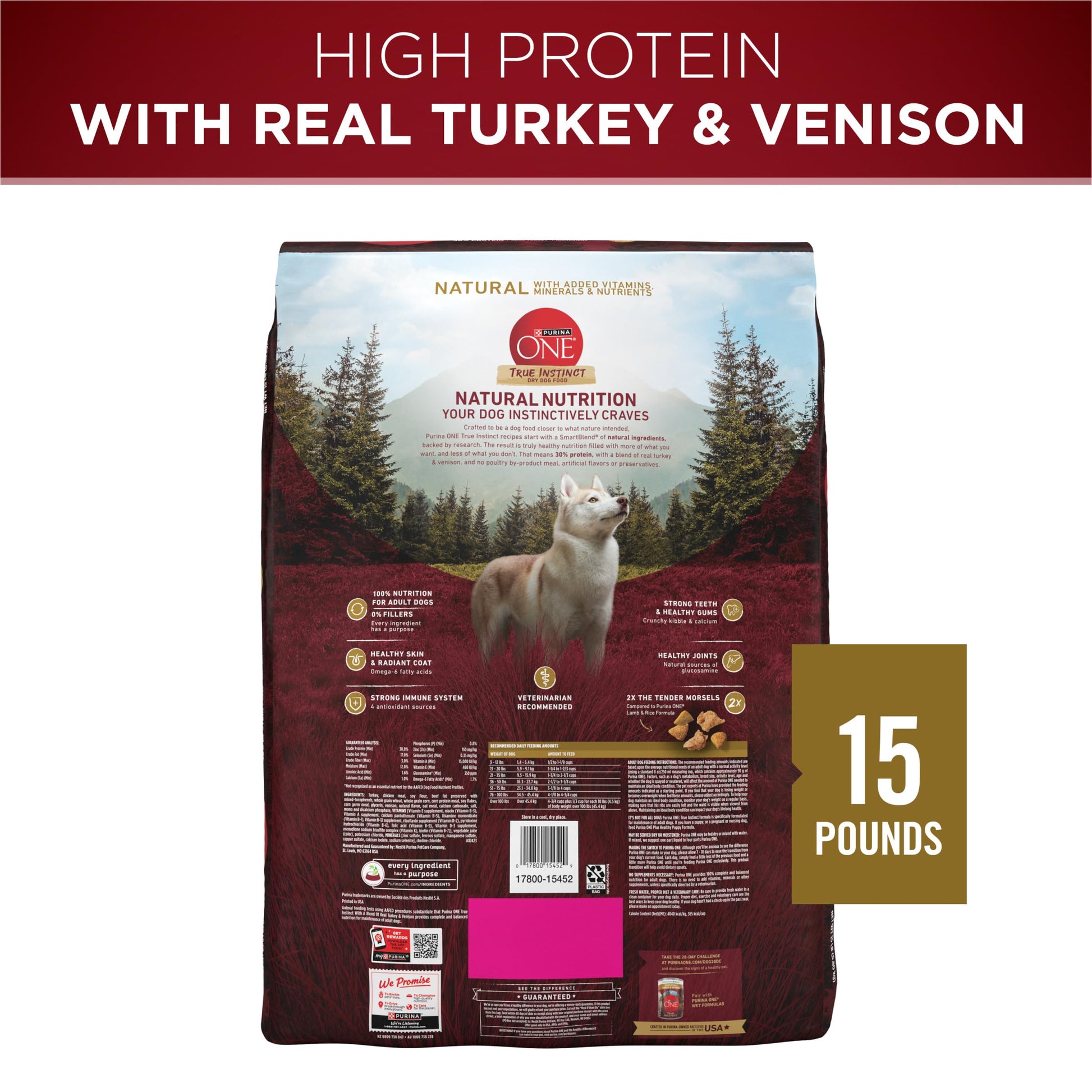 Purina ONE True Instinct With A Blend Of Real Turkey and Venison Dry Dog Food - 36 lb. Bag