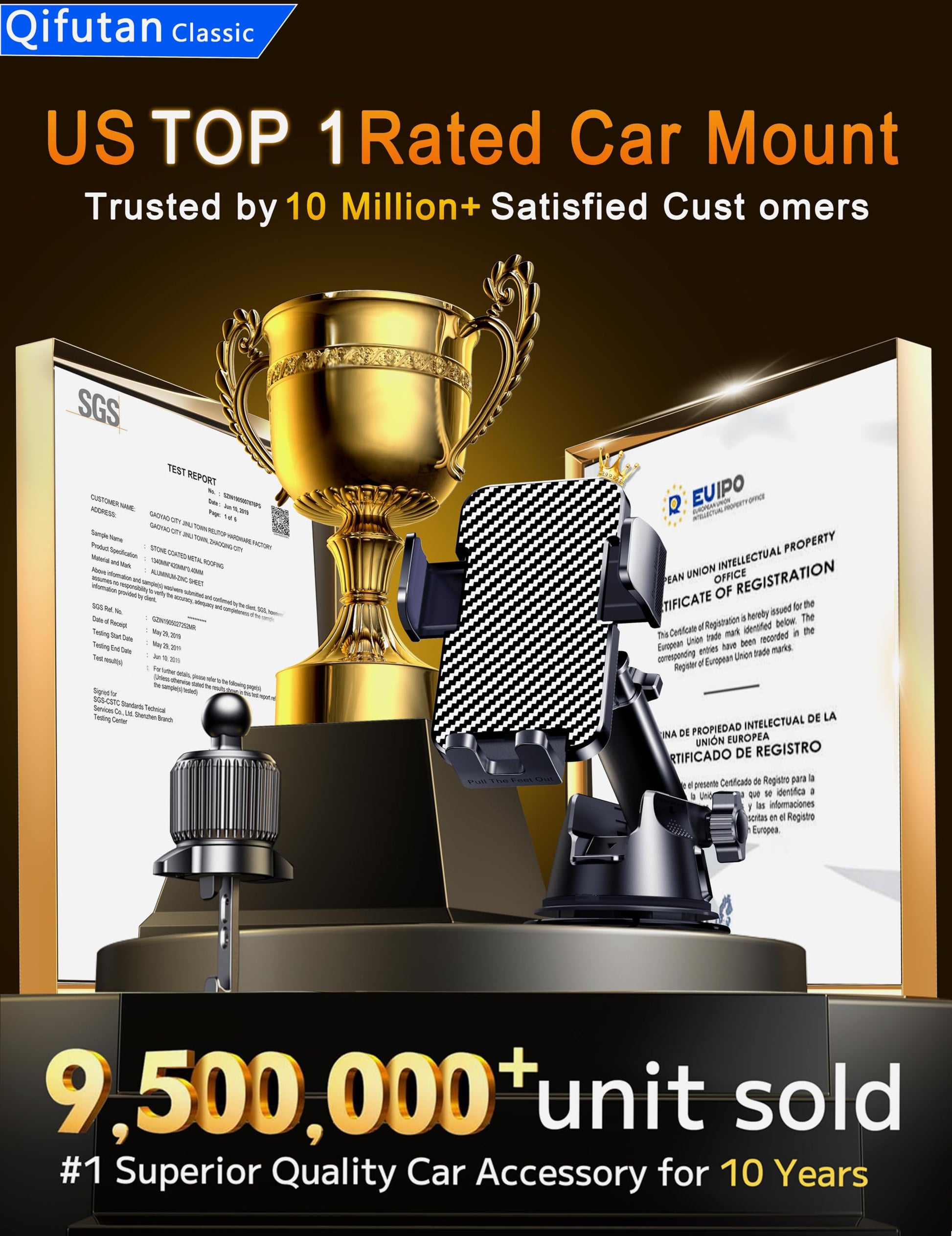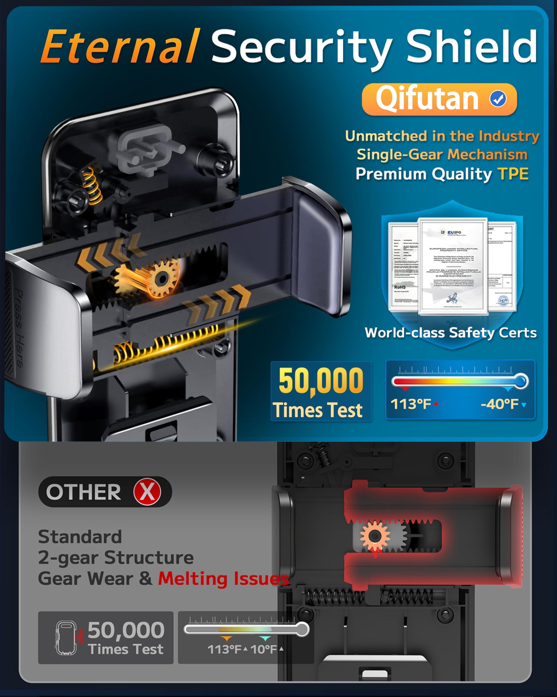 Qifutan Dash Mounted Holders Phone Holders for Your Car Phone Mount for Car Windshield Dashboard Air Vent Universal Hands Free Automobile Cell Phone Holder Fit for iPhone Smartphone