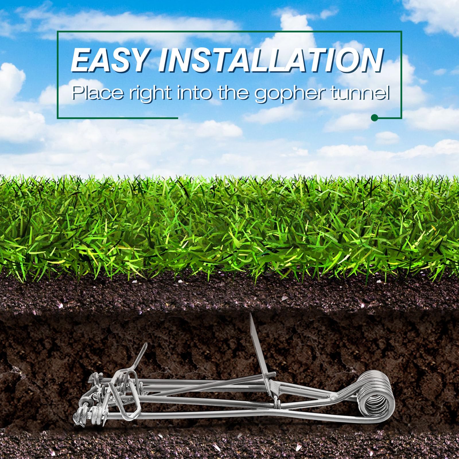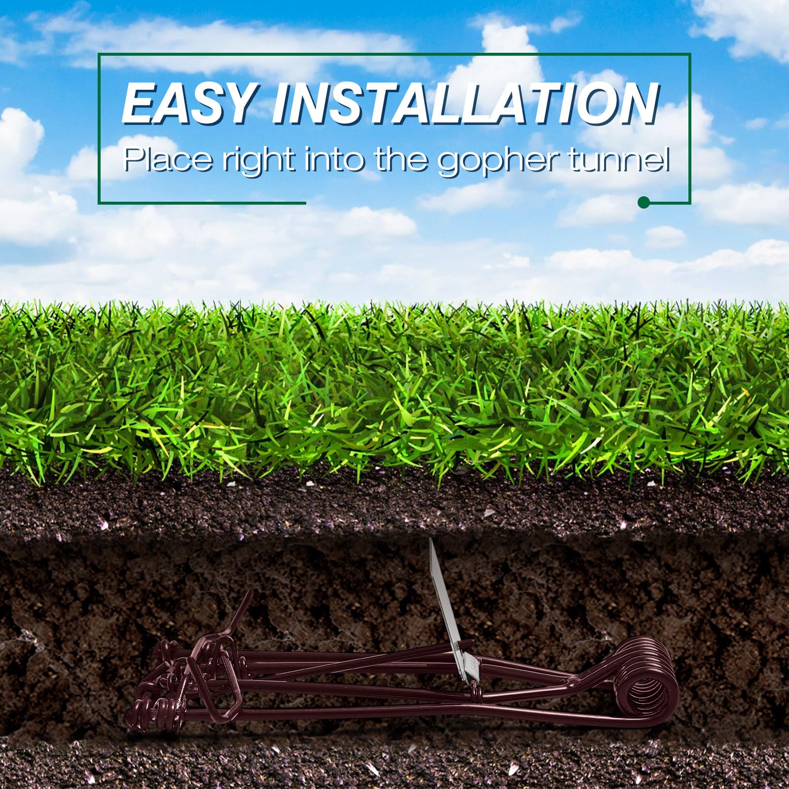 - Easy to Install: our mole traps adopt pincher style design, feature a narrow design and short base to allow for near fresh mounds or in main tunnel, which can kill gophers quickly; Cover the gopher trap with soil for added concealment