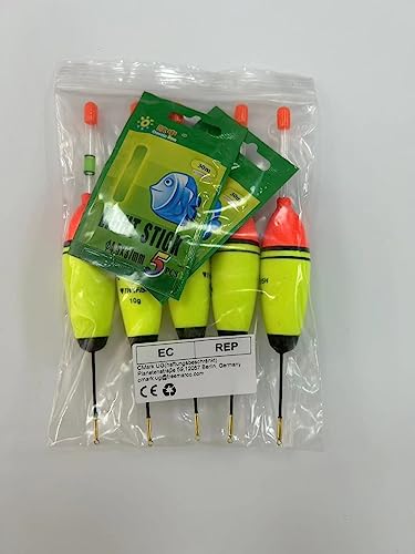 5 Pcs Fishing Bobbers + 10 Pcs (2bags) 4.5x37mm Glow Sticks.