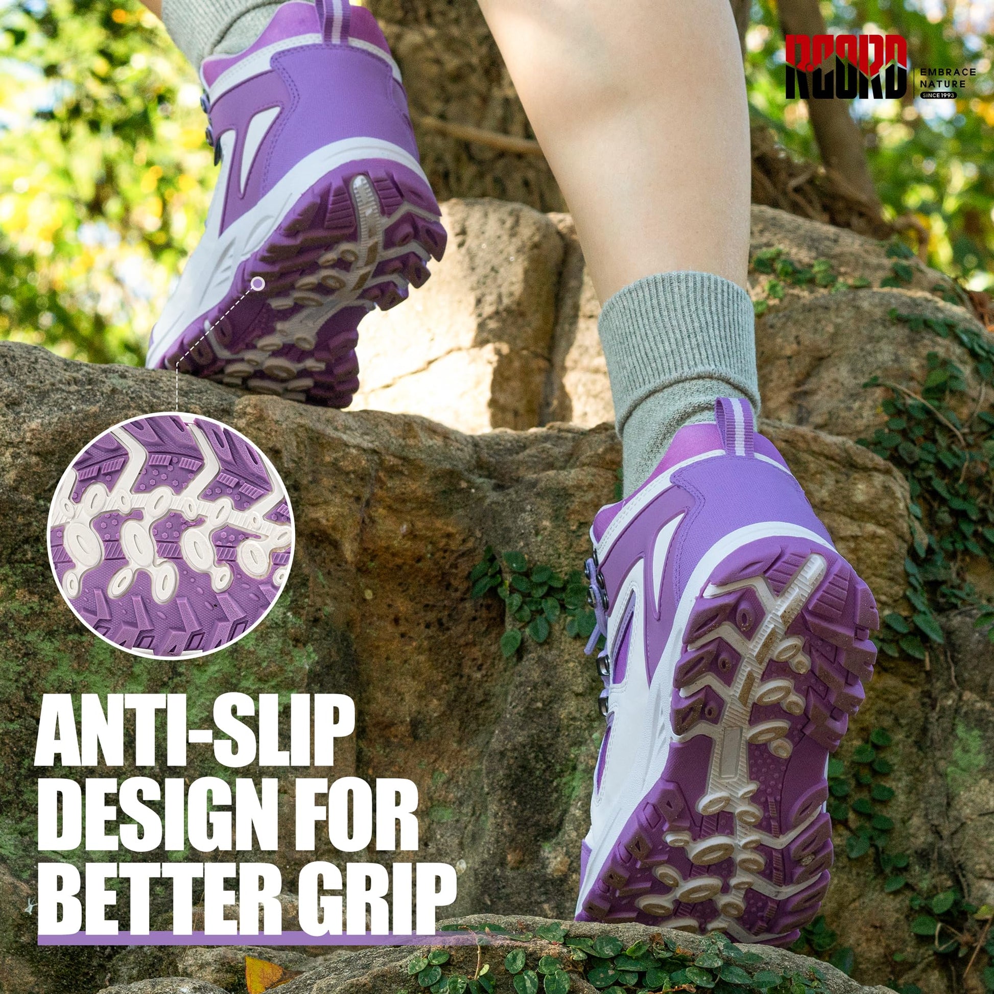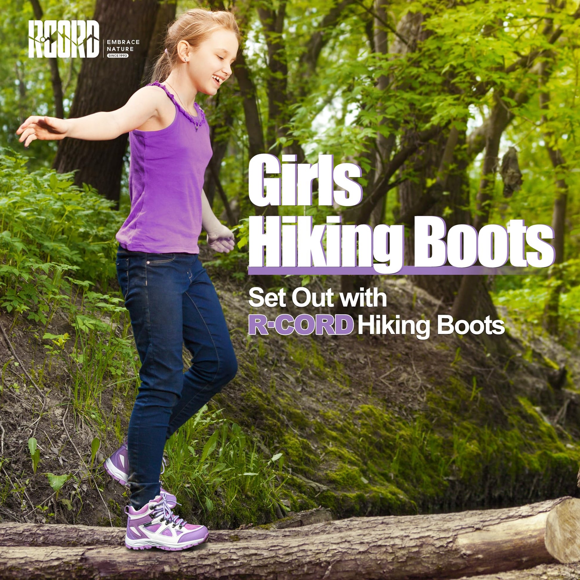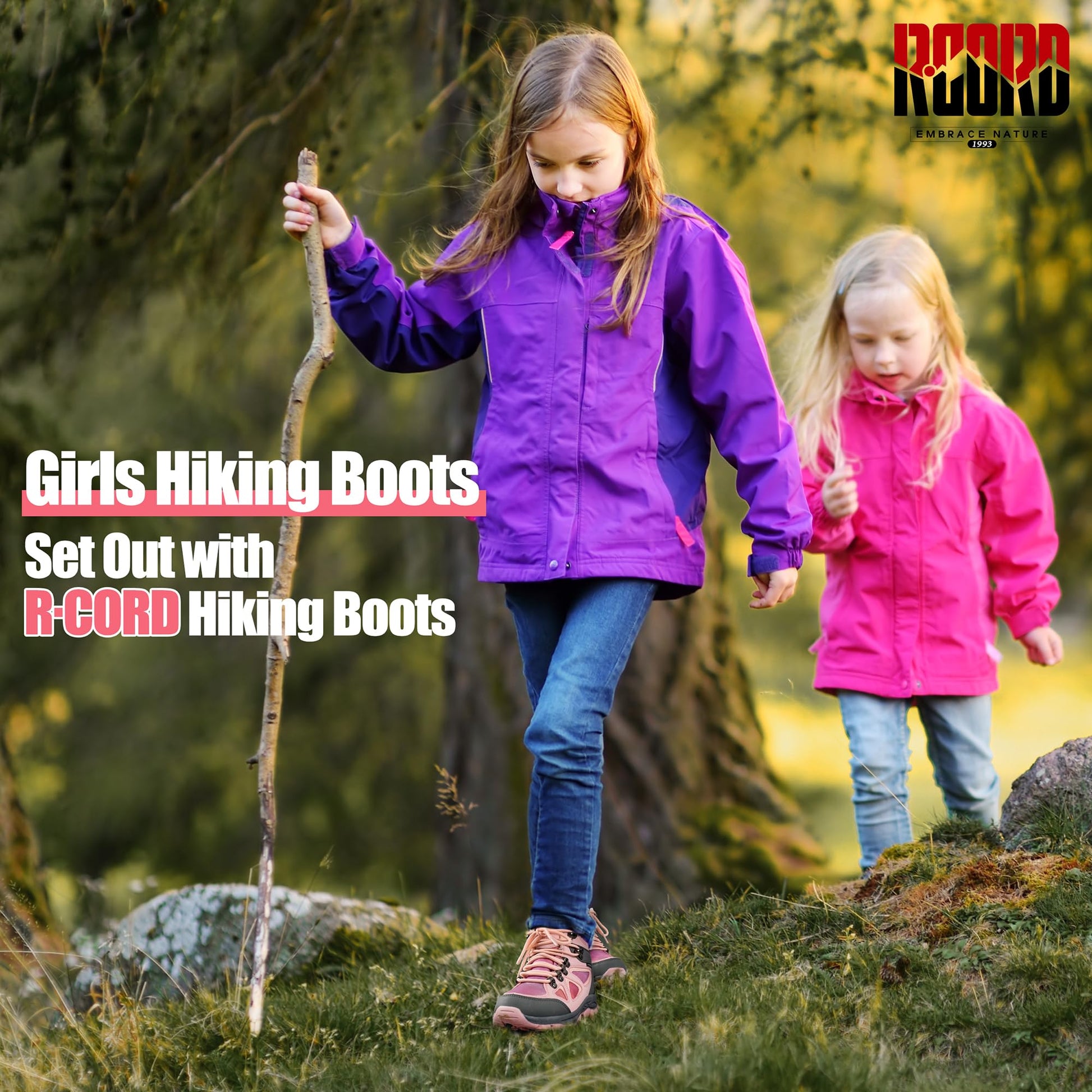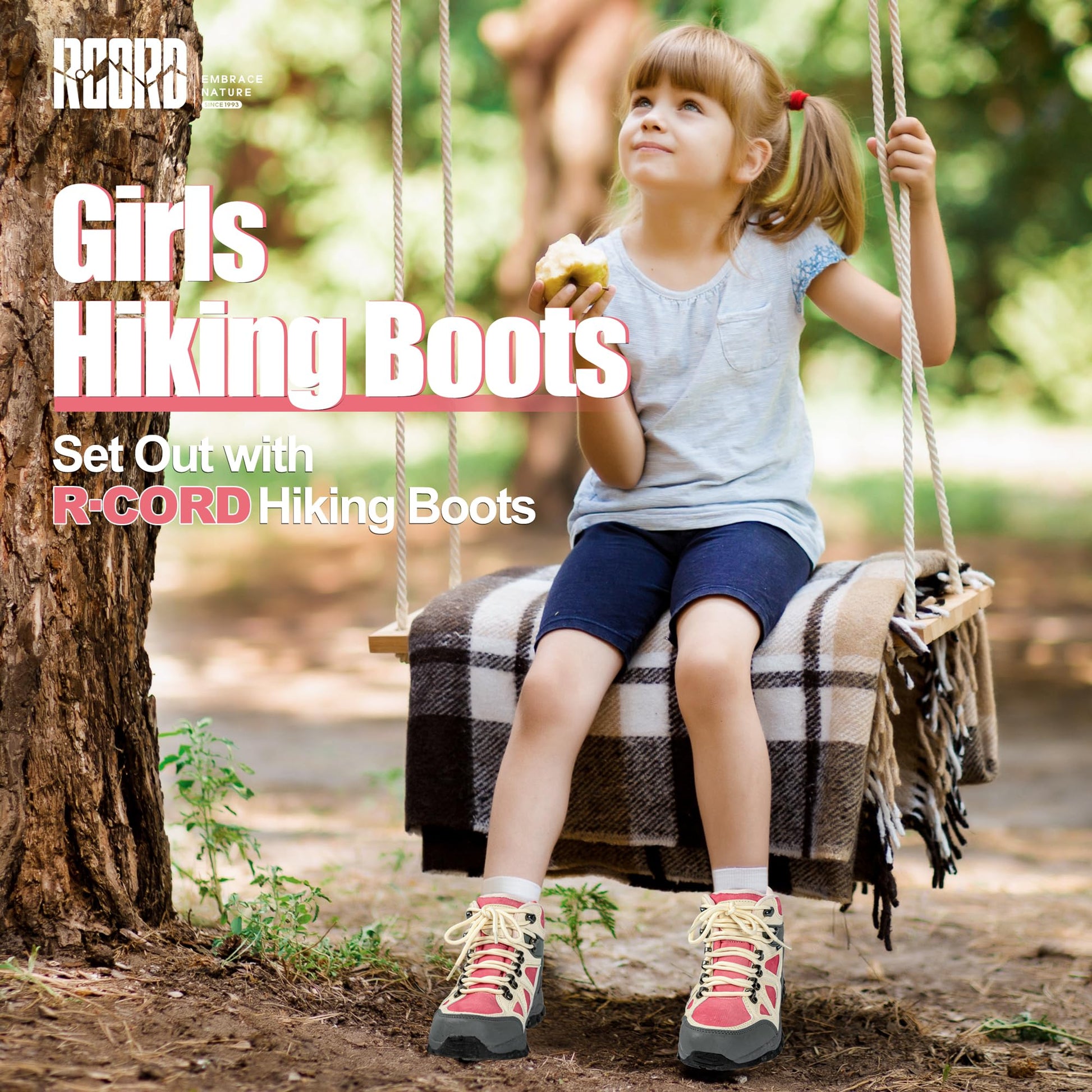 R CORD Kids Hiking Boots Waterproof Durable TPR Traction Outsole Anti-Skid Athletic Lace Up Hiking Shoes for Outdoor Adventure