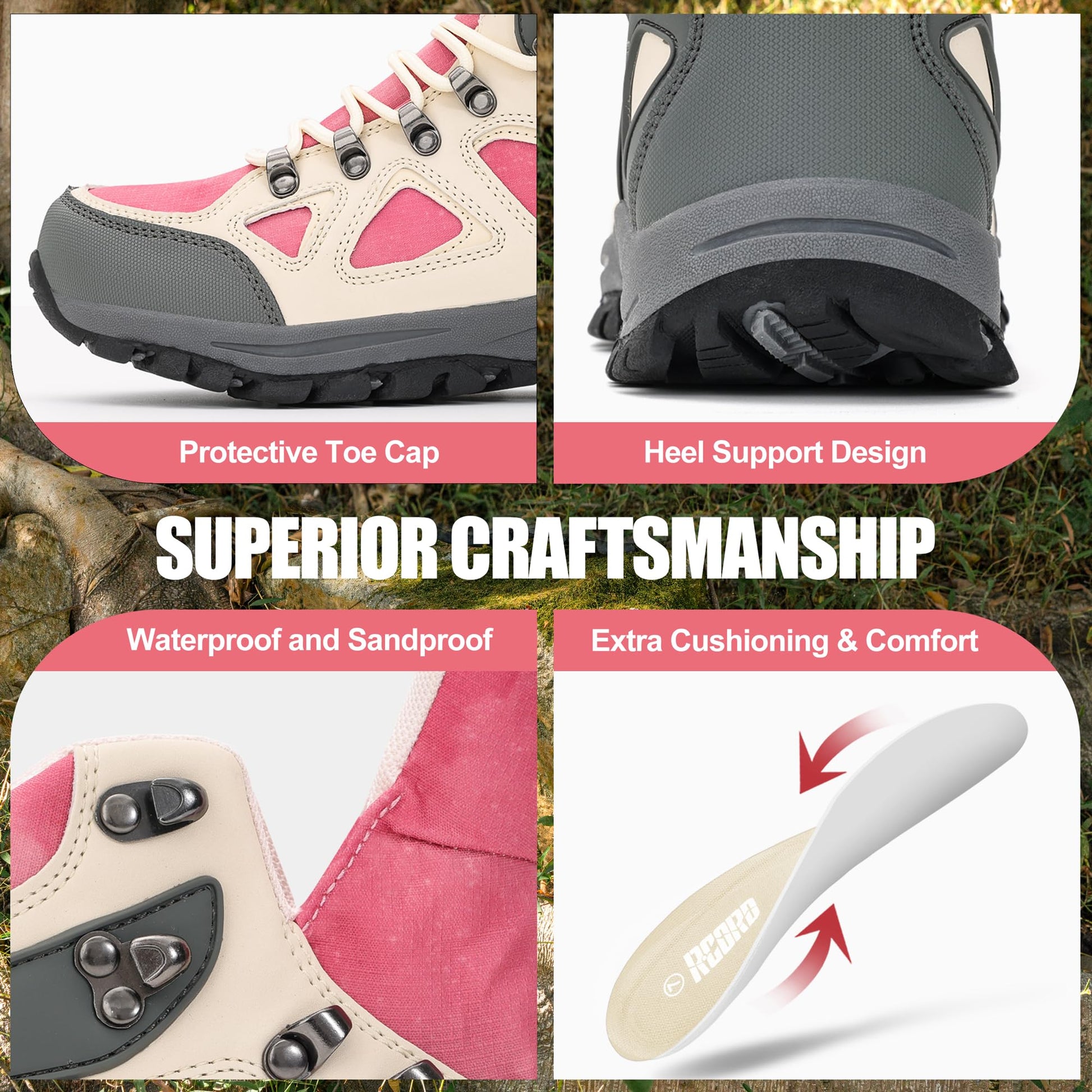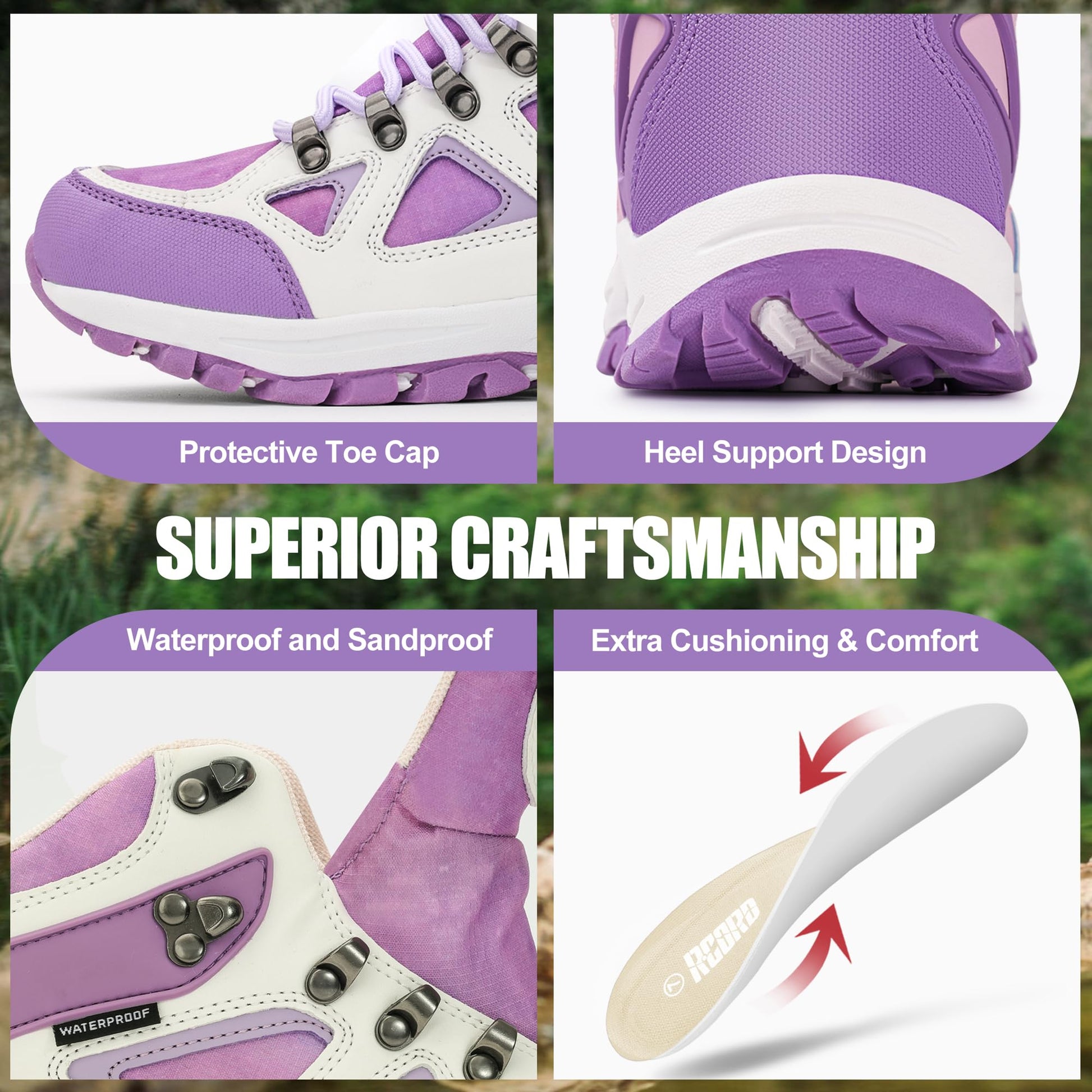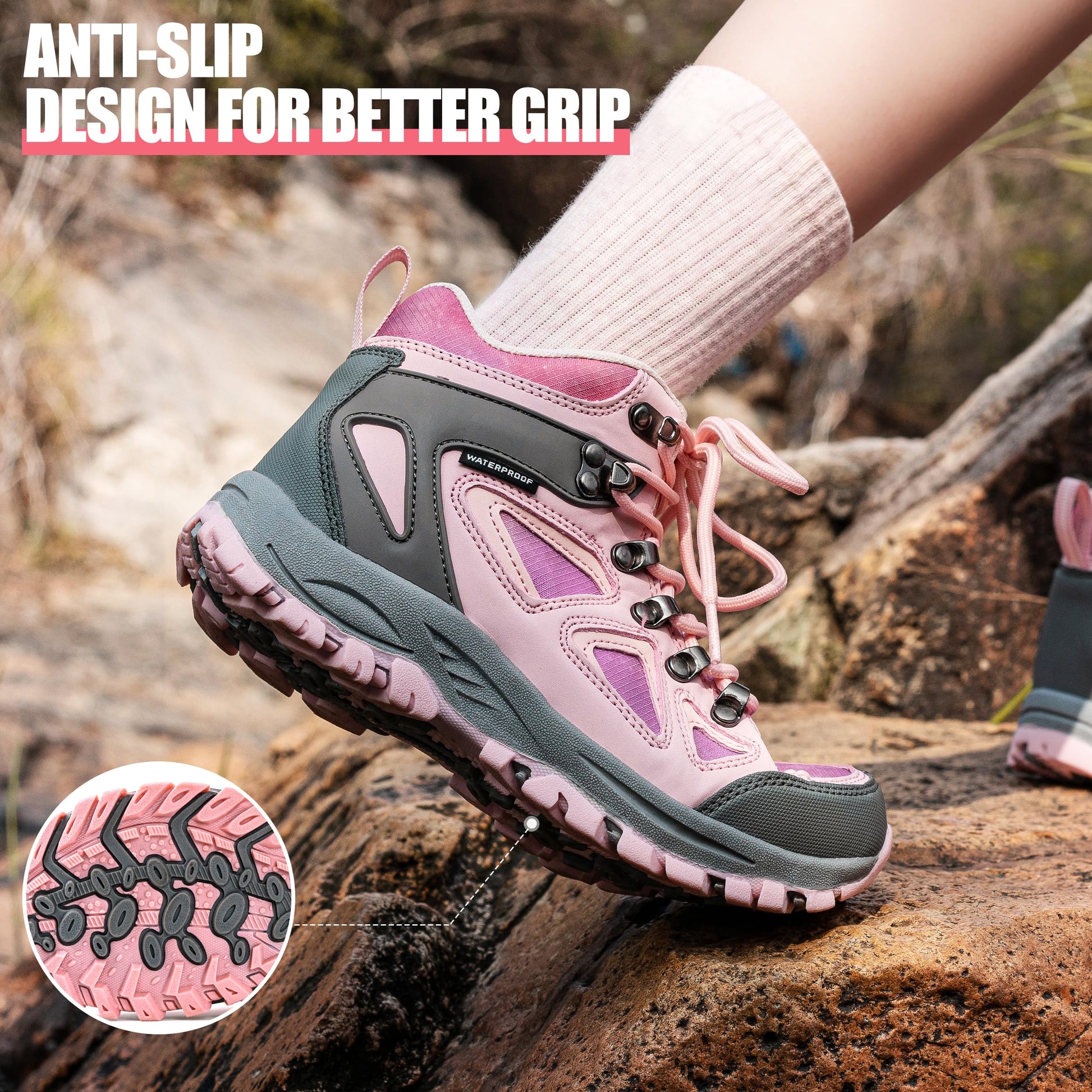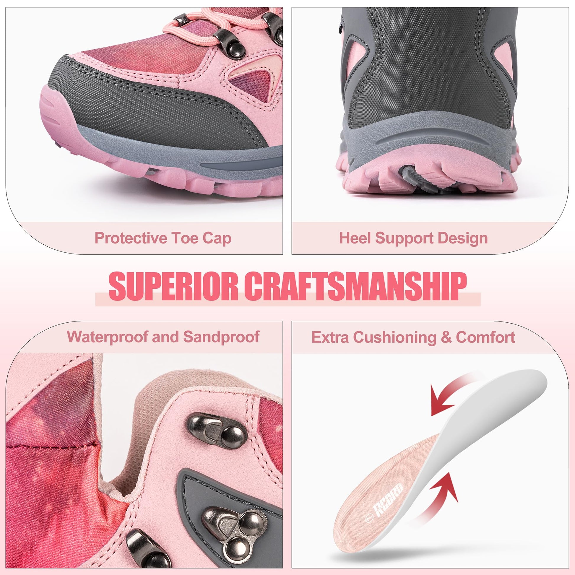 R CORD Kids Hiking Boots Waterproof Durable TPR Traction Outsole Anti-Skid Athletic Lace Up Hiking Shoes for Outdoor Adventure