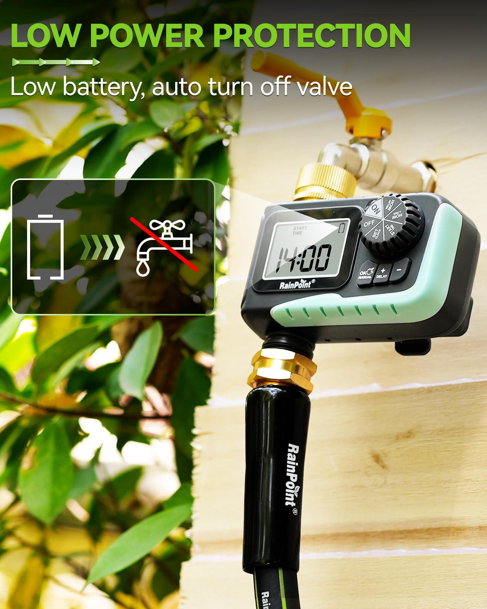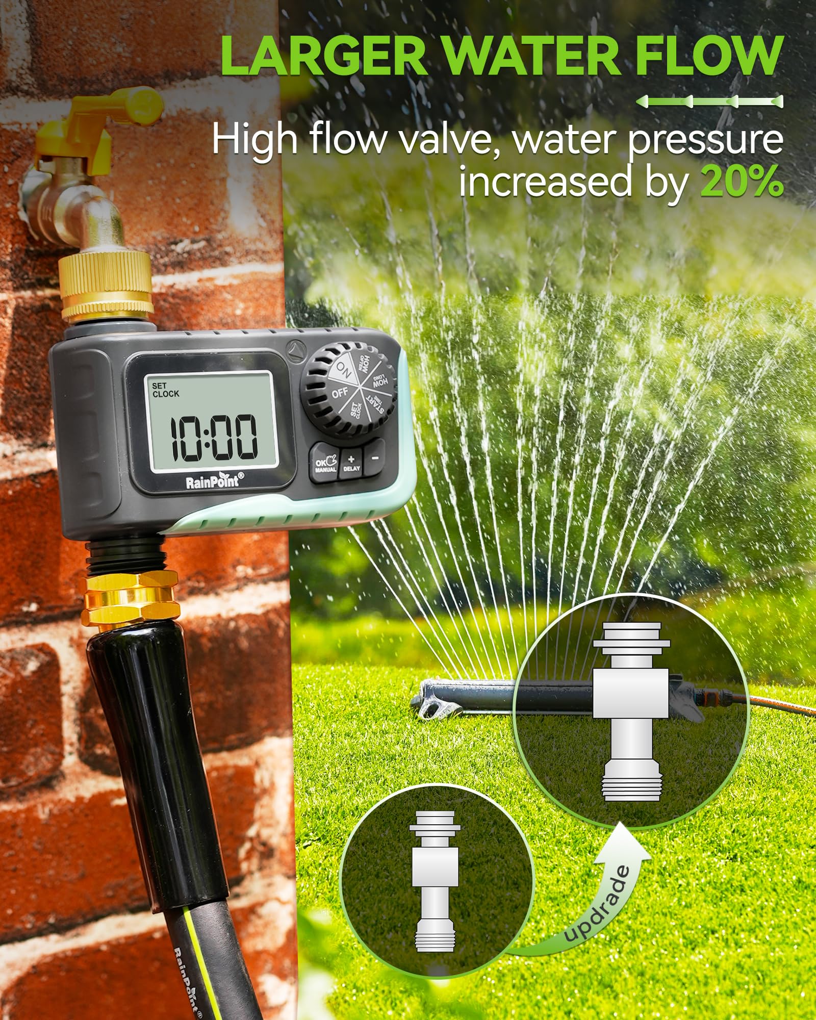 RAINPOINT Sprinkler Timer, Programmable Water Timer for Garden Hose, Outdoor Soaker Hose Timed with Rain Delay/Manual/Automatic Watering System, Digital Irrigation for Yard, Lawn, 1 Outlet