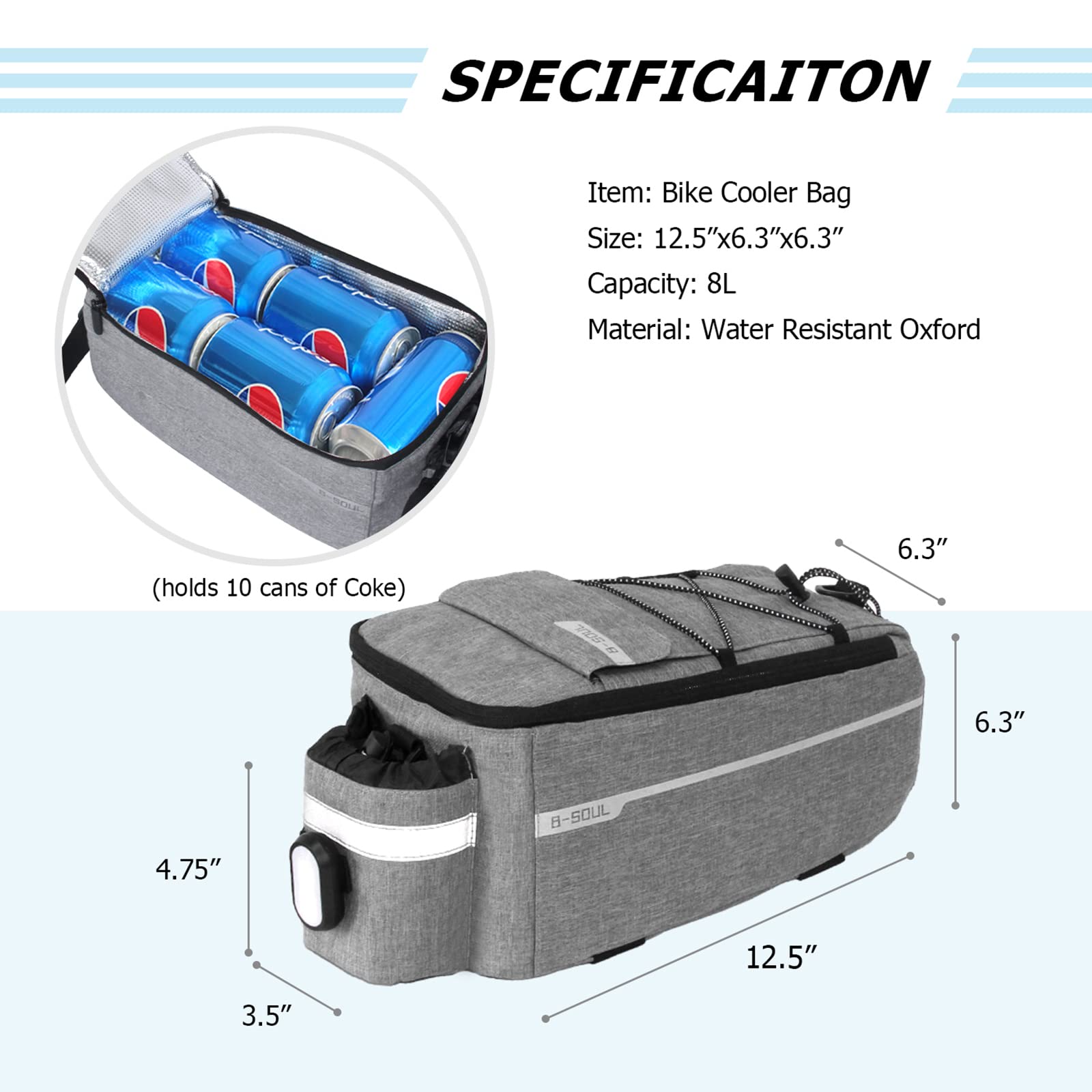- {Installation & portable} With adjustable mounting straps for quick installation and removal. Fits for most of racks, such as mountain bikes, cruiser bike, e-bike, etc. Use shoulder strip to take this truck cooler bag with you if you go to the beach or strolling.