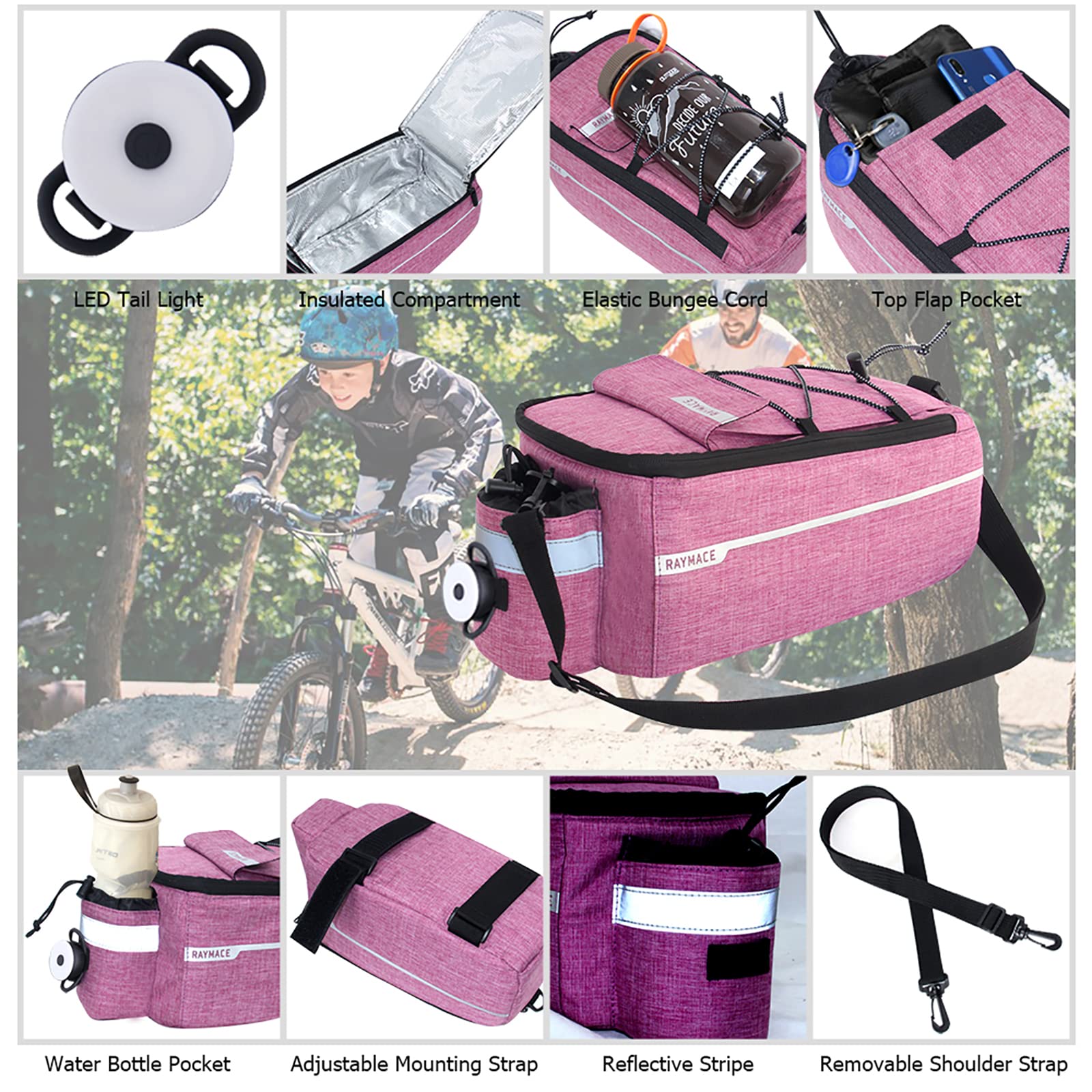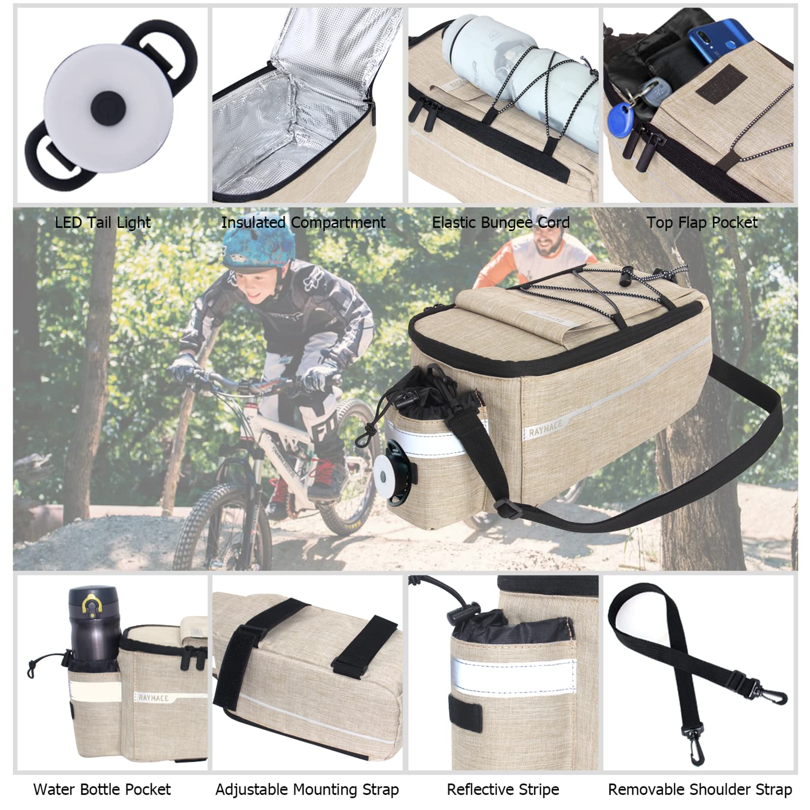 RAYMACE Bike Rear Rack Bag with Tail Light, Bike Truck Cooler Bag for Warm or Cold Items