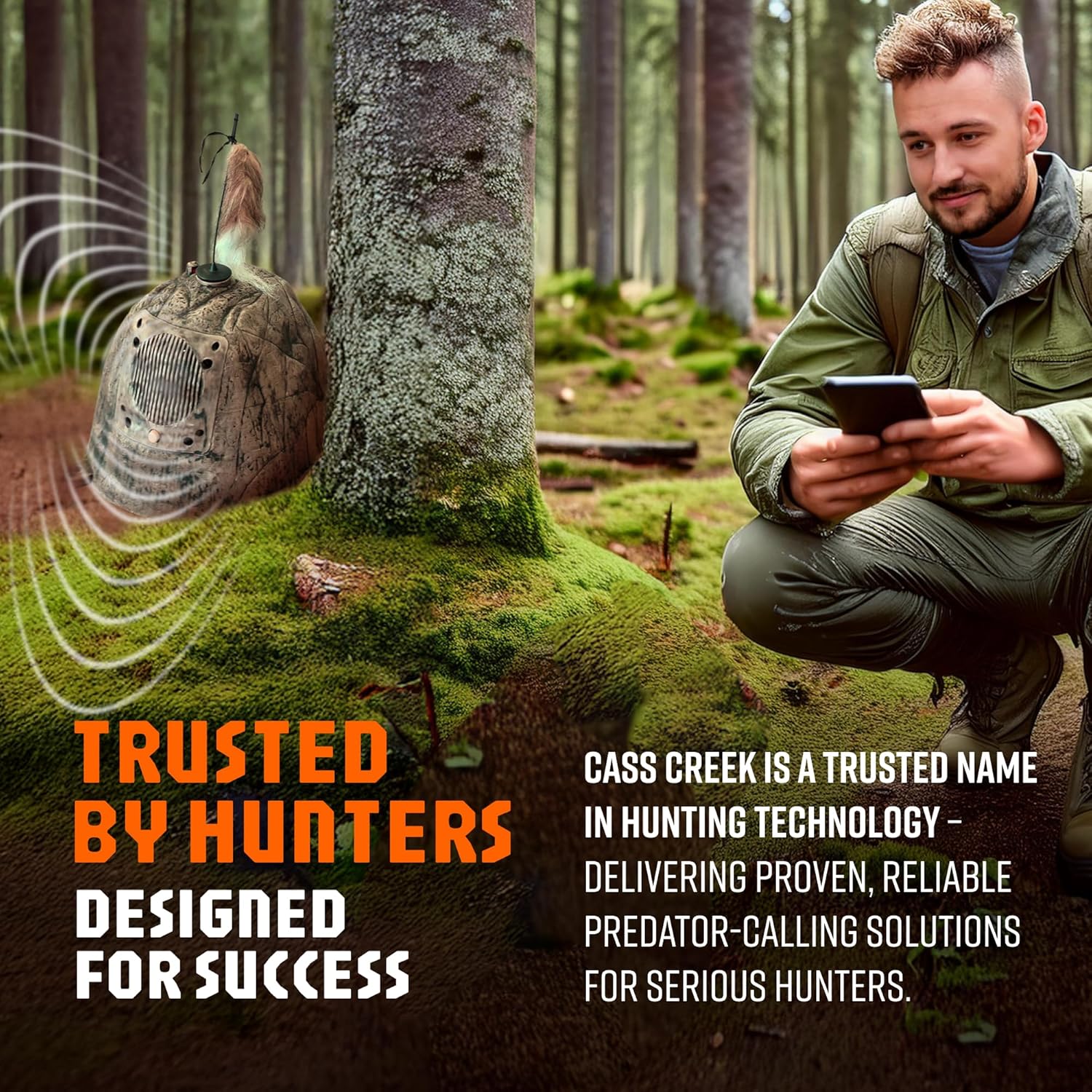- POWERFUL DUAL SPEAKERS: The 110 dB dual-speaker system delivers crystal-clear sound that cuts through any weather condition and travels hundreds of yards. With Bluetooth control, you can operate the call from up to 50 feet away (line of sight), giving you more flexibility in the field.