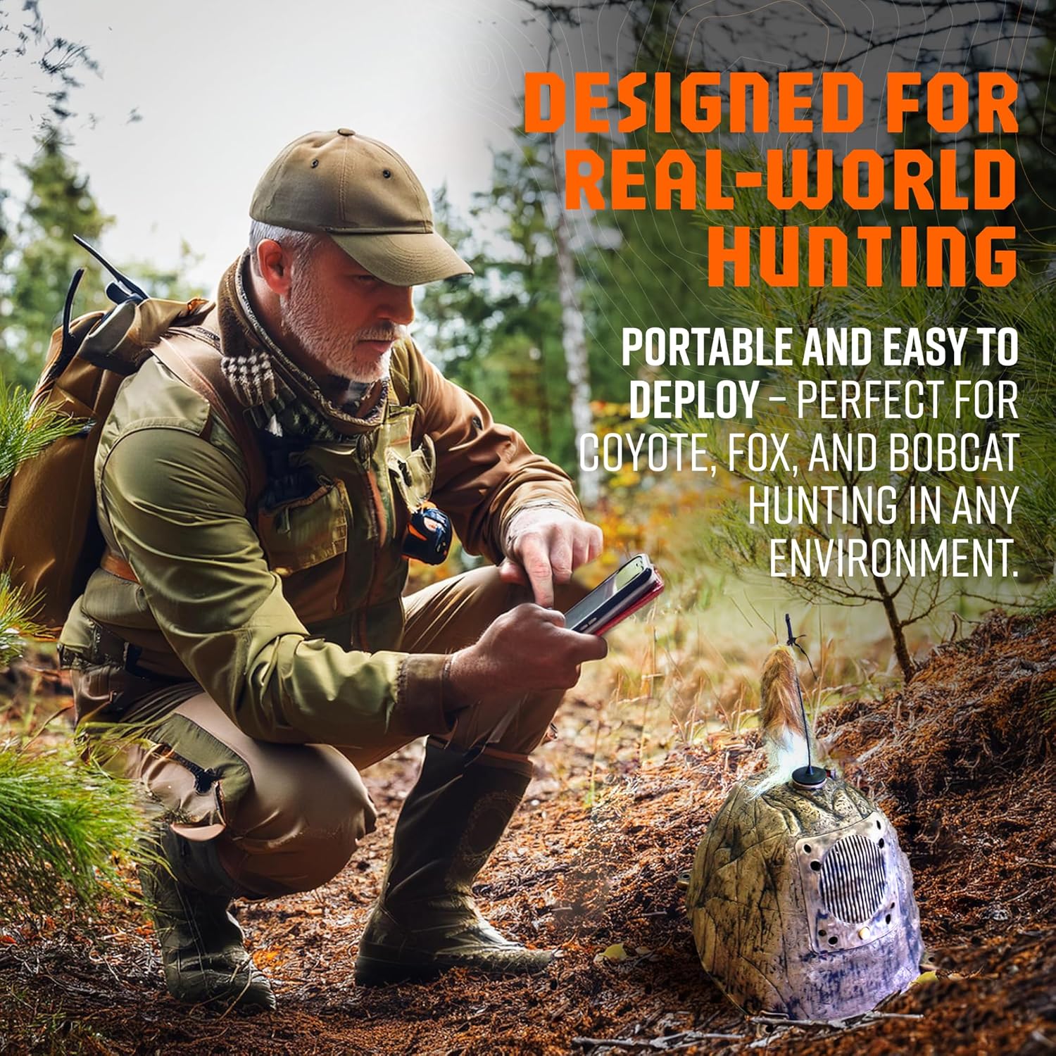 Remote Predator Decoy, Bluetooth Game Caller, Electronic Predator Call with Remote Control, Loud Dual Speaker System, 50-Yard Range, Hunting Gear for Coyote Bobcat Fox Wolf Raccoon