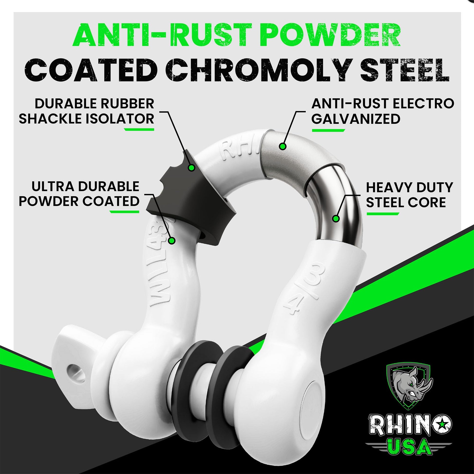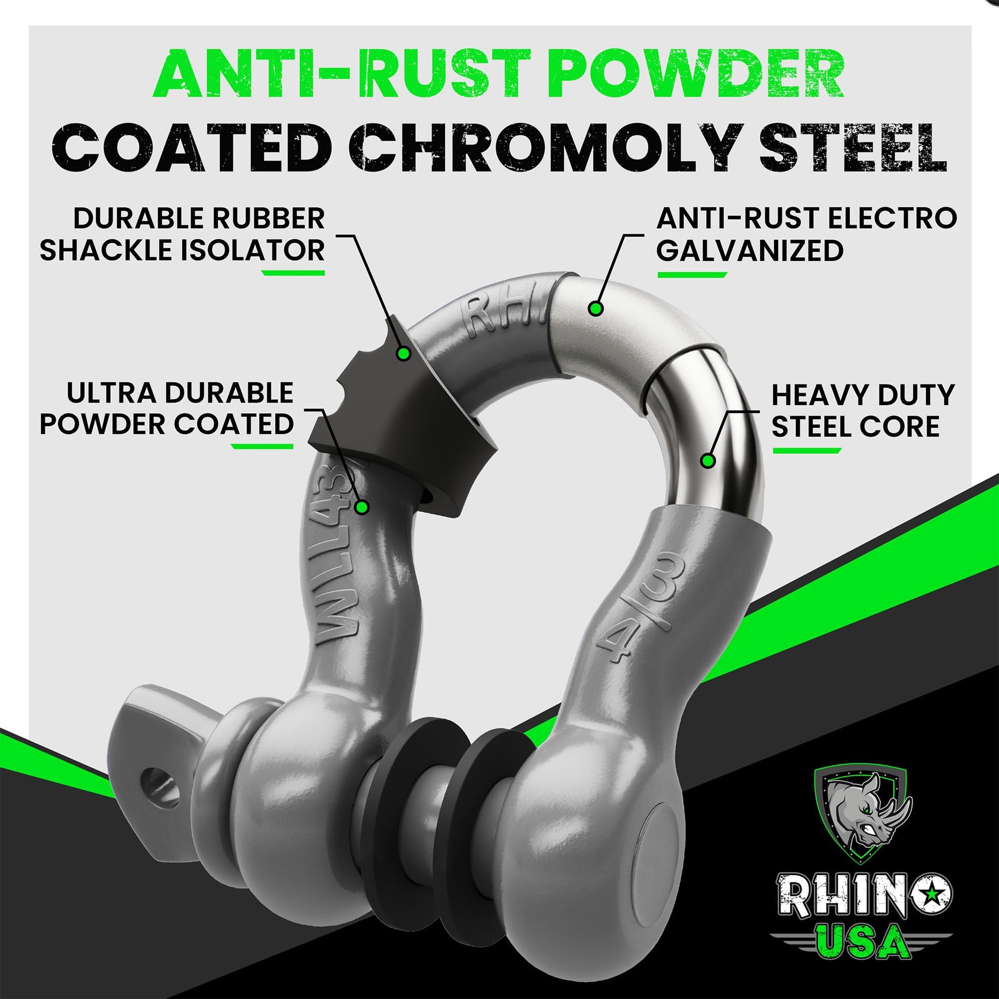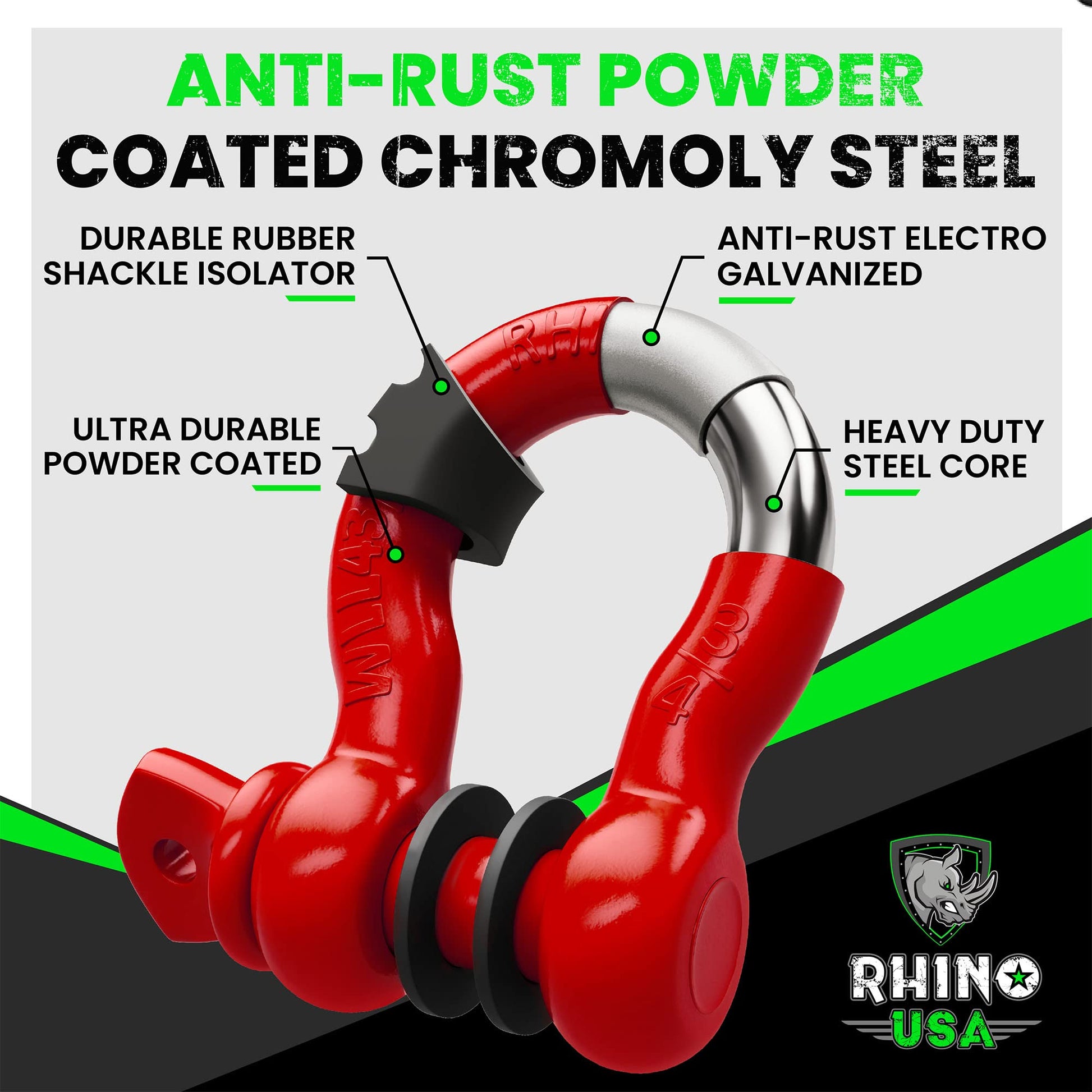 Rhino USA D Ring Shackles (2-Pack) - 41,850lb Break Strength – Heavy Duty 3/4" Clevis Shackle with 7/8 Pin for Towing & Off-Road Use - Pairs with Tow Strap for Vehicle Recovery (Black)