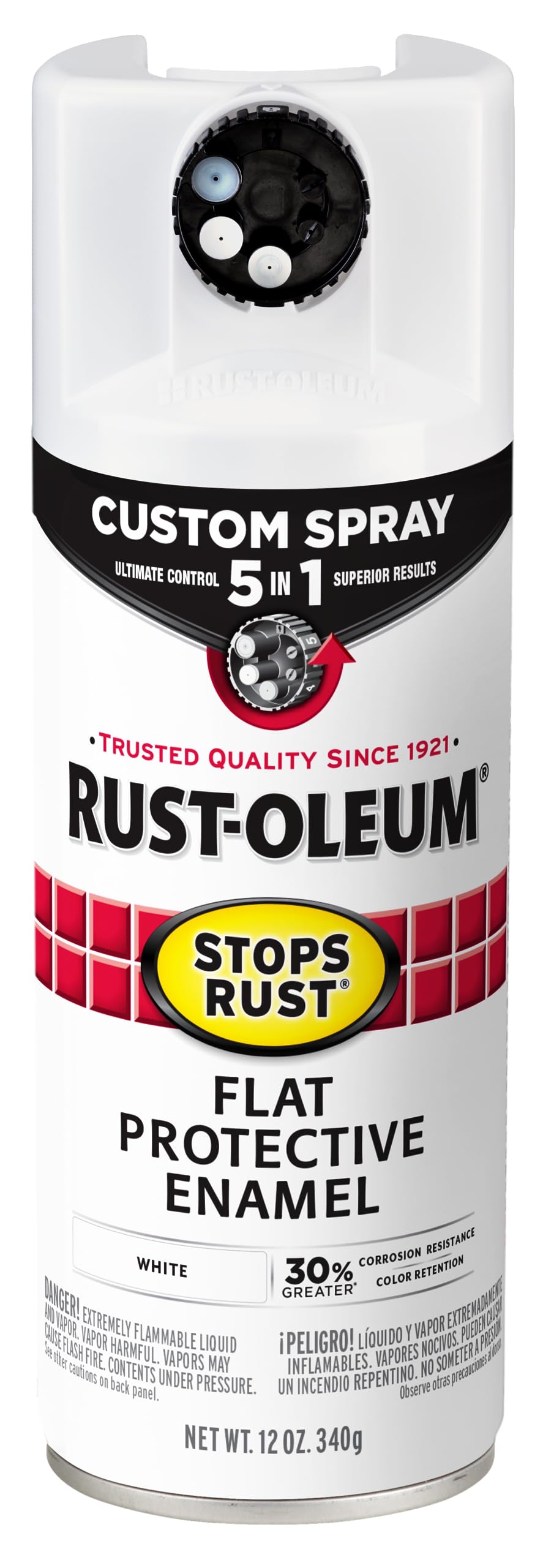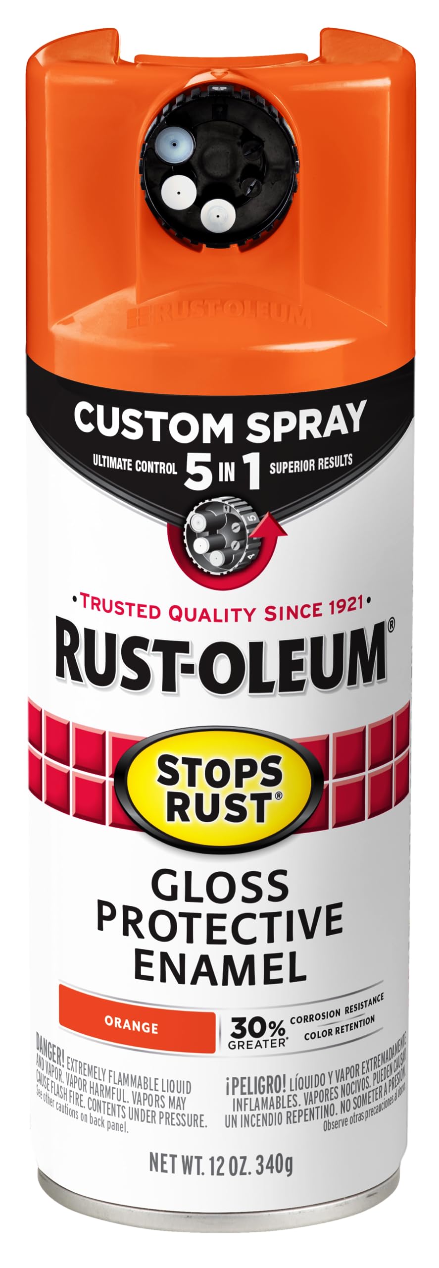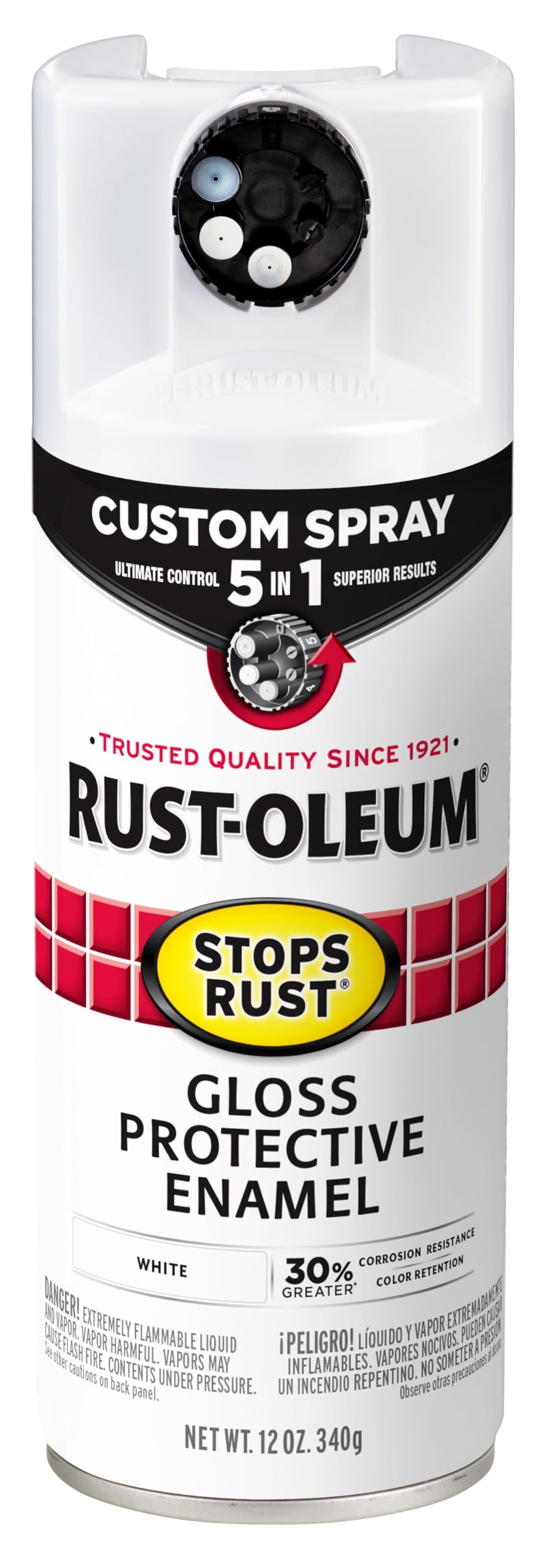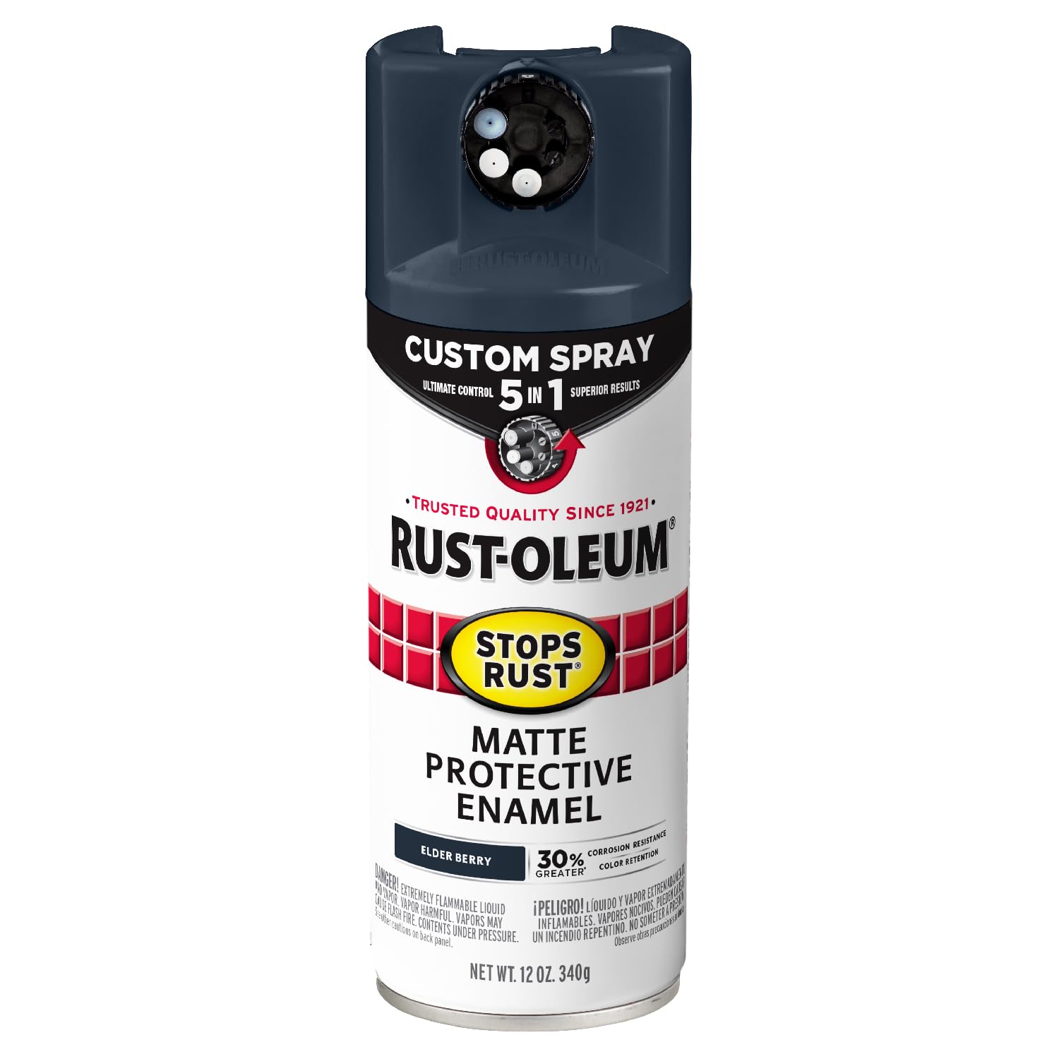 Rust-Oleum Stops Rust Protective Enamel with Custom Spray 5-in-1 technology provides a premium spray paint experience with unlimited ways to get your project done right. The innovative Custom Spray 5-in-1 dial allows you to choose from 5 spray paint nozzles for ultimate control and the advanced Stops Rust formula provides 30% greater corrosion resistance and color retention compared to the standard Stops Rust formula. Use the high output spray nozzle for large curved surfaces, standard for a traditional experience, low output for details and corners without drips and runs, and vertical or horizontal fans for flat surfaces. When you're done, turn the dial to the locked position and store the remaining spray paint for your next project.