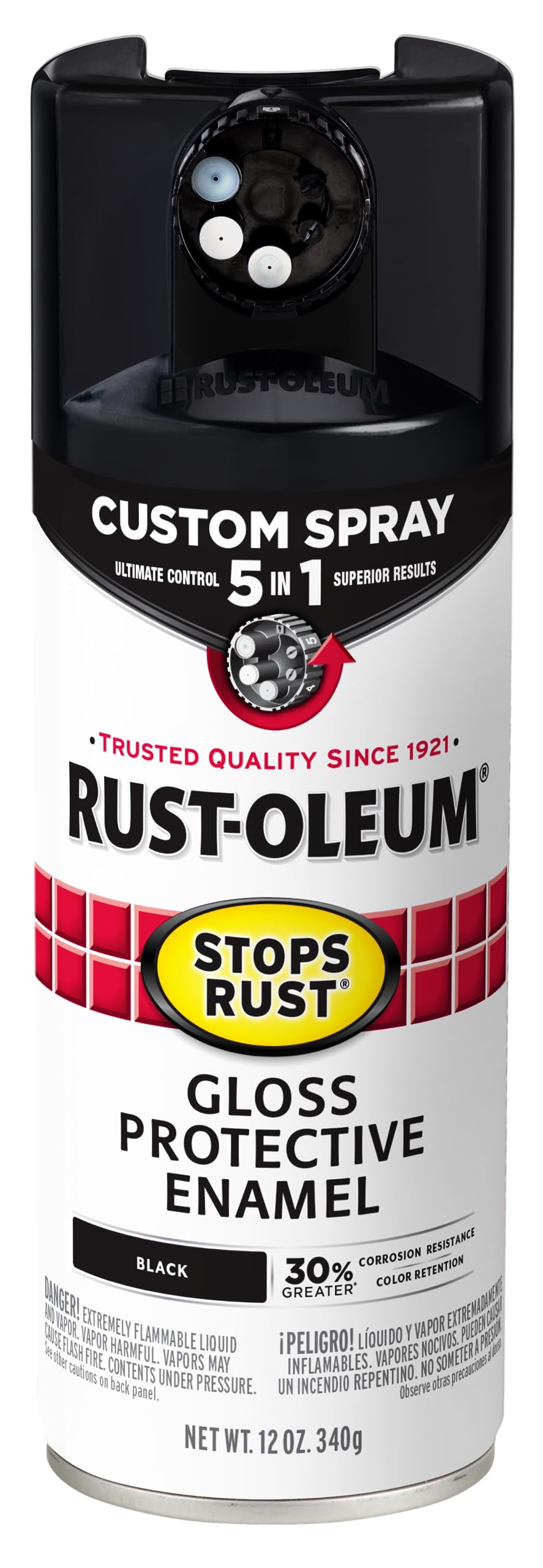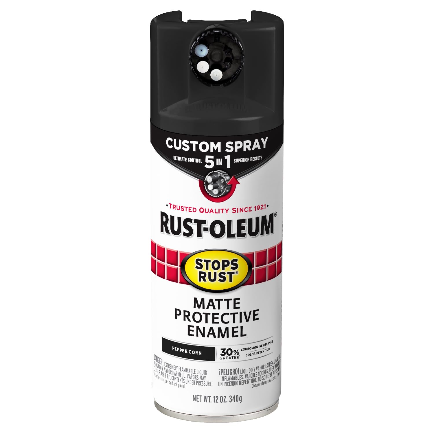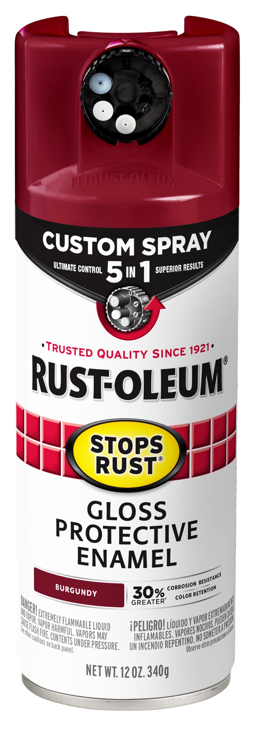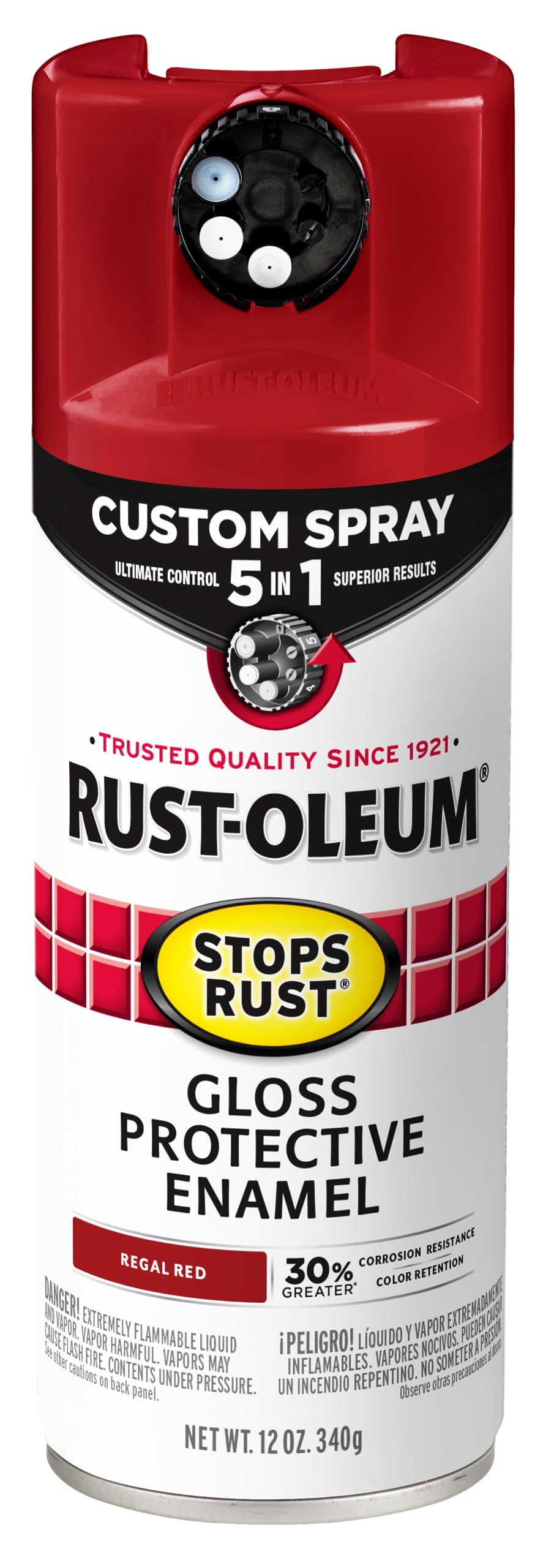 Rust-Oleum Stops Rust Protective Enamel with Custom Spray 5-in-1 technology provides a premium spray paint experience with unlimited ways to get your project done right. The innovative Custom Spray 5-in-1 dial allows you to choose from 5 spray paint nozzles for ultimate control and the advanced Stops Rust formula provides 30% greater corrosion resistance and color retention compared to the standard Stops Rust formula. Use the high output spray nozzle for large curved surfaces, standard for a traditional experience, low output for details and corners without drips and runs, and vertical or horizontal fans for flat surfaces. When you're done, turn the dial to the locked position and store the remaining spray paint for your next project.