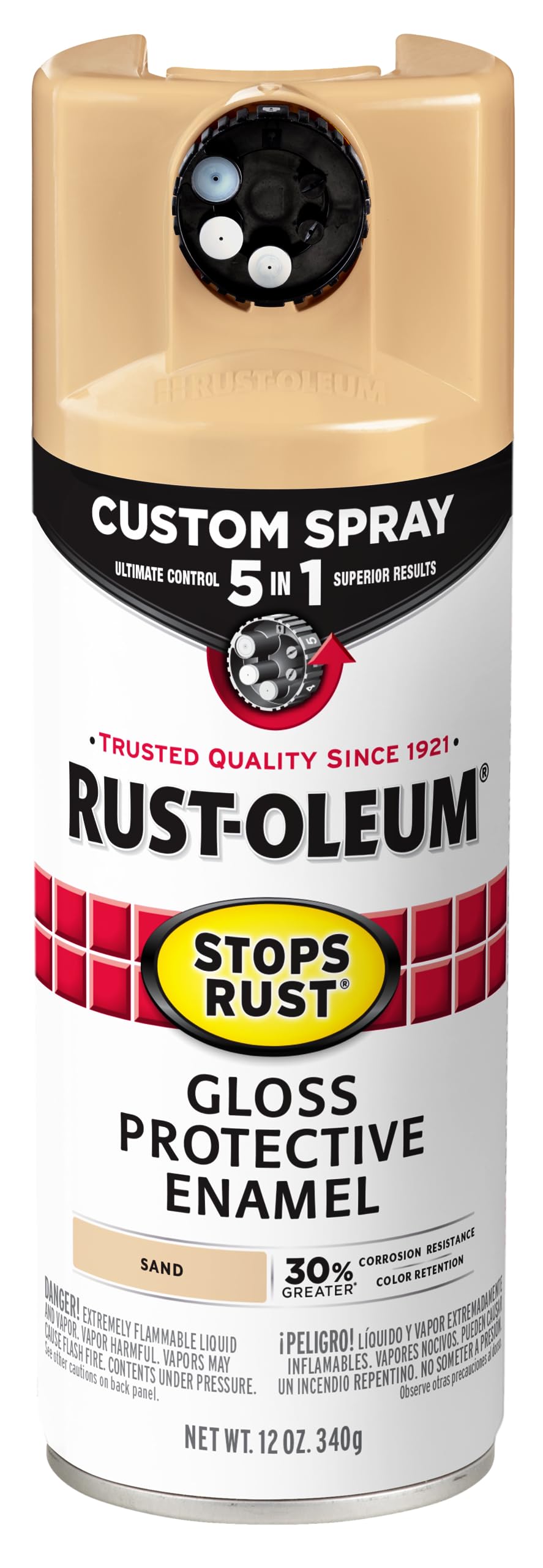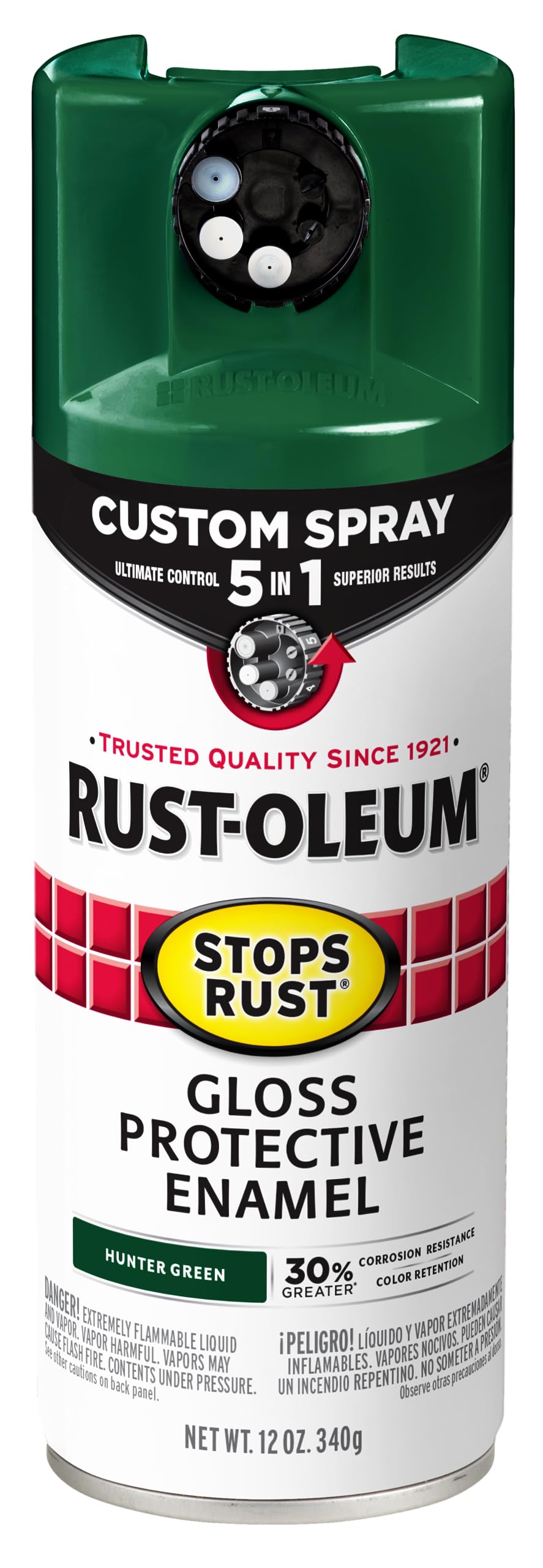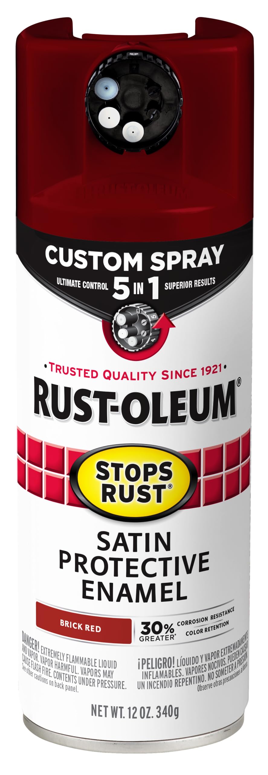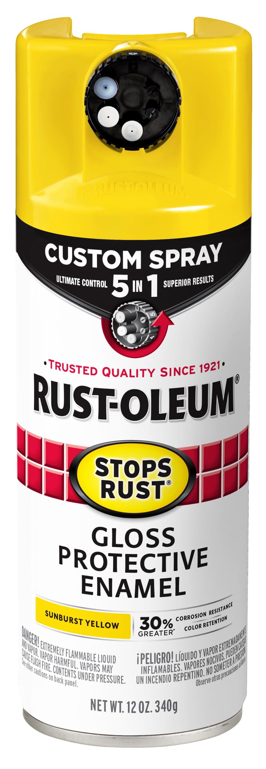 Rust-Oleum Stops Rust Protective Enamel with Custom Spray 5-in-1 technology provides a premium spray paint experience with unlimited ways to get your project done right. The innovative Custom Spray 5-in-1 dial allows you to choose from 5 spray paint nozzles for ultimate control and the advanced Stops Rust formula provides 30% greater corrosion resistance and color retention compared to the standard Stops Rust formula. Use the high output spray nozzle for large curved surfaces, standard for a traditional experience, low output for details and corners without drips and runs, and vertical or horizontal fans for flat surfaces. When you're done, turn the dial to the locked position and store the remaining spray paint for your next project.