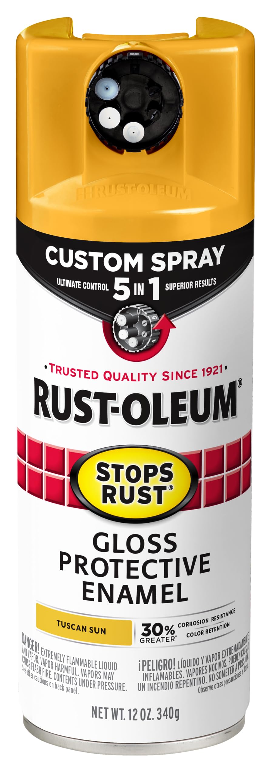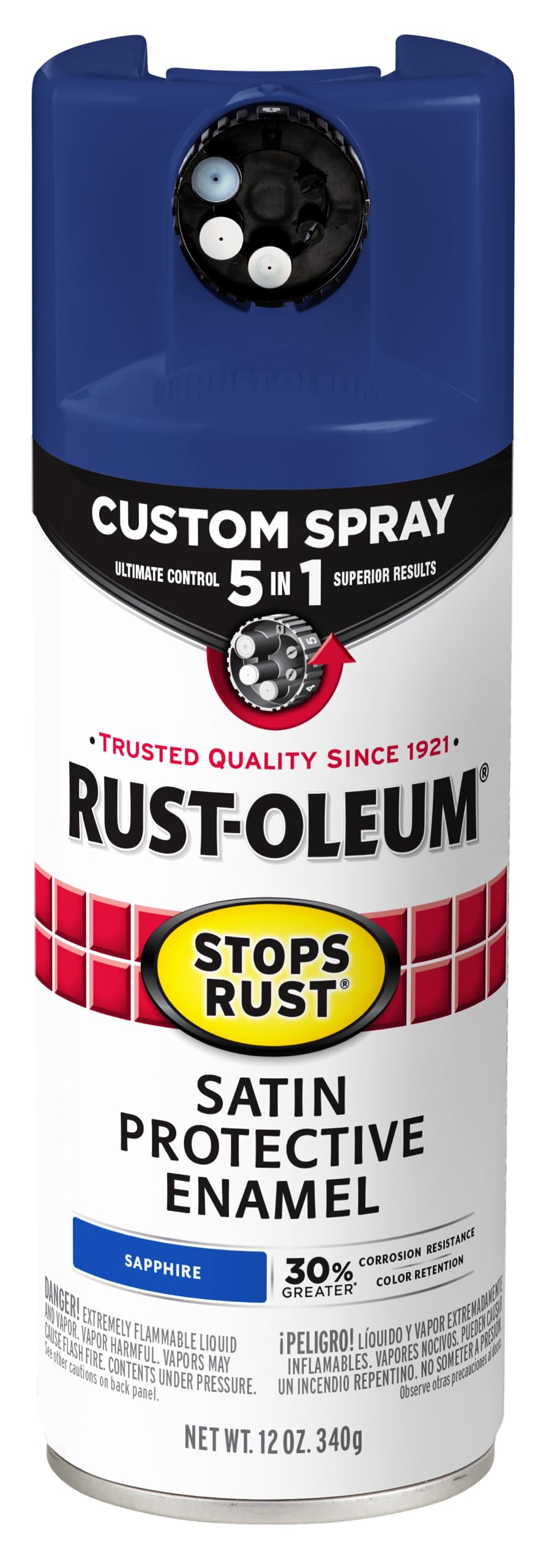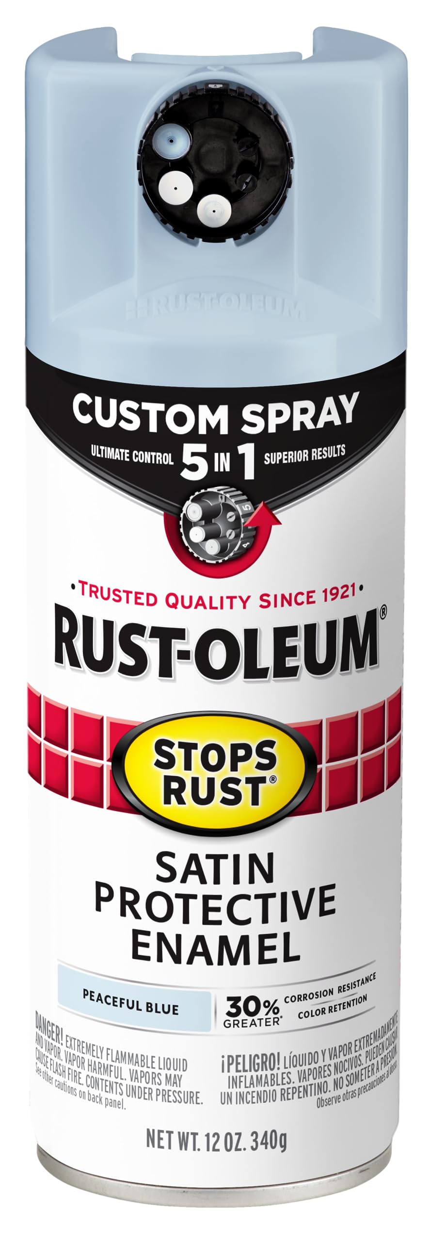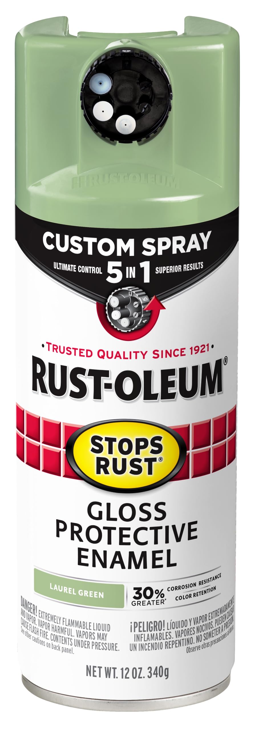 Rust-Oleum Stops Rust Protective Enamel with Custom Spray 5-in-1 technology provides a premium spray paint experience with unlimited ways to get your project done right. The innovative Custom Spray 5-in-1 dial allows you to choose from 5 spray paint nozzles for ultimate control and the advanced Stops Rust formula provides 30% greater corrosion resistance and color retention compared to the standard Stops Rust formula. Use the high output spray nozzle for large curved surfaces, standard for a traditional experience, low output for details and corners without drips and runs, and vertical or horizontal fans for flat surfaces. When you're done, turn the dial to the locked position and store the remaining spray paint for your next project.