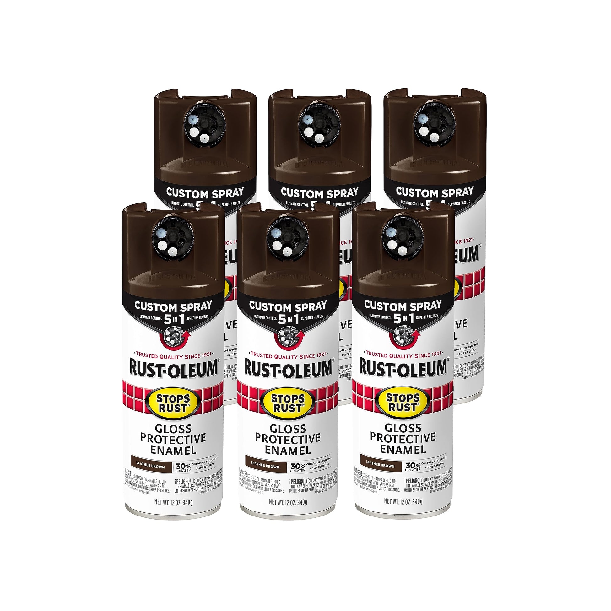 Rust-Oleum 376892 Stops Rust Custom Spray 5-in-1 Spray Paint, 12 oz, Gloss Leather Brown