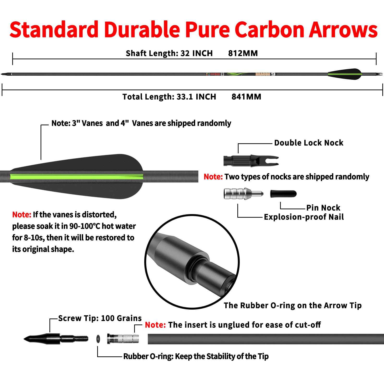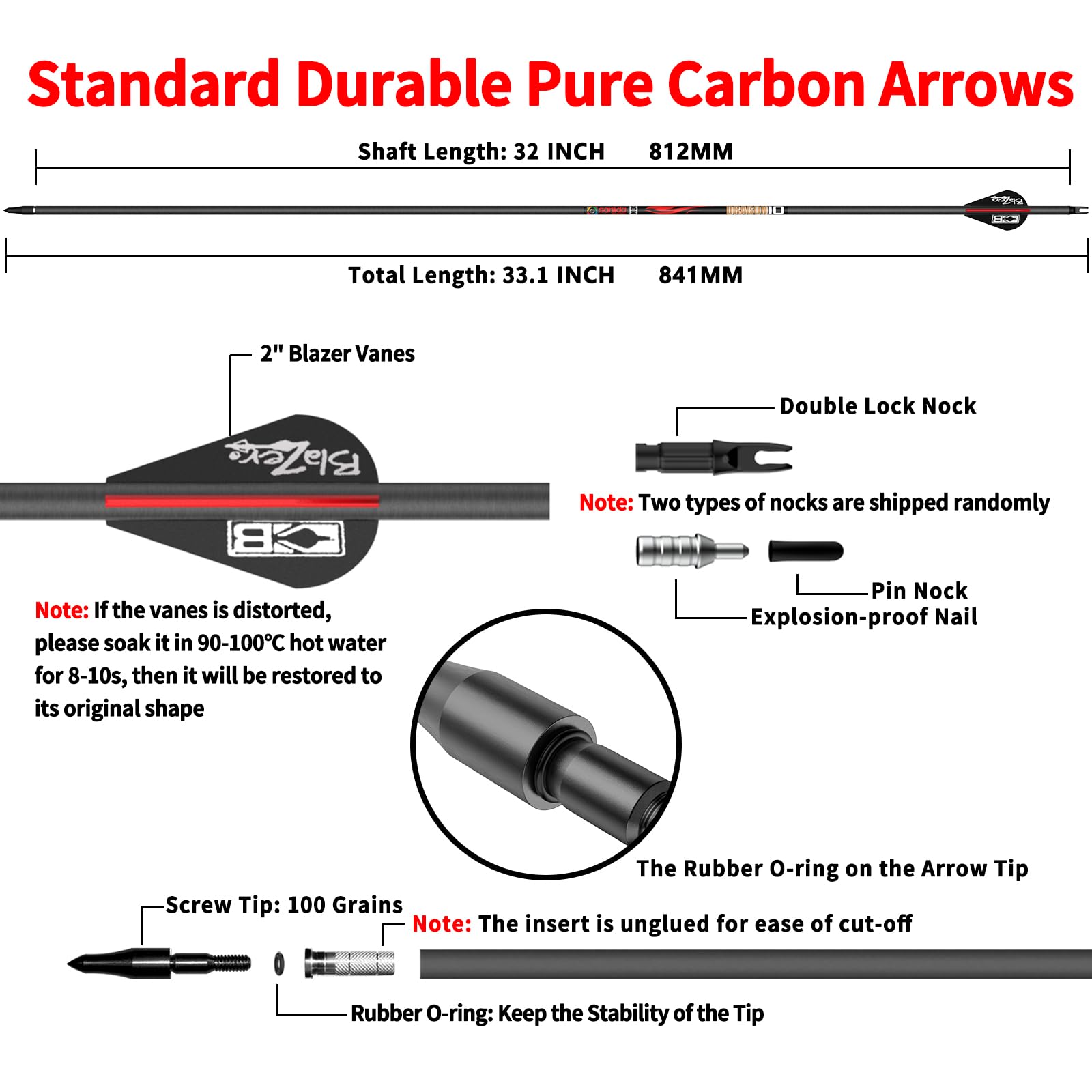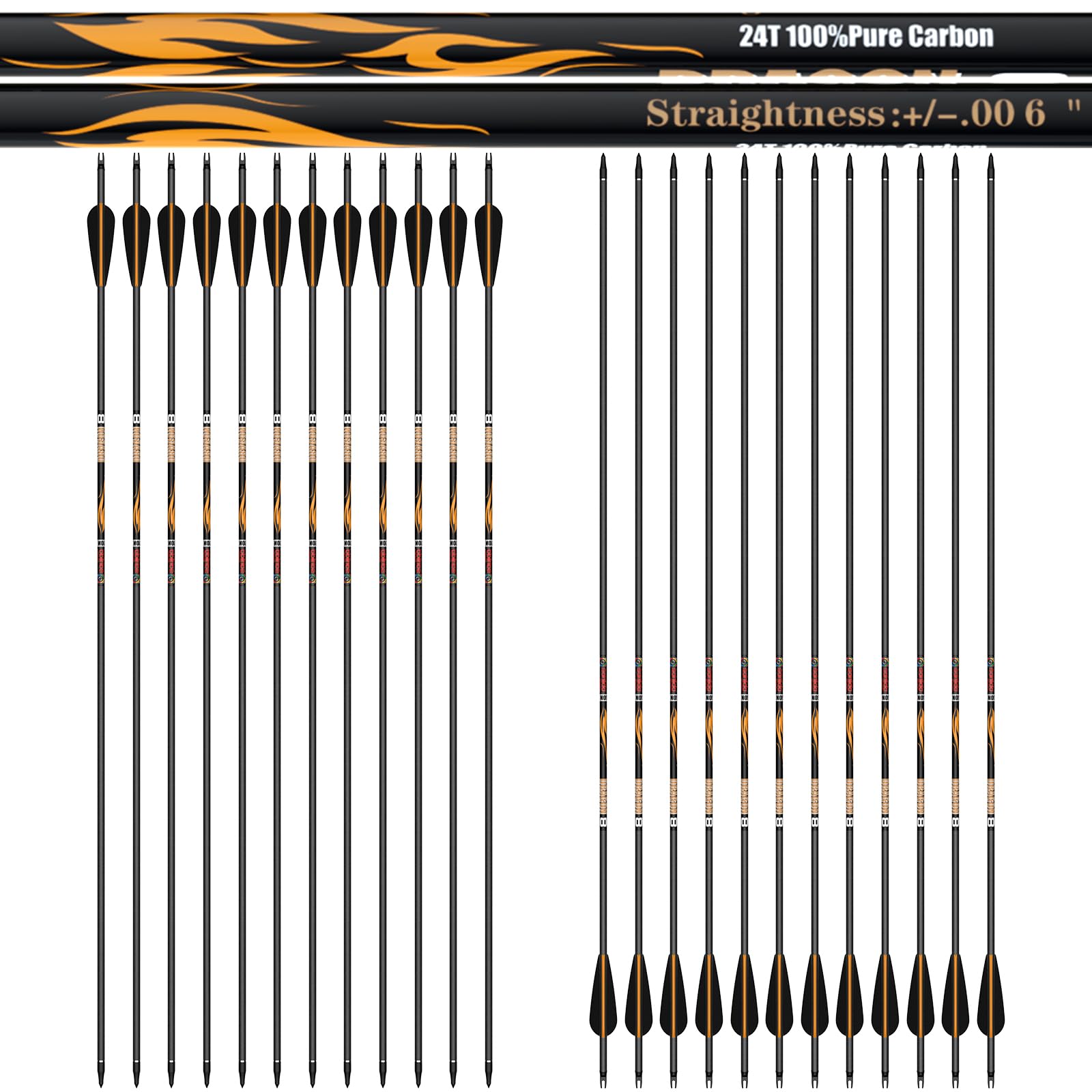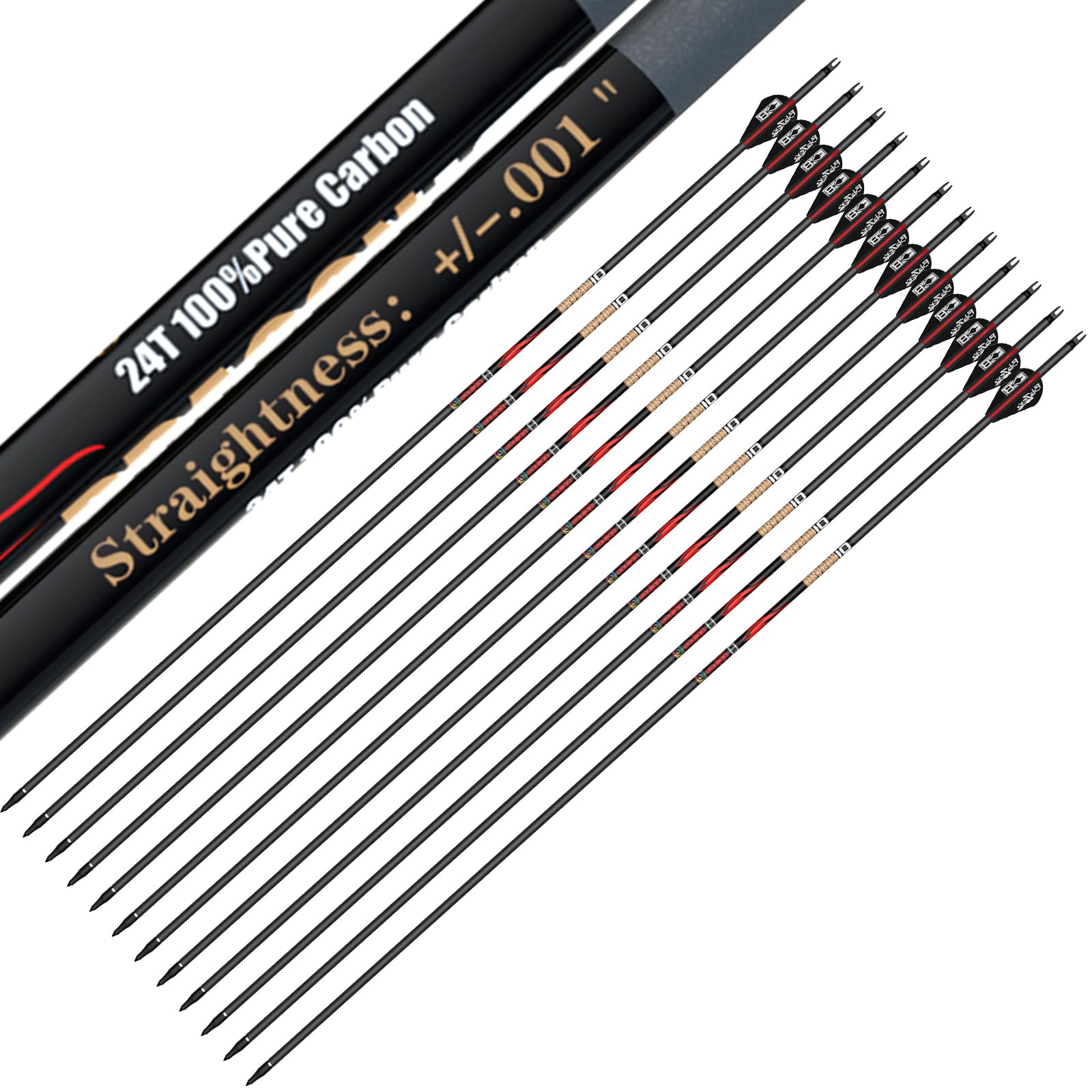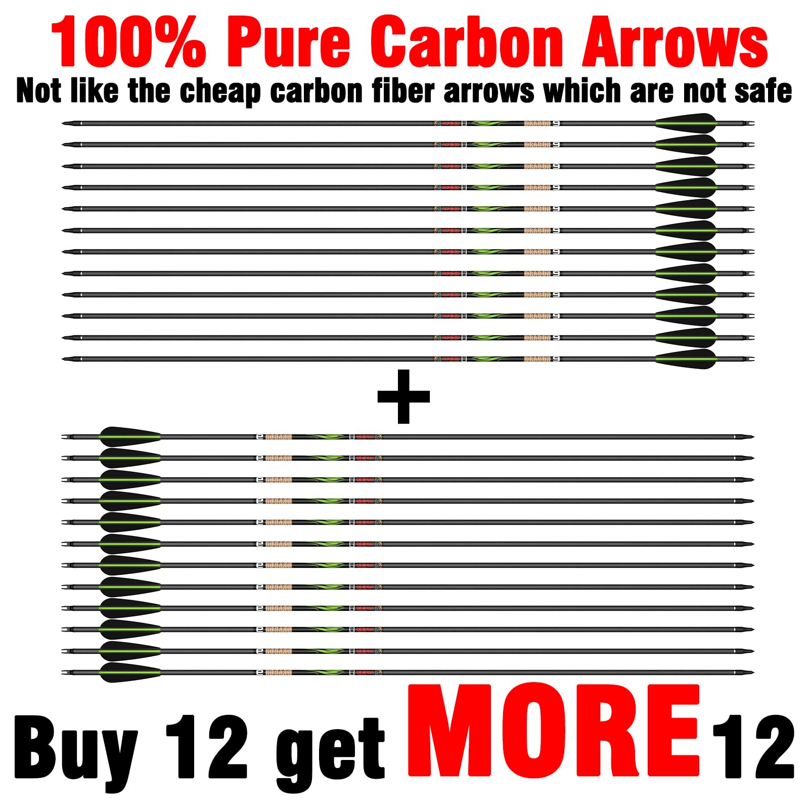 - 【Buy 12 Get 12 FREE】 The price listed is for 12 PCS of standard, professional, and durable pure carbon arrows. However, the package includes 24 PCS, offering ultimate cost-effectiveness.