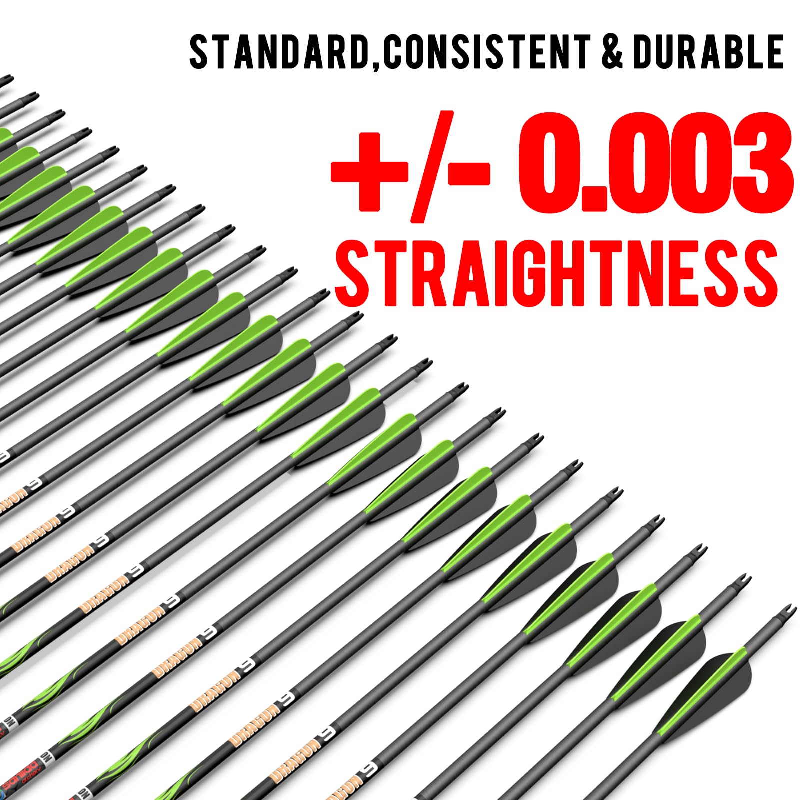 - 【Multiple Precision Spine Options】Select from 30 spine options (210-500 in 10-Spines increments) to precisely match your specific draw weight and bow length. Achieve optimal arrow flight and accuracy with the perfect spine rating for your setup.
