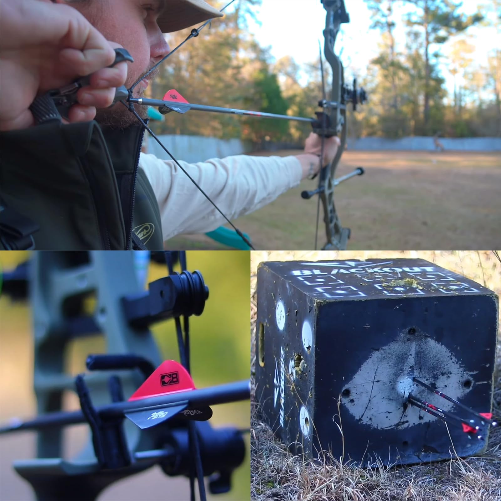 - 【Ready-to-Shoot, Time-Saving】 Pre-assembled arrows, no fletching required, saving effort and challenge. Fletching with 2 black 1 orange TPU vanes. Note: 3” and 4’’ vanes are shipped randomly.