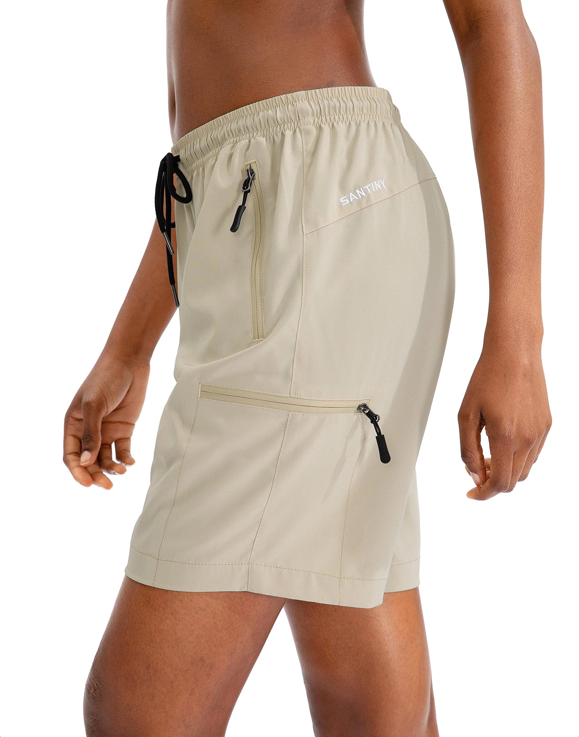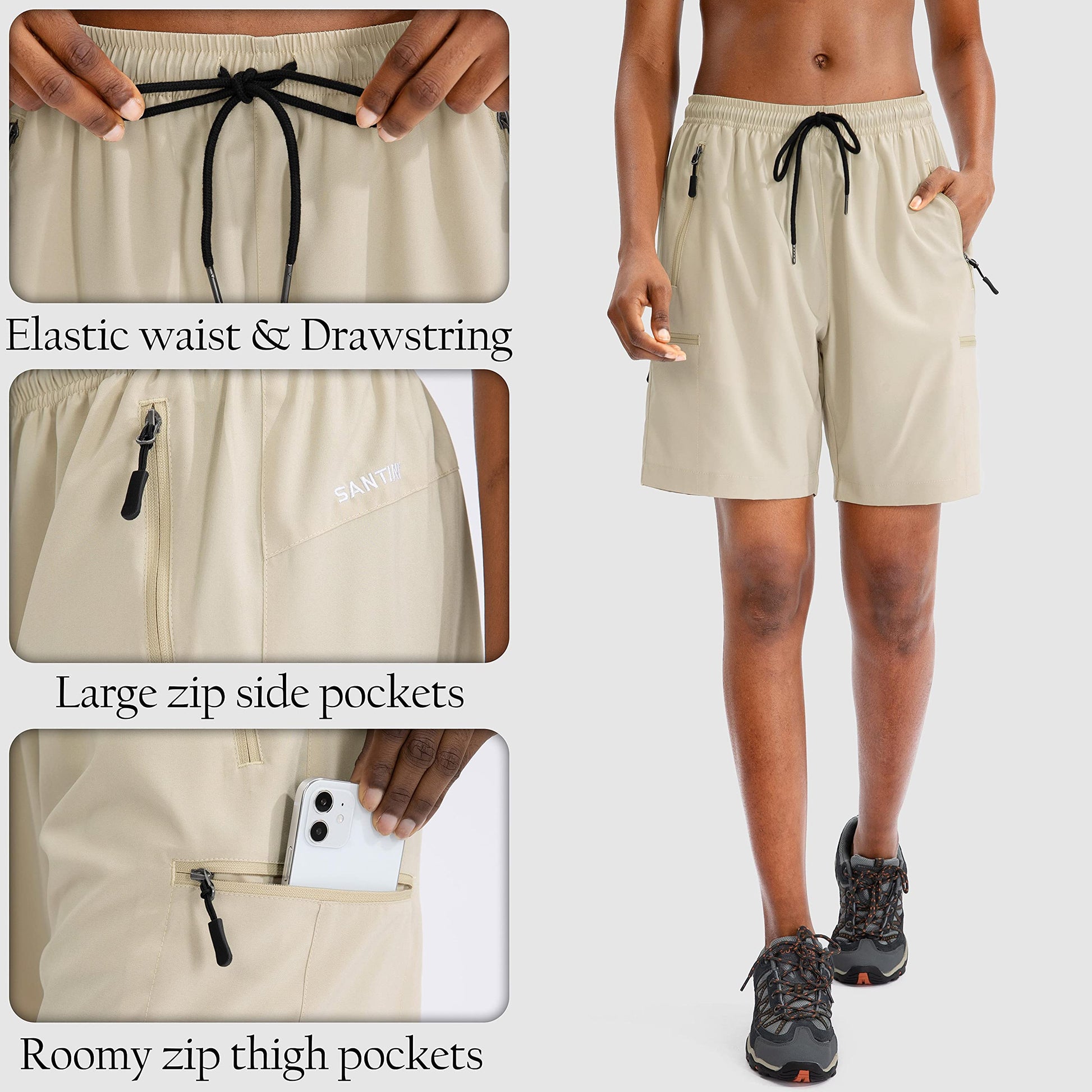 SANTINY Women's 5''/ 7''/9'' Hiking Cargo Shorts Quick Dry Lightweight Summer Shorts for Women Athletic Golf Zipper Pockets(Khaki_XL)
