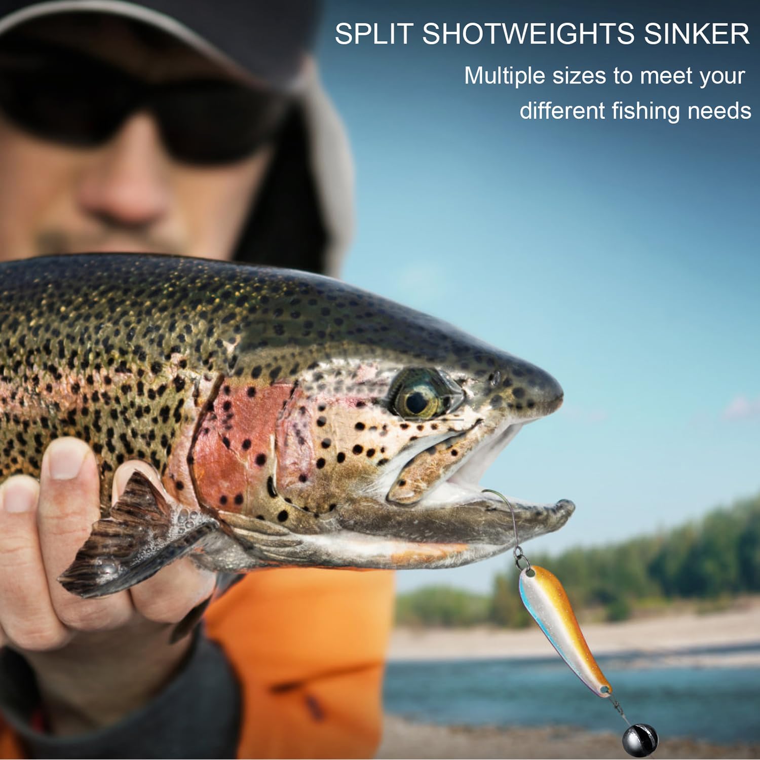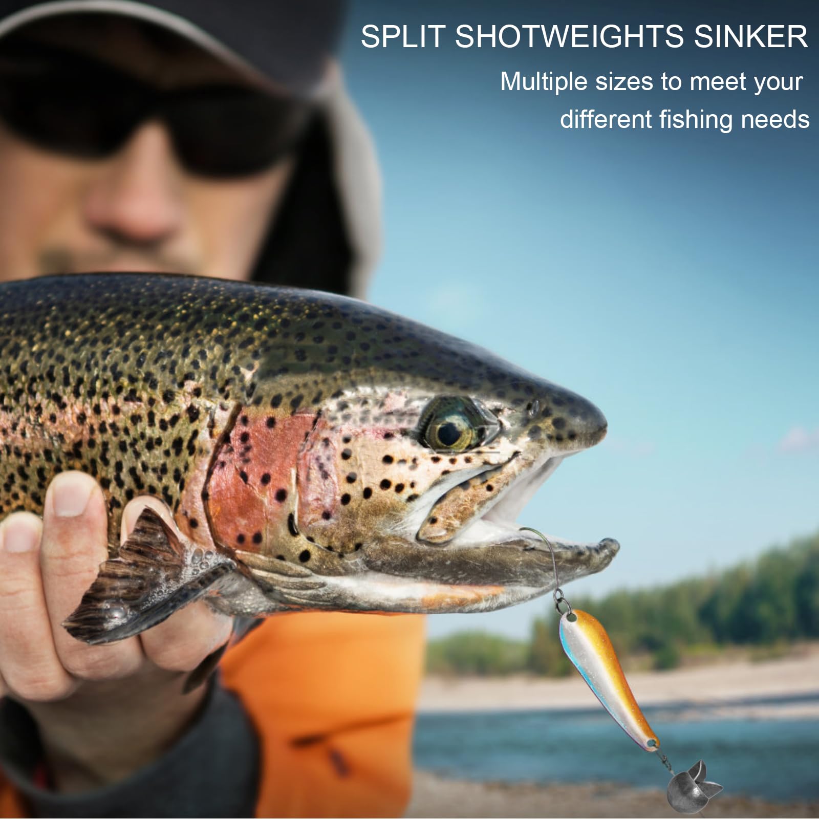 User Sanweal 120PCS Fishing Weights Sinkers Set is a great choice for fishing enthusiasts who need a wide range of sinkers for their fishing adventures. The sinkers are made of high-quality Lead and are designed to provide excellent durability and strength, making them perfect for a variety of fishing conditions. The sinkers are also equipped with a round shape and a split shot design, which makes them easy to attach to fishing lines and lures, and allows for more precise casting and fishing. The sinkers are available in different sizes and weights, including 5 Sizes, to suit a wide range of fishing needs and preferences. Whether you are fishing in freshwater or saltwater, these sinkers are sure to provide you with the stability and weight you need to successfully catch fish.