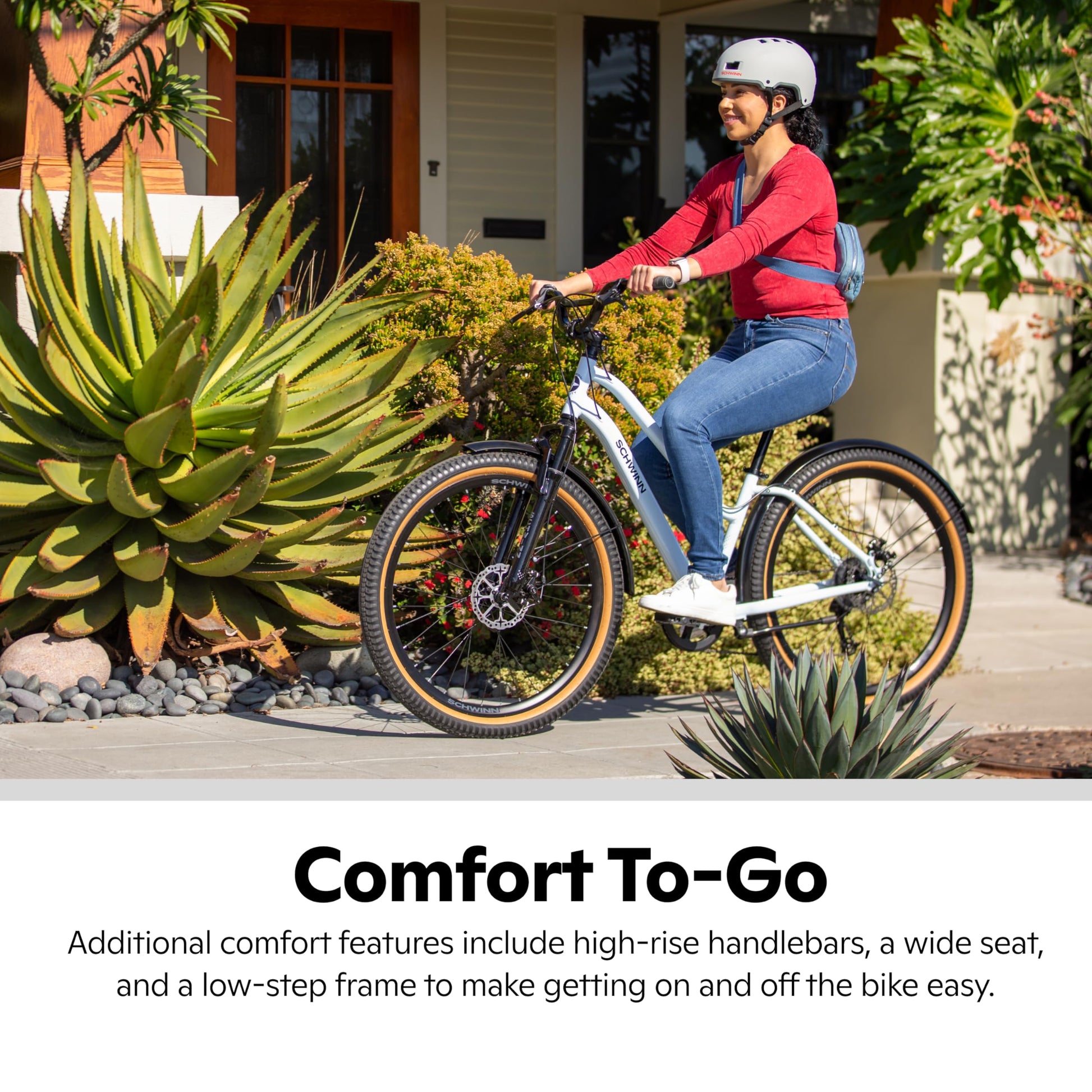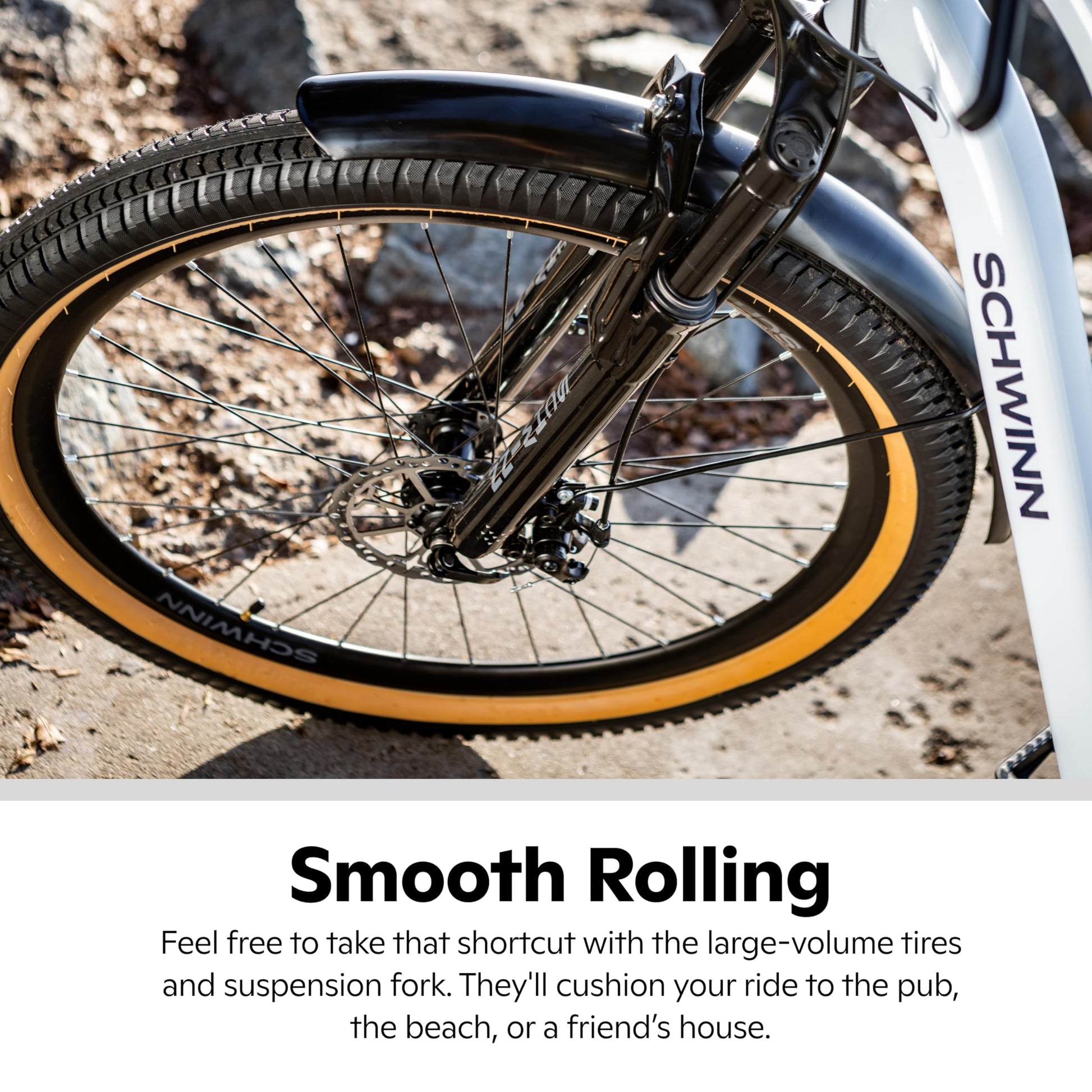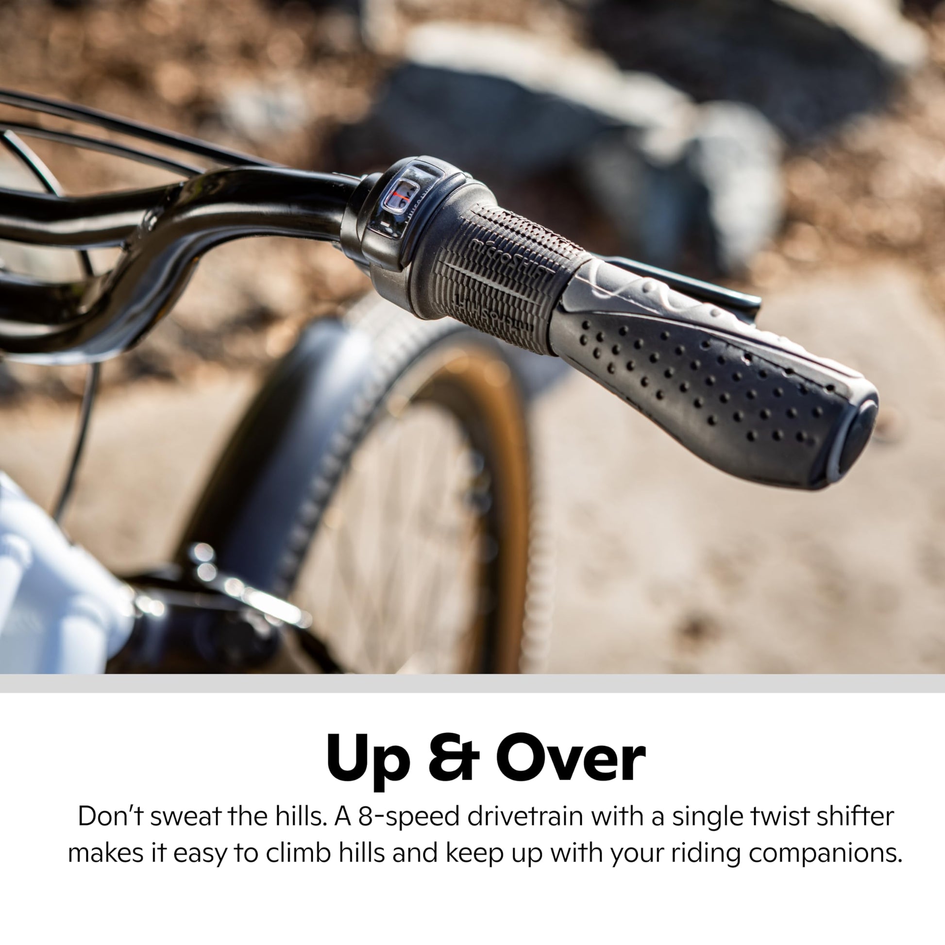- SMOOTH ROLLIN': Tackle hills with ease using the 8-speed drivetrain and single twist shifter. Large volume tires and a suspension fork deliver a cushy, comfortable ride, so you can keep up with friends and enjoy every moment.