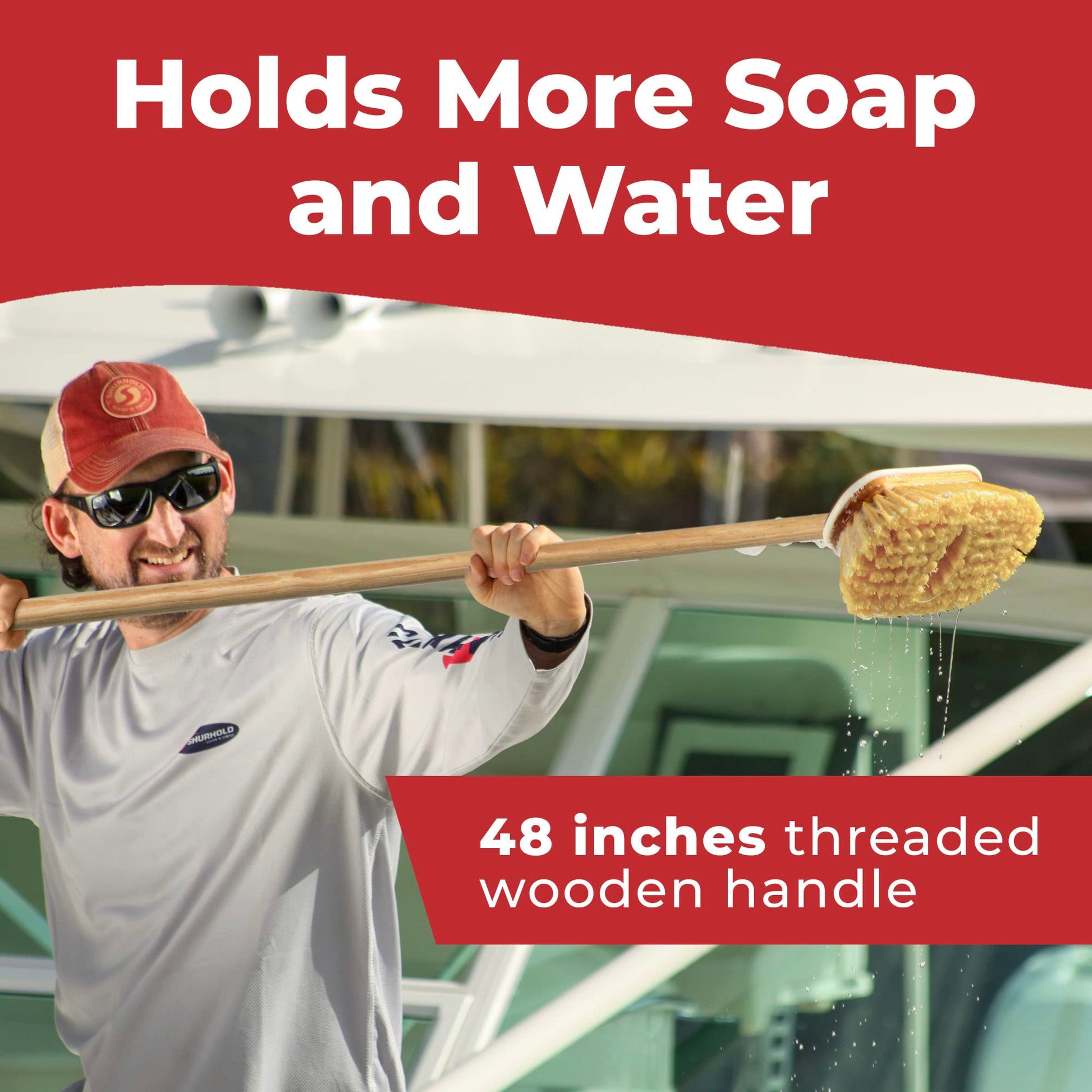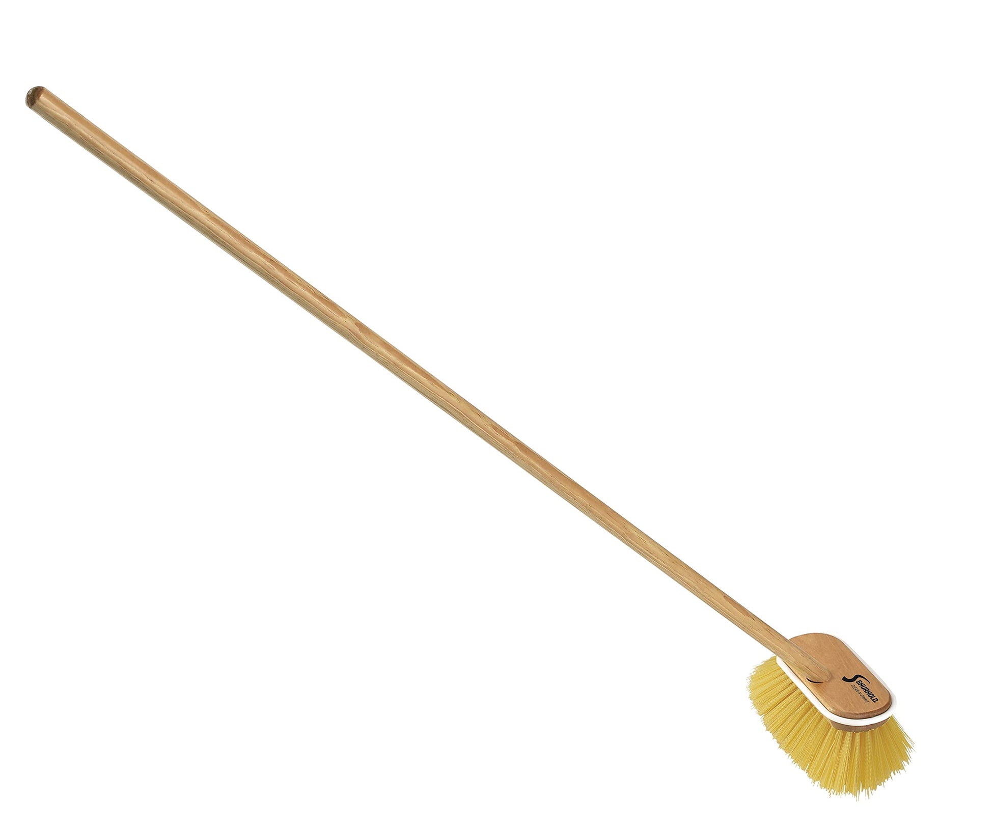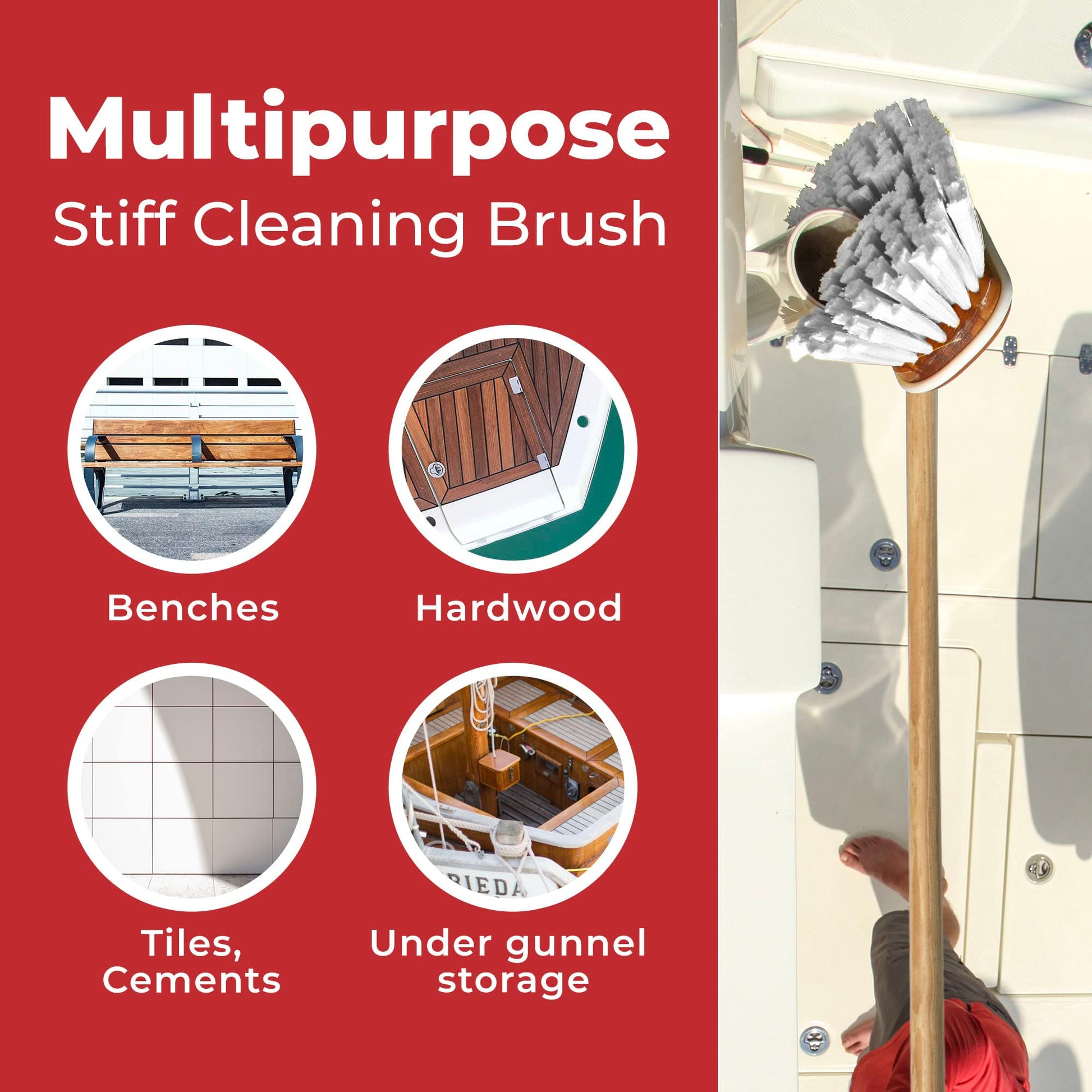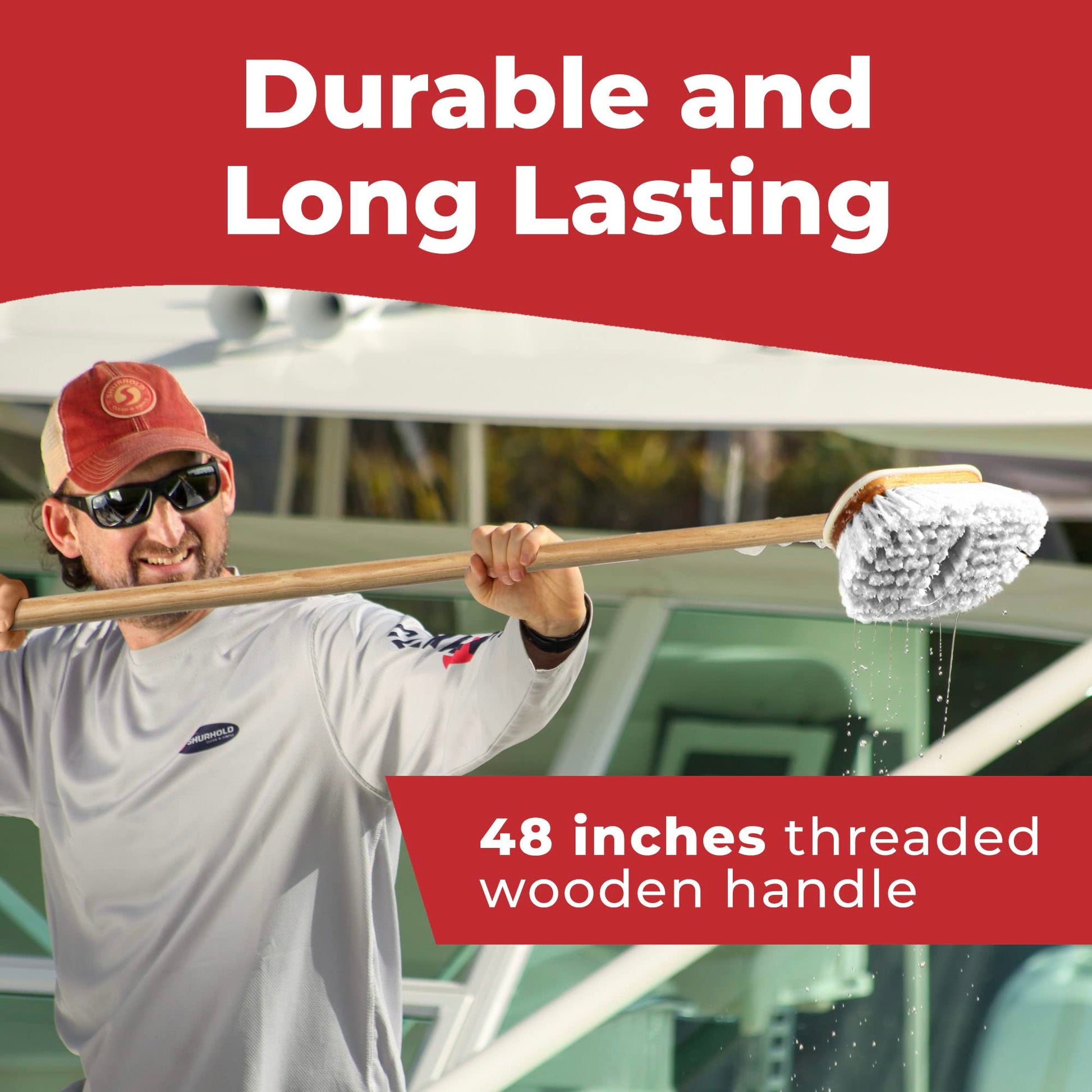 - STURDY CONSTRUCTION - This bristle brush is carved from a solid wood block and attached to a threaded wood handle for durability that holds up to years of repeated deck and hull scrubbing