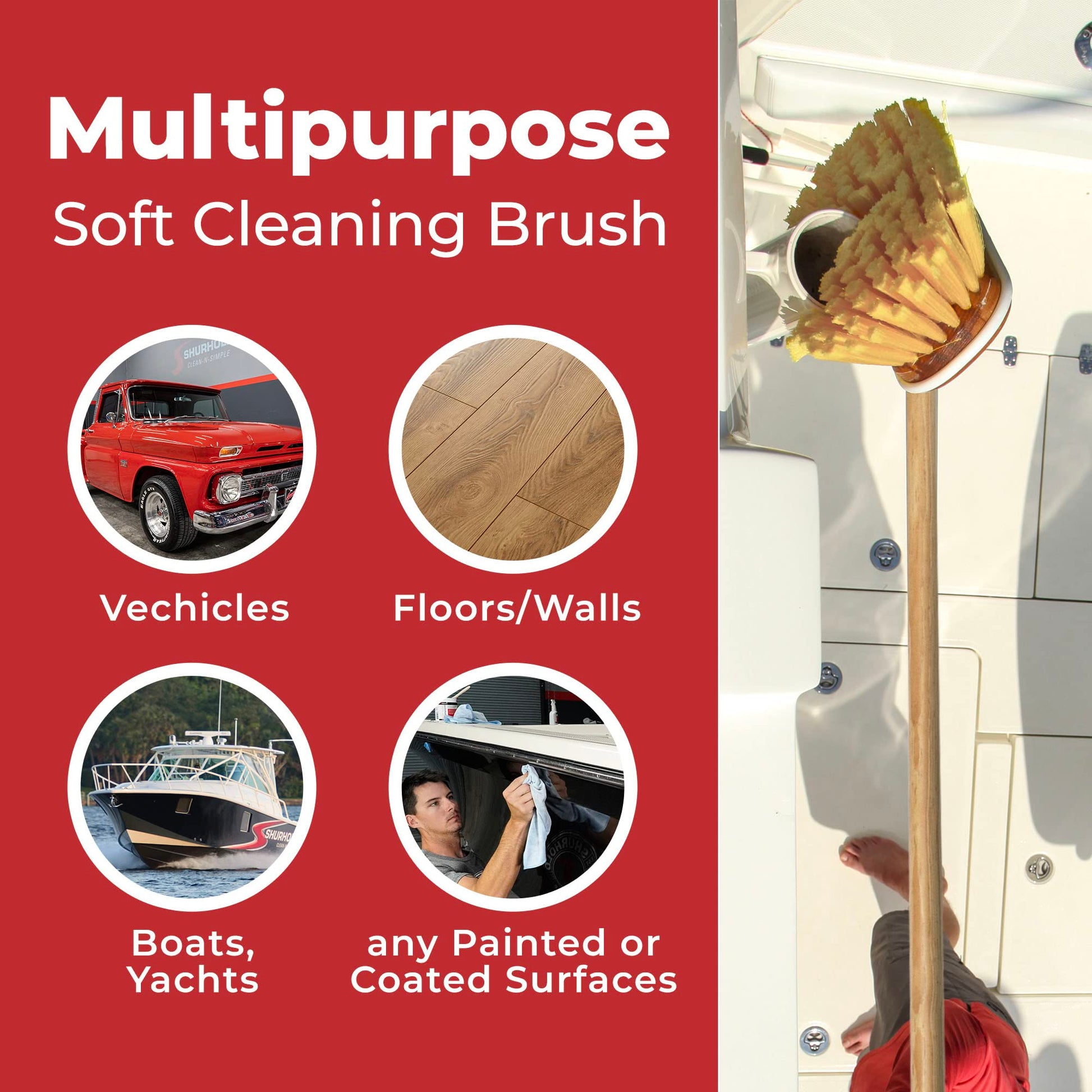 - SCRATCH FREE SCRUBBING - The soft polypropylene bristles on this long handle scrub brush are designed to clean delicate, easily damaged surfaces such as paint, fiberglass, gelcoat and clear coat without risk of scratching