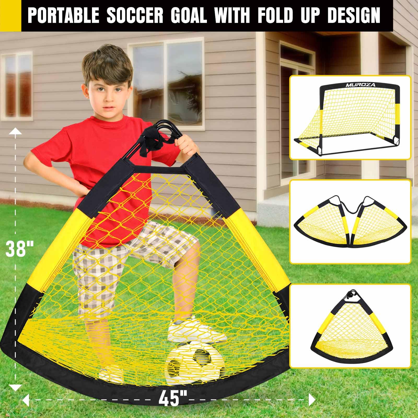 - Play Soccer Anytime, Anywhere: Our kids' soccer equipment for training is designed for easy transport and storage. soccer net set is lightweight yet sturdy, with a foldable structure and carrying bag that allow your child to easily take the soccer goal to the backyard, park, beach, garden, field, soccer pitch, community area, school playground, and other indoor and outdoor activity venues. Enjoy soccer games anytime, anywhere.1-18 years old.soccer training equipment