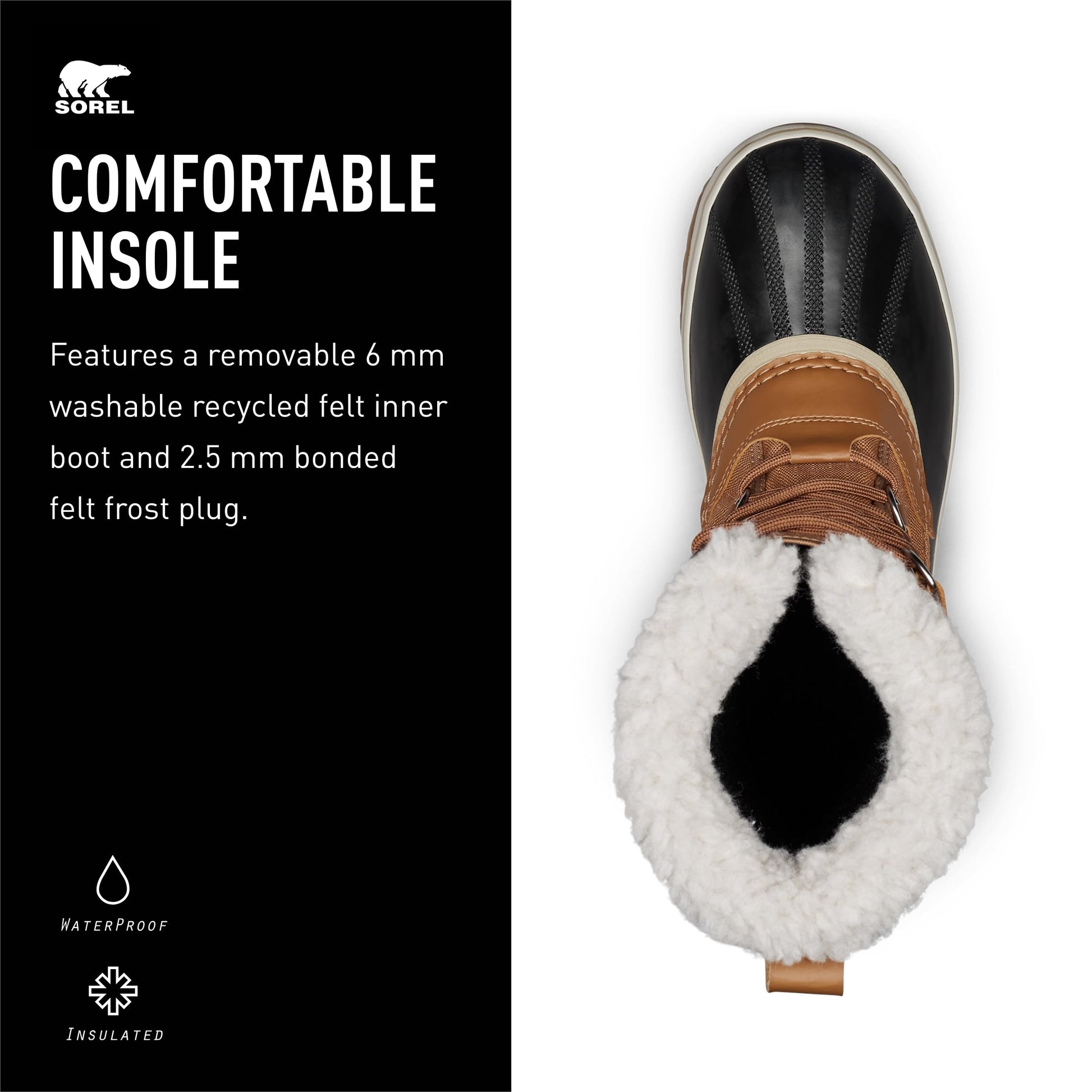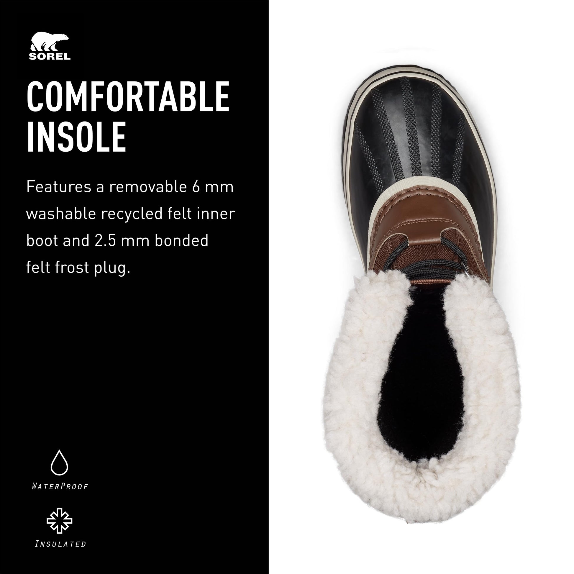 - SOREL Winter Boots for Men: This men's boot with laces allows you to adjust the tightness for a secure feel; the waterproof boot features a handcrafted, waterproof, and vulcanized rubber shell with a herringbone outsole