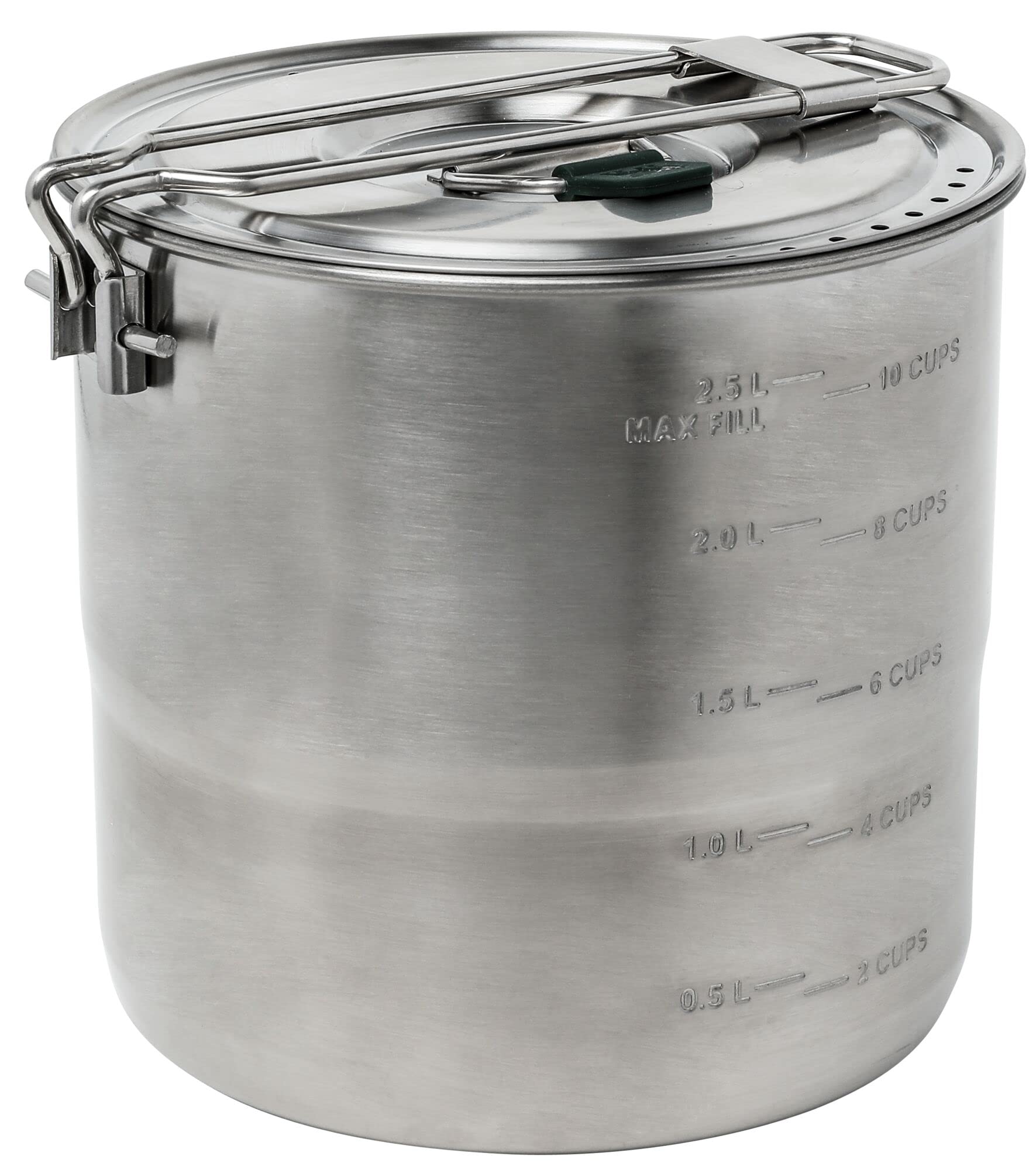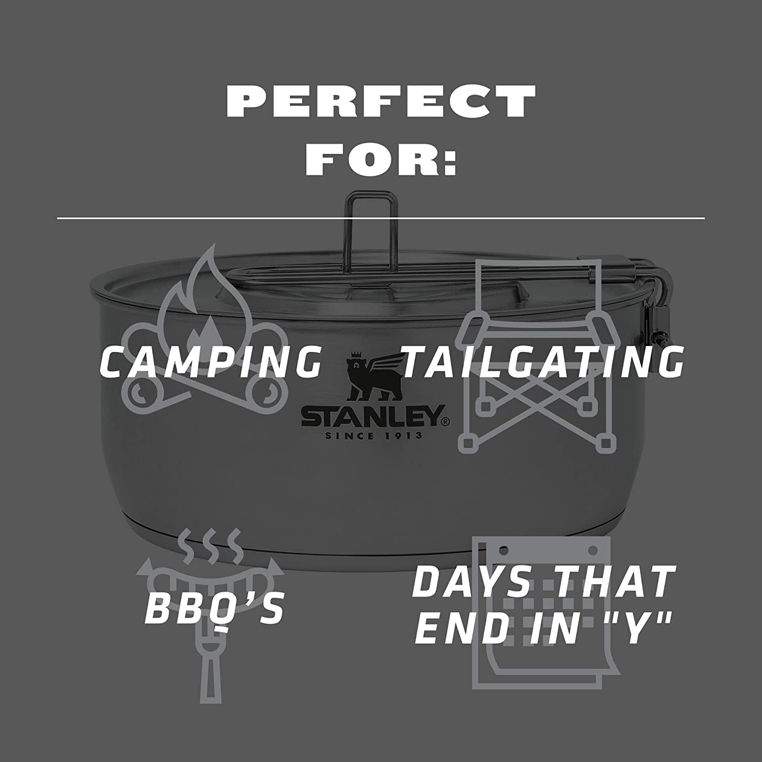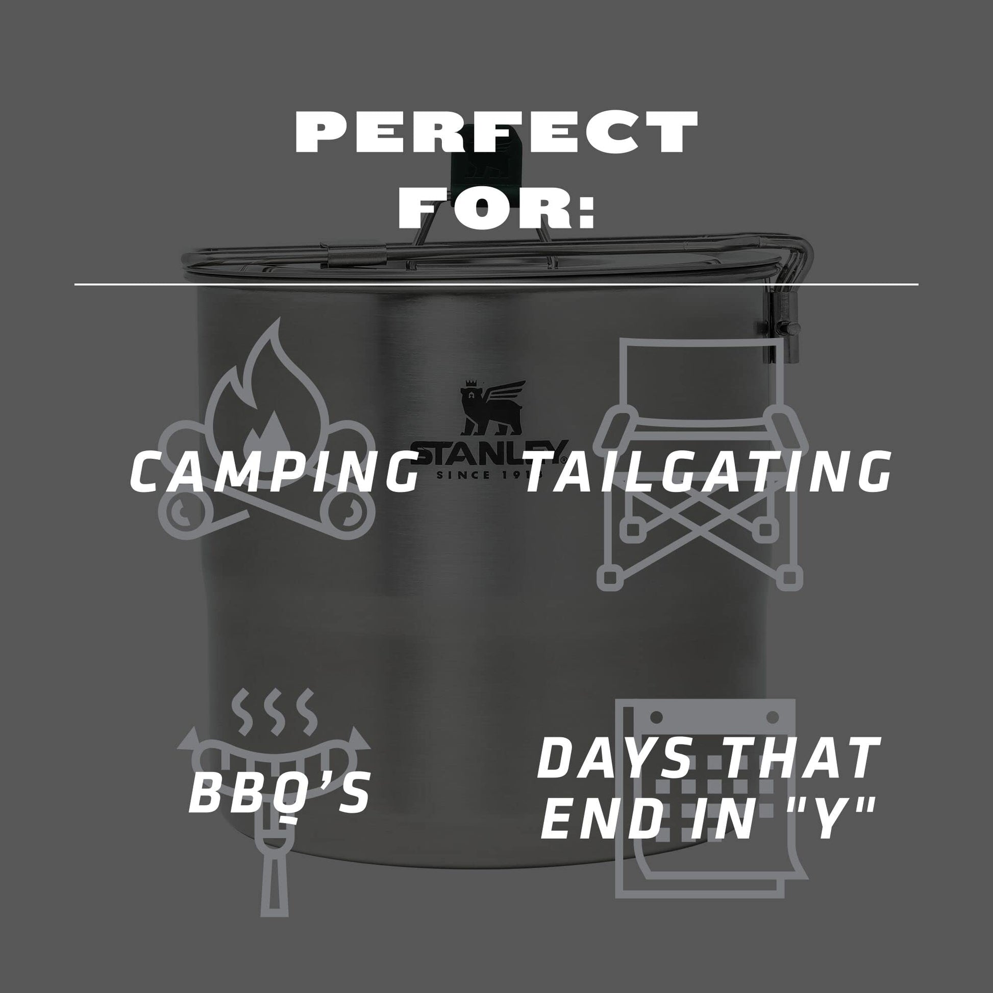 - LEGENDARY STANLEY QUALITY: Go out camping, hiking, backpacking, or tailgating, and watch these outdoor cooking accessories withstand all the adventure. The dishwasher-safe pot is made using BPA-free, 18/8 stainless steel that won’t rust or break