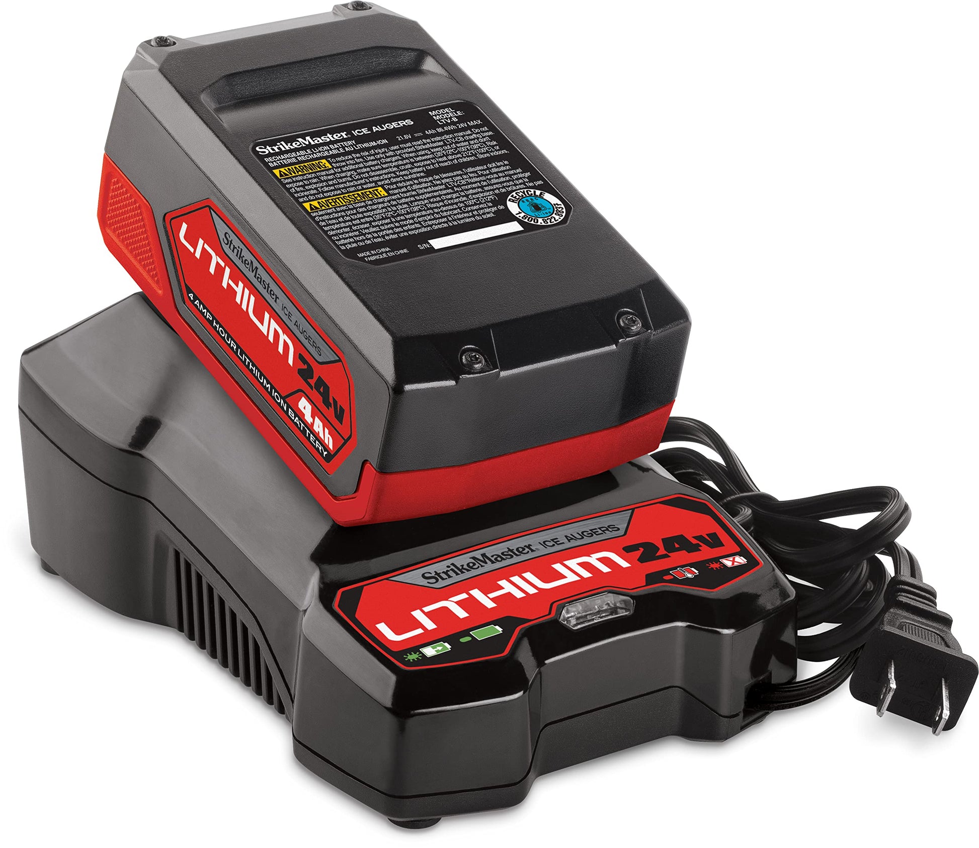 Lightweight Construction For Portability: Engineered with durable yet lightweight materials for easy transportation and handling on the ice, Precision 6-Inch Cutting Diameter: Delivers clean and efficient drilling, ideal for ice fishing enthusiasts seeking reliable performance, Ergonomic And User-Friendly Design: Features a comfortable grip and intuitive controls to maximize ease of use and reduce operator fatigue, Advanced 24-Volt Lithium-Ion Battery System: Features a 4-amp hour battery with an internal management system for longevity, 3-LED charge indicator for status updates, and a 2-amp charging station that recharges in just 2 hours. Battery and Charger included , StrikeMaster Ice Augers: Proven, Reliable, Powerful