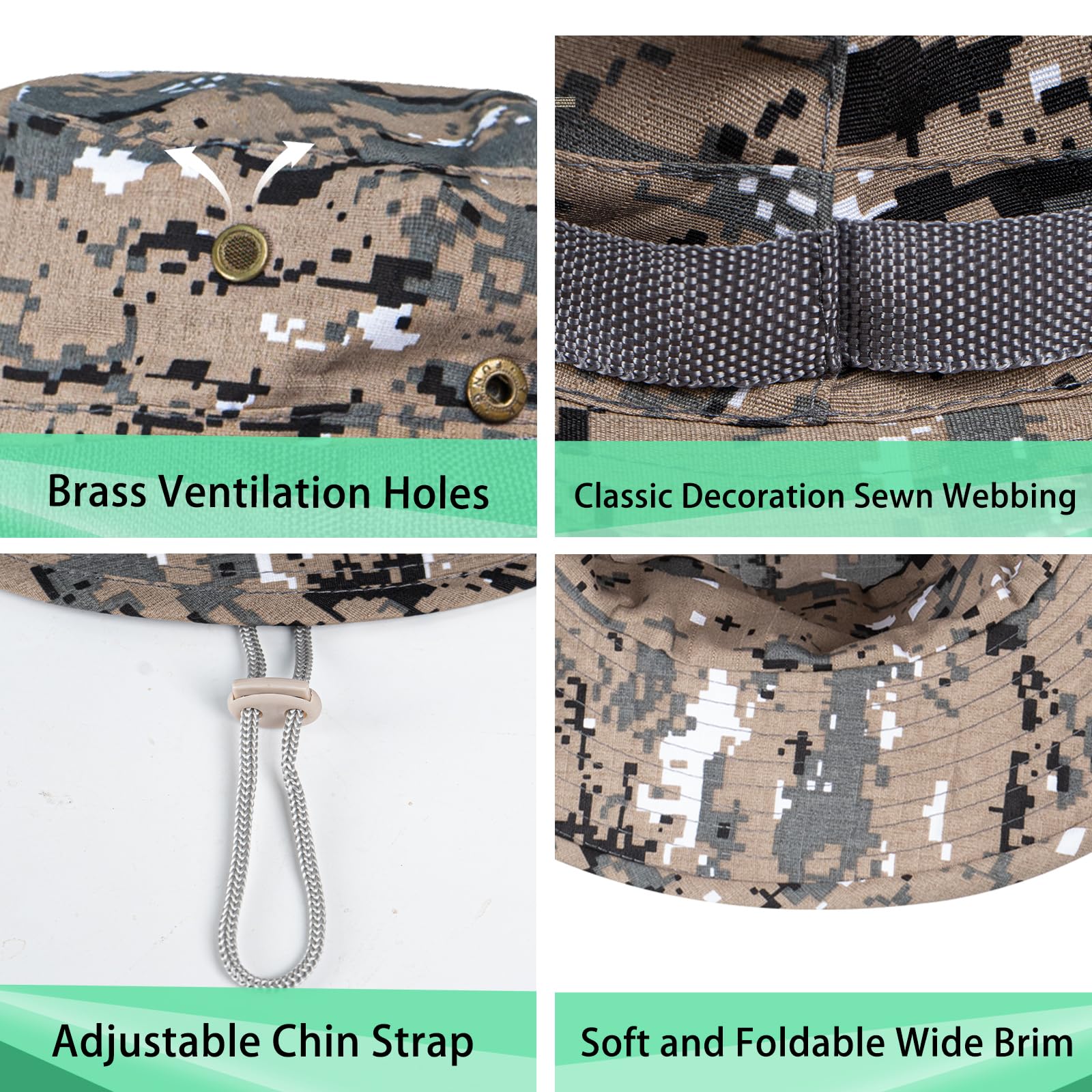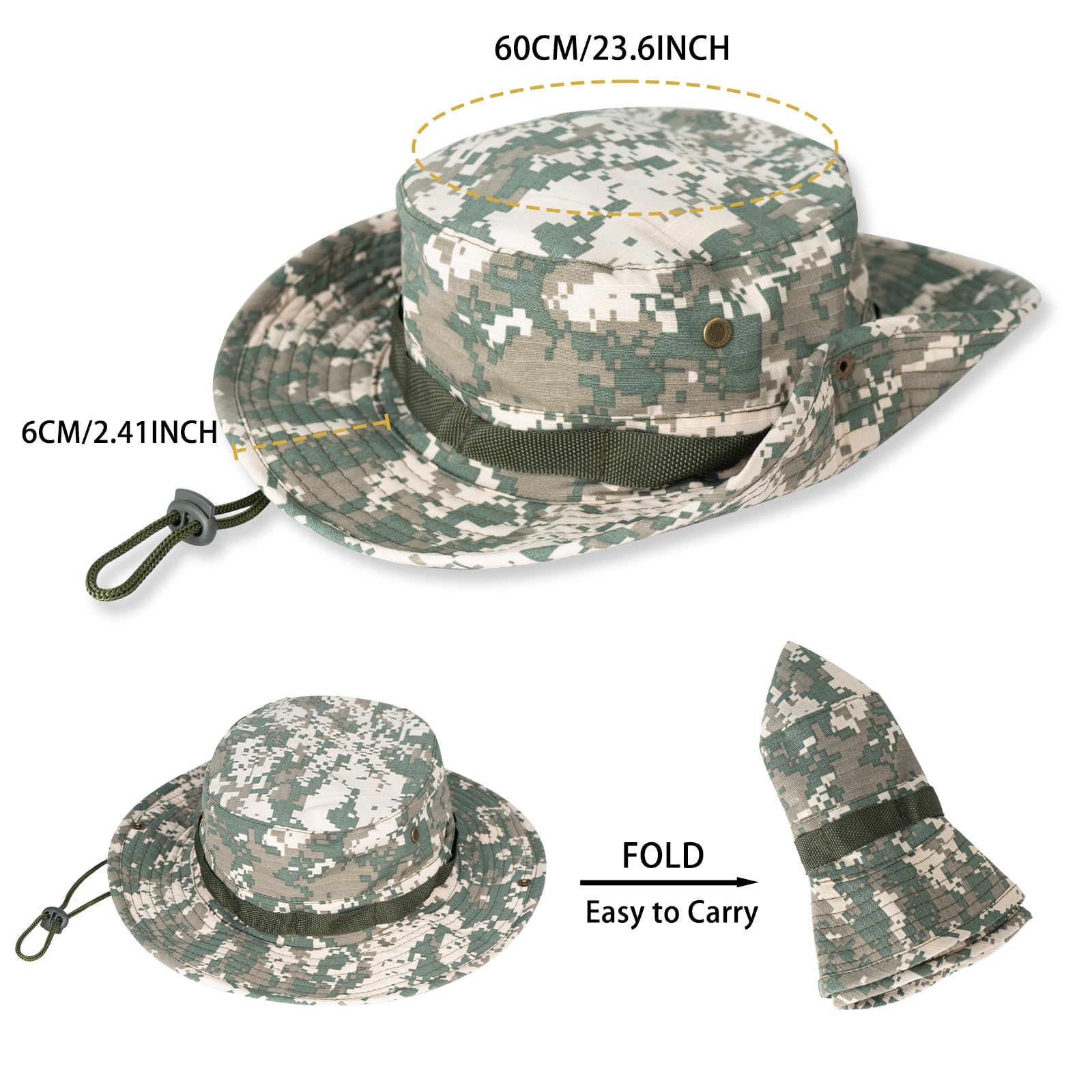 - ADJUSTABLE AND FOLDABLE: This boonie hat is equipped with an adjustable chin drawstring to hold the hat in place on windy days and to ensure a secure fit. Our hat is made by High-quality material, light weight and comfortable. The hat can be folded into a small piece, which is very convenient to put it in your bag or pocket.