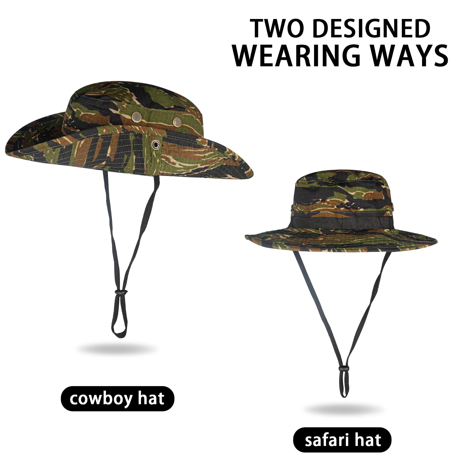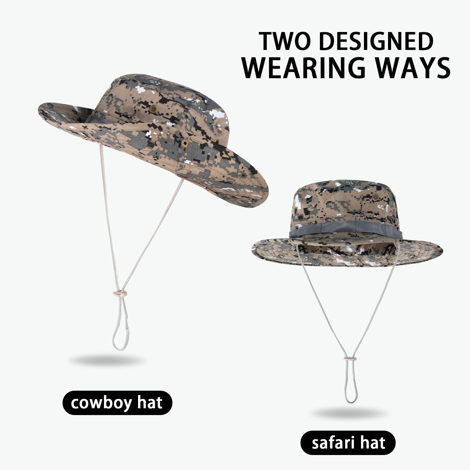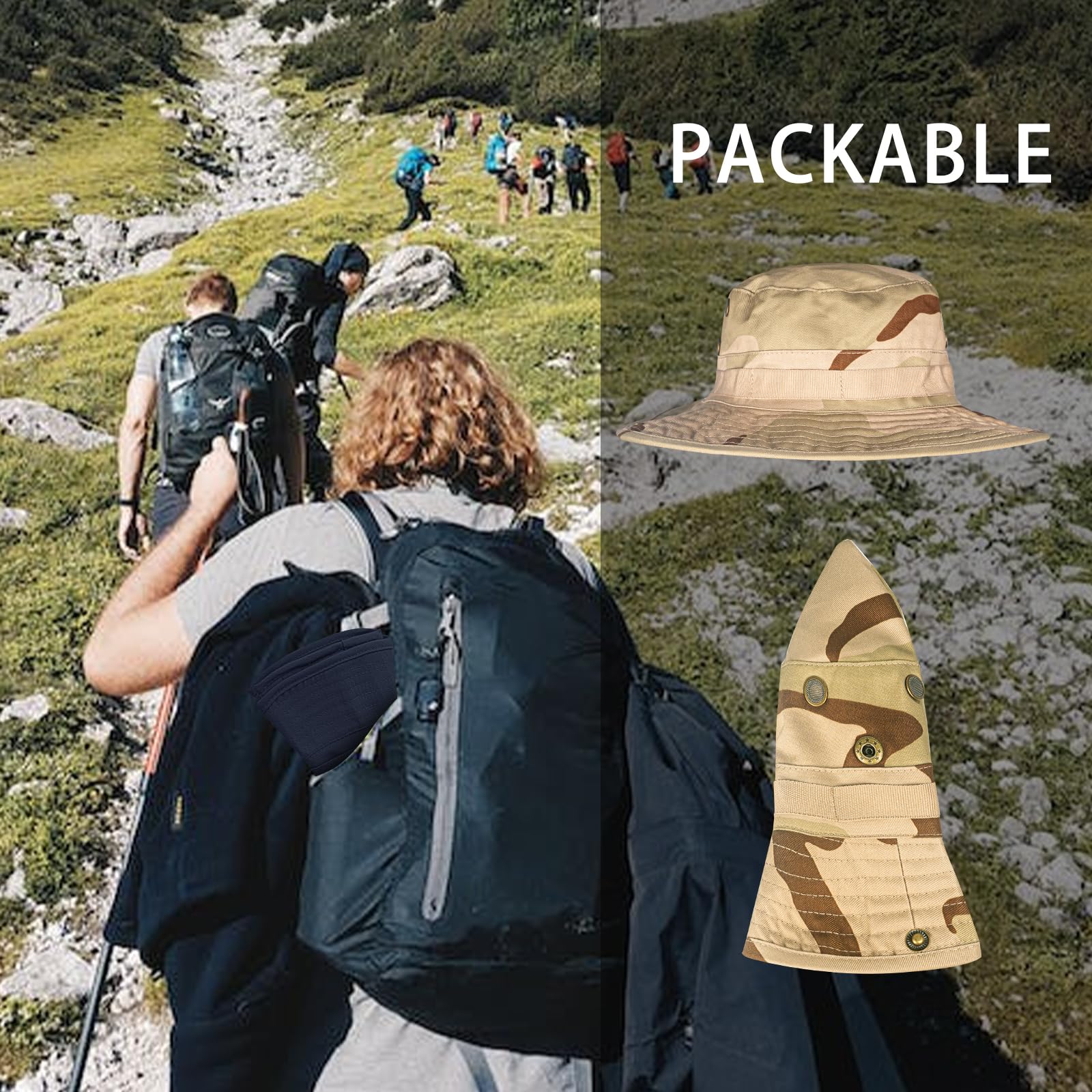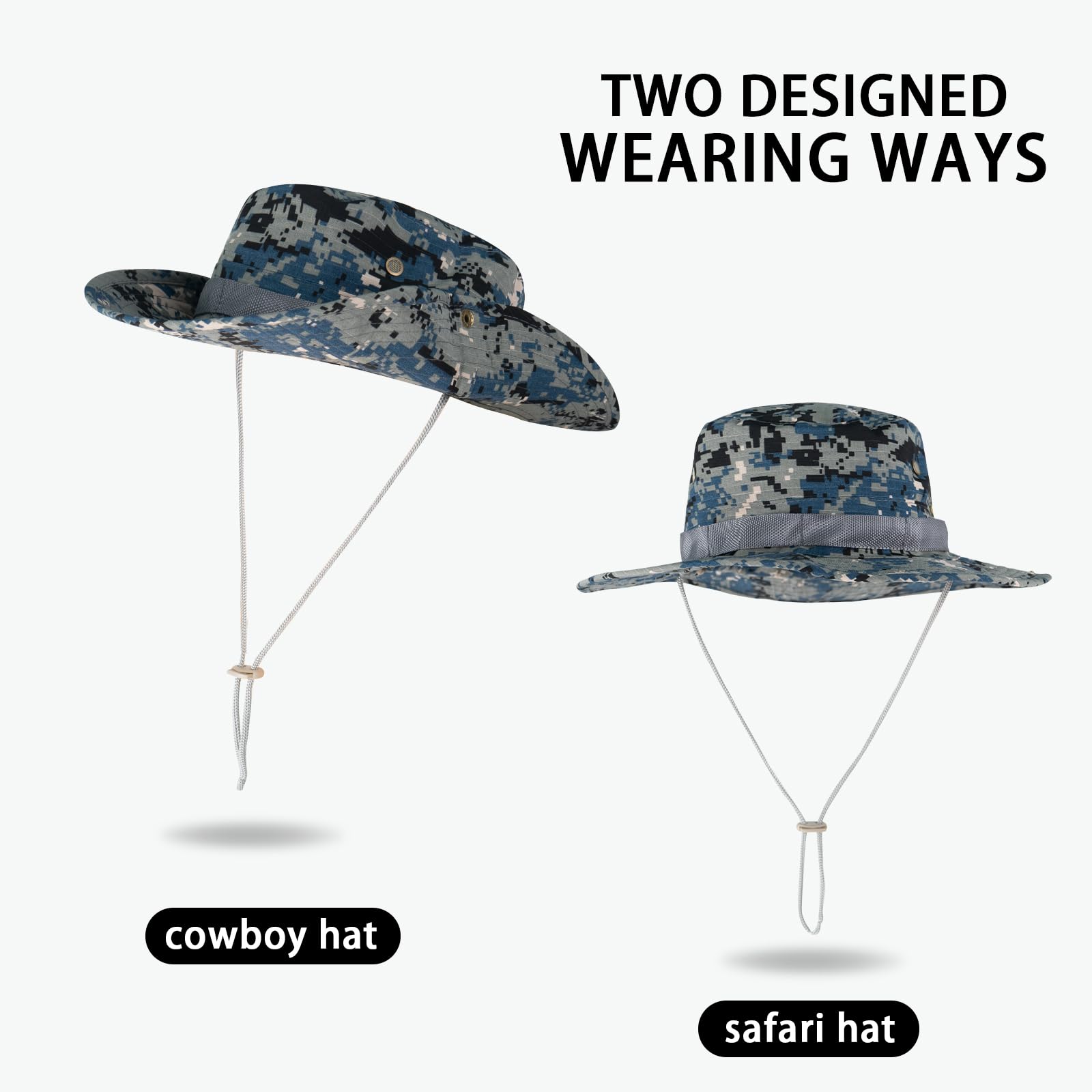 - TWO DESIGNED WEARING WAYS - Our unisex bucket hat has two ways to use it. Both sides are designed with rust-proof Pop-In buttons for easy conversion to Sheriff / Cowboy style. When the brim is buttoned up, it's a cowboy hat. Loosen it, which will be a fashionable sun-proof safari hat/fisherman hat for men and women.