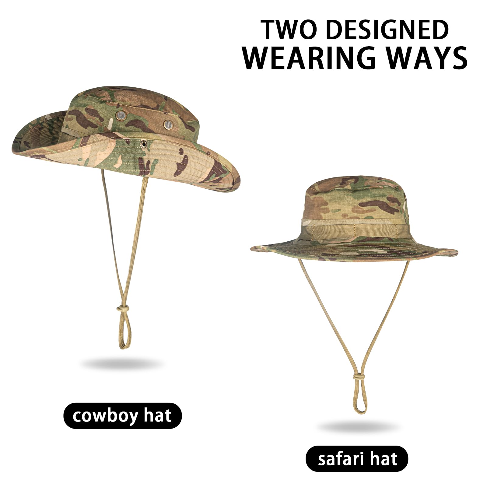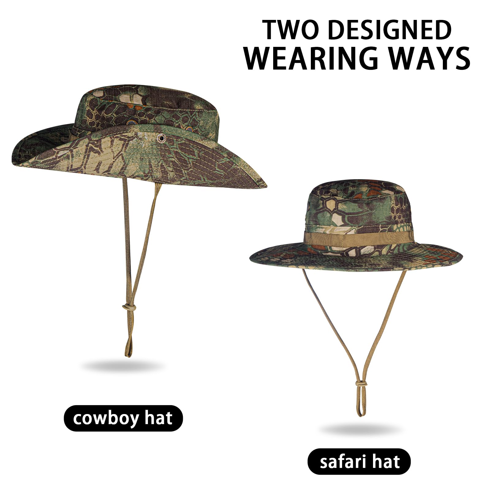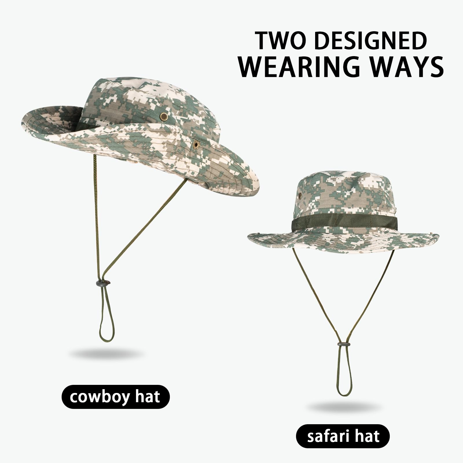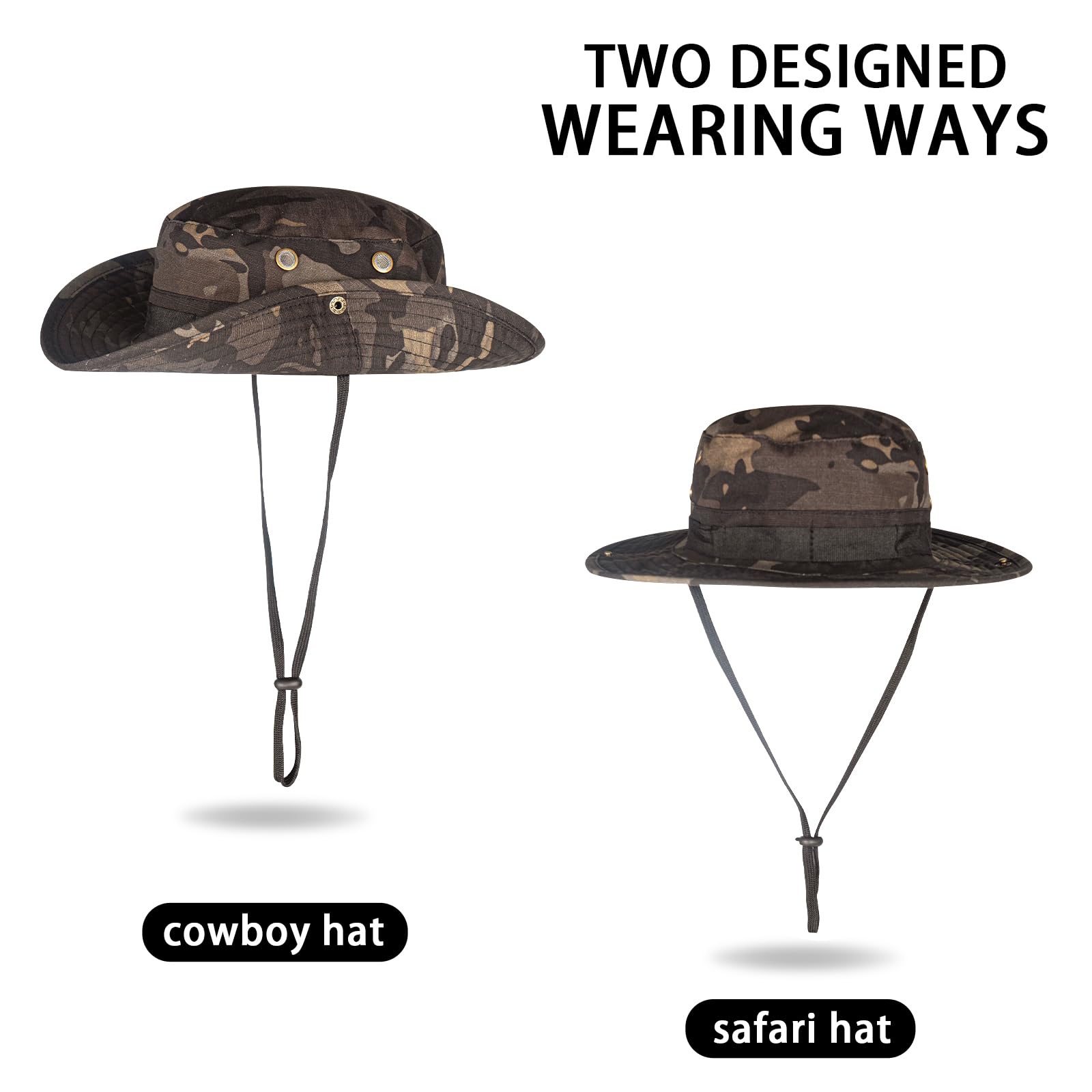 - TWO DESIGNED WEARING WAYS - Our unisex bucket hat has two ways to use it. Both sides are designed with rust-proof Pop-In buttons for easy conversion to Sheriff / Cowboy style. When the brim is buttoned up, it's a cowboy hat. Loosen it, which will be a fashionable sun-proof safari hat/fisherman hat for men and women.