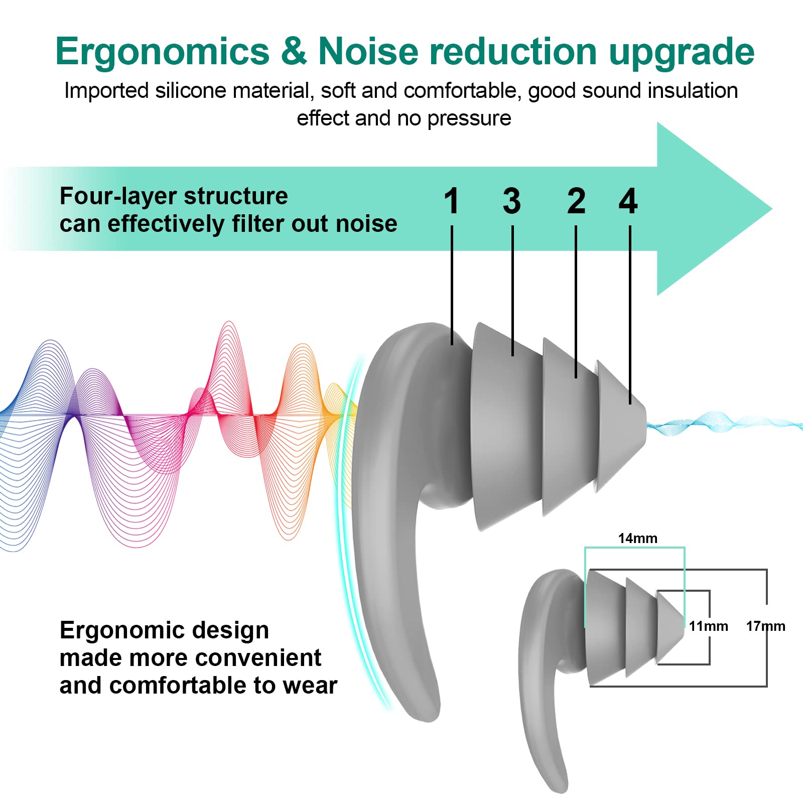 - 【Anti-Slide】FNGXX swimming earplugs are designed according to the structure of the human cochlea. It has a special anti-slip design, so you don't have to worry about the earplugs falling off when swimming.