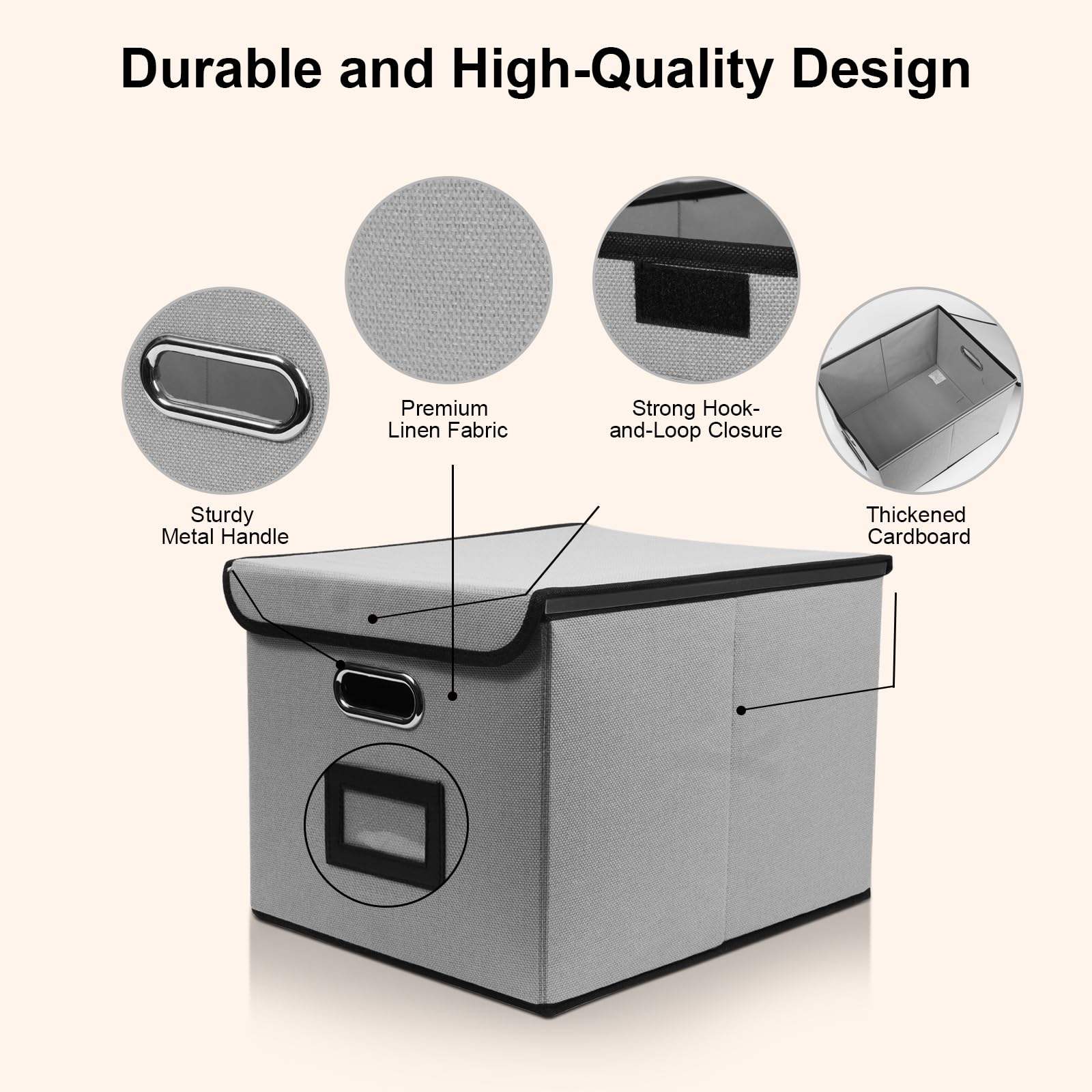 - Premium Materials:Crafted from high-quality burlap-style non-woven fabric and reinforced with durable cardboard, this file storage box offers excellent durability and a sophisticated textured look. The eco-friendly material ensures long-lasting use and helps maintain its shape.