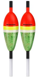 - WELL MADE & HIGH QUALITY BOBBERS : Made of high quality balsa wood. Five Floatage to Choose: 1/10oz(2.49"X0.61"X5.61")-5pcs, 1/7oz(1.5"X0.6"X4.58")-5pcs, 1/6oz(3.47"X0.47"X6.73")-5PCS, 3/8oz(3.84"X0.6"X 7.2")-5PCS, 1/2oz(4.13"X0.75"X7.87")-5PCS (Float Elliptical Body’s Length X Float Elliptical Body’s Width X Float Total Length). You can fish for walleye or catfish suspended inches off the bottom, panfish or pike suspended midway, or trout cruising along in the top third of the water column.