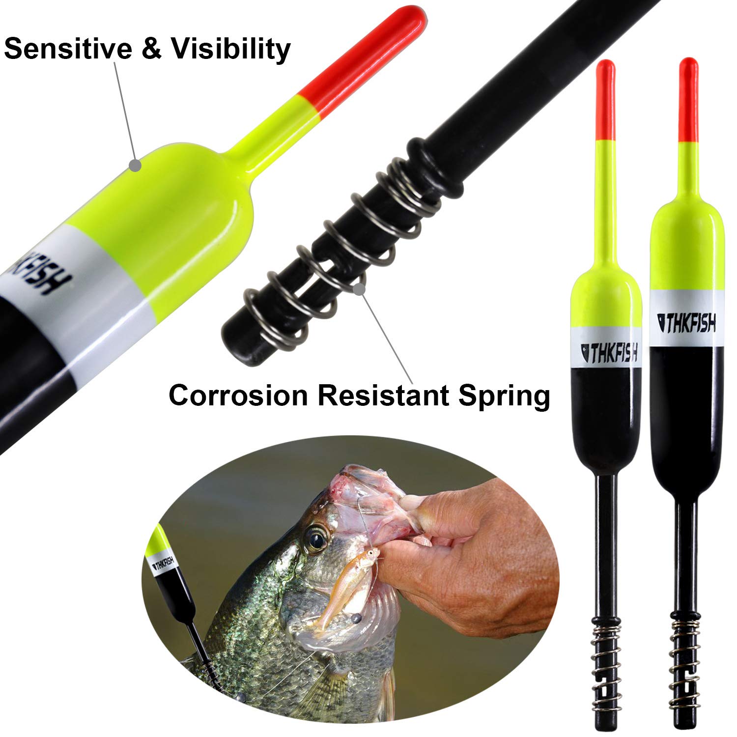 - HIGH VISIBILITY FLUORESCENT PAINT: High visibility fluorescent paint. Helping the angler visually recognize the bite from a fish. Bright fishing bobbers makes it easier to see when the fish take the bait. The adjustable sensitivity and easily adjustable position make this very easy to install and use. Very functional and effective fishing floats and bobbers.