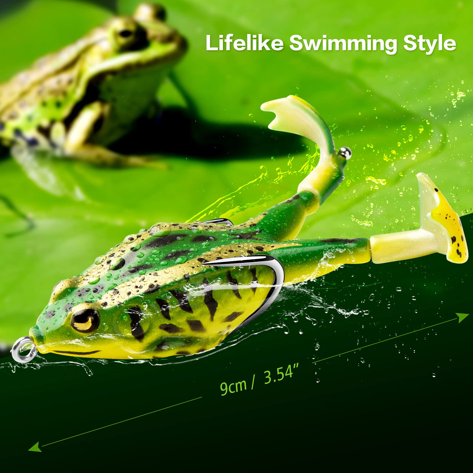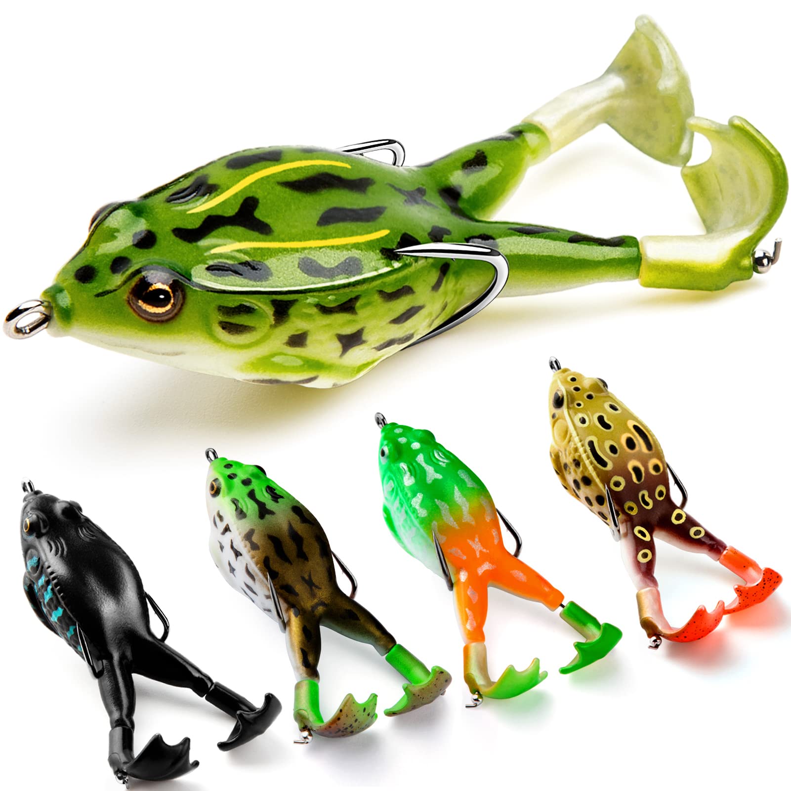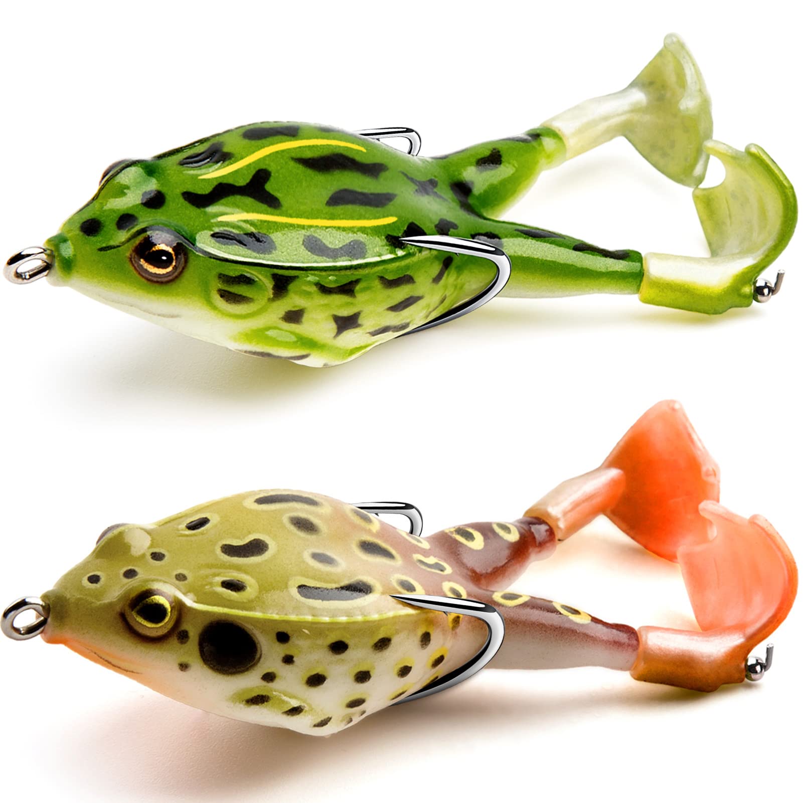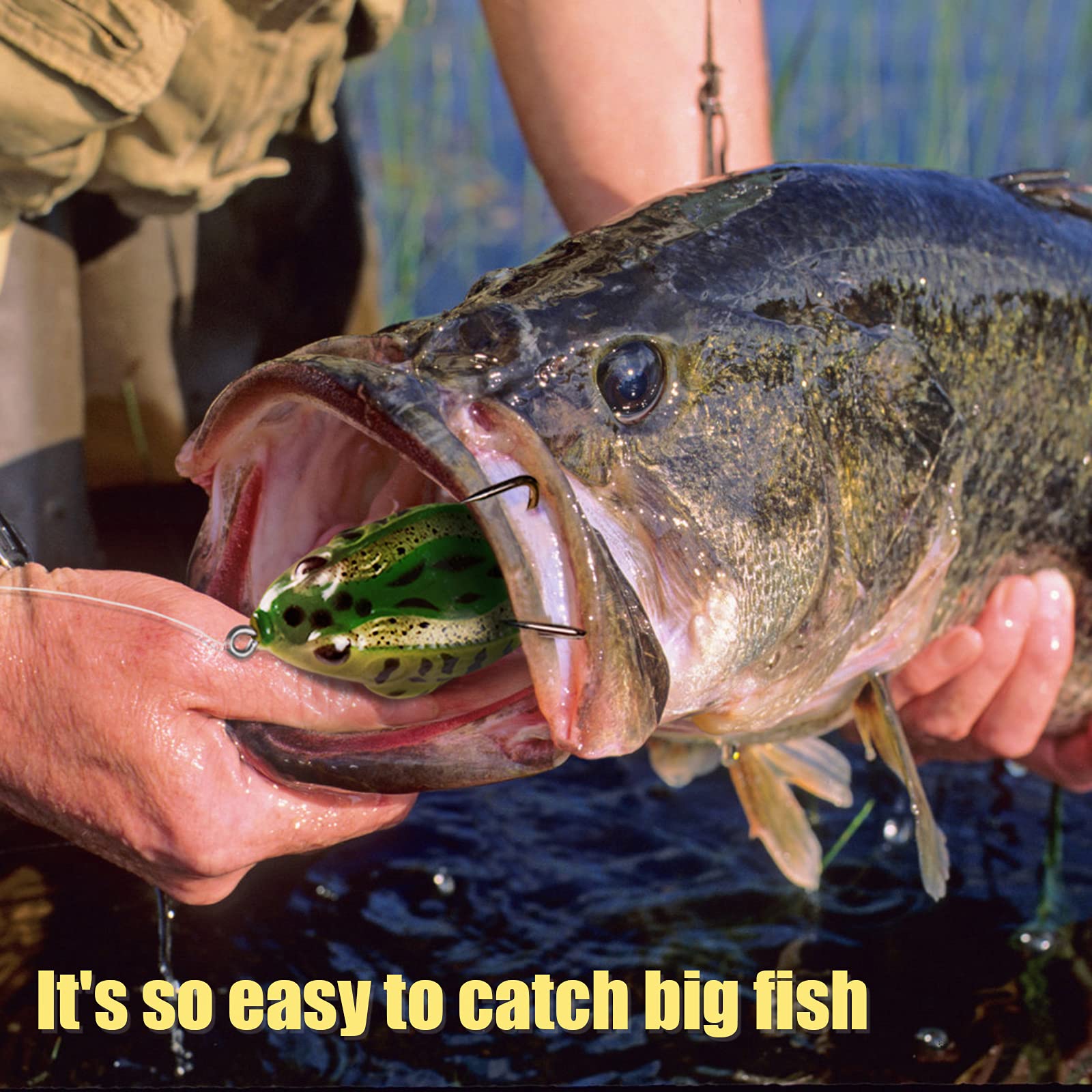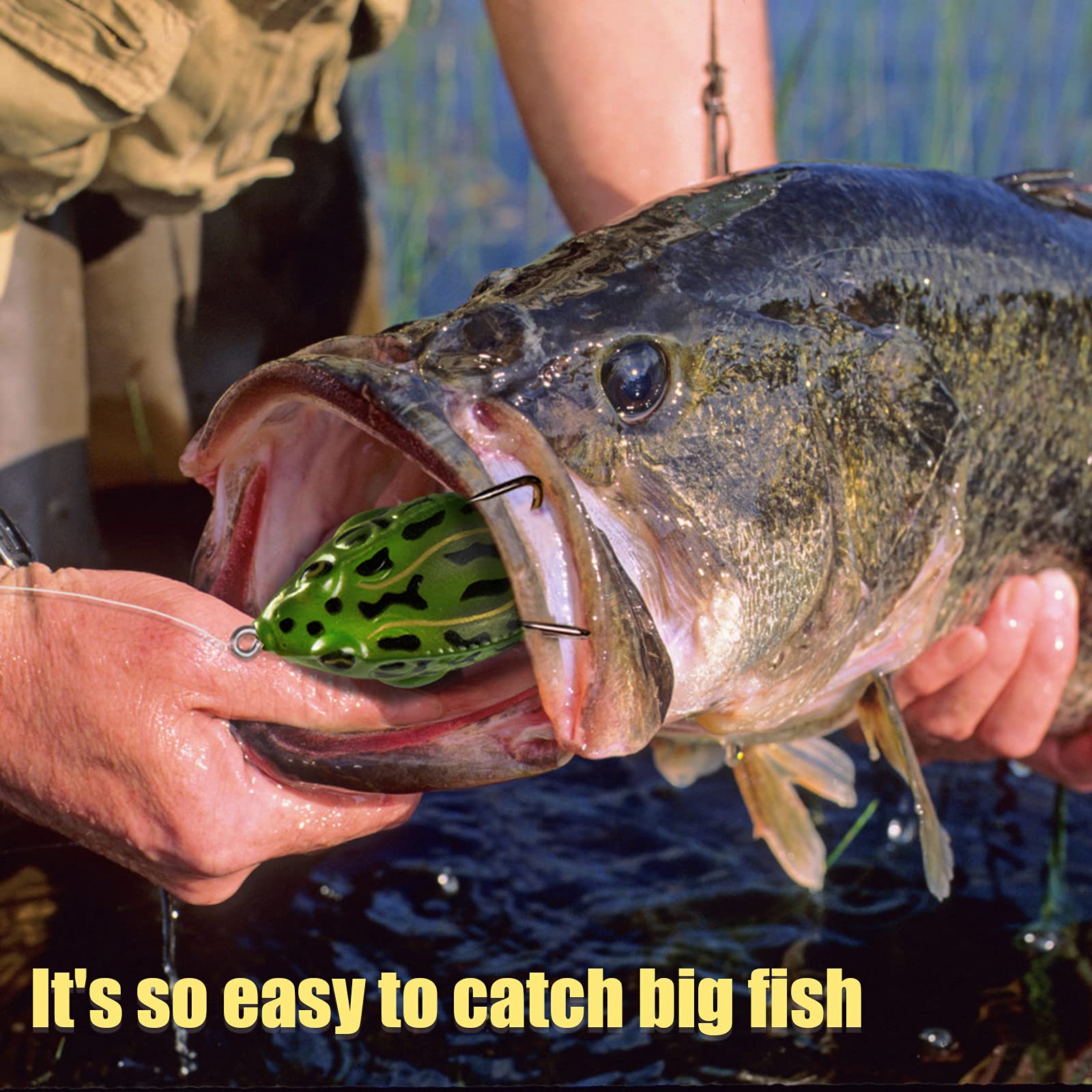 - 【Superior PVC Hollow Body】-- High-quality PVC material makes the frog fishing bait flexible, thick, elastic and durable to withstand all violent of bites. Highly imitating appearance and vivid skin of frogs make the soft plastic lures more fatal and attractive