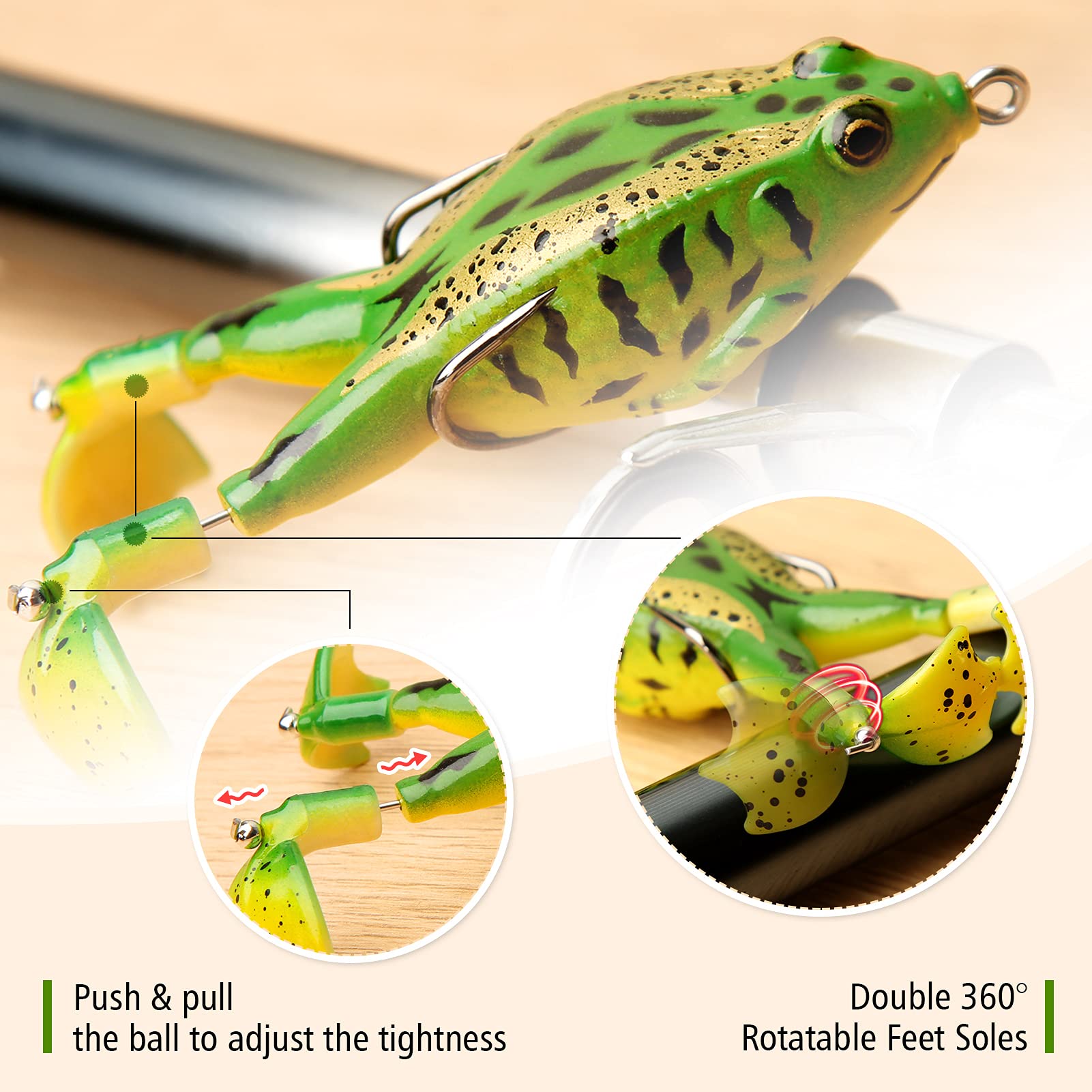 - 【Double 360°rotatable Feet Soles】-- Designed with two propeller footboard, which can swing the water surface flexibly and produce the effect of disturbing the water flow, making the Frog lures easy to be noticed and attacked by the target fish