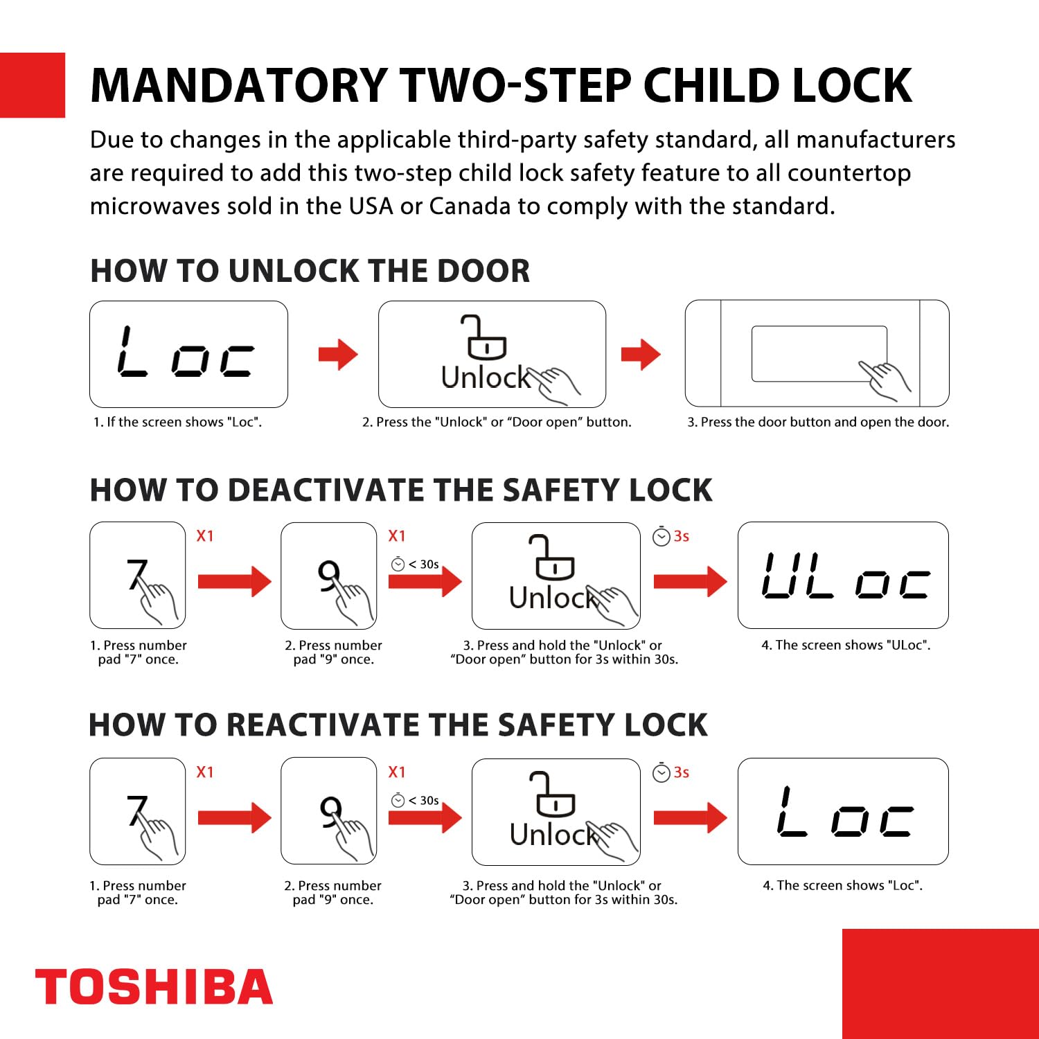 - Easy to Use: The control panel includes One Touch Start with buttons to operate 1 to 6 minutes of full-power cooking, Child Lock Function, ECO Mode, Clock, and a Kitchen Timer.