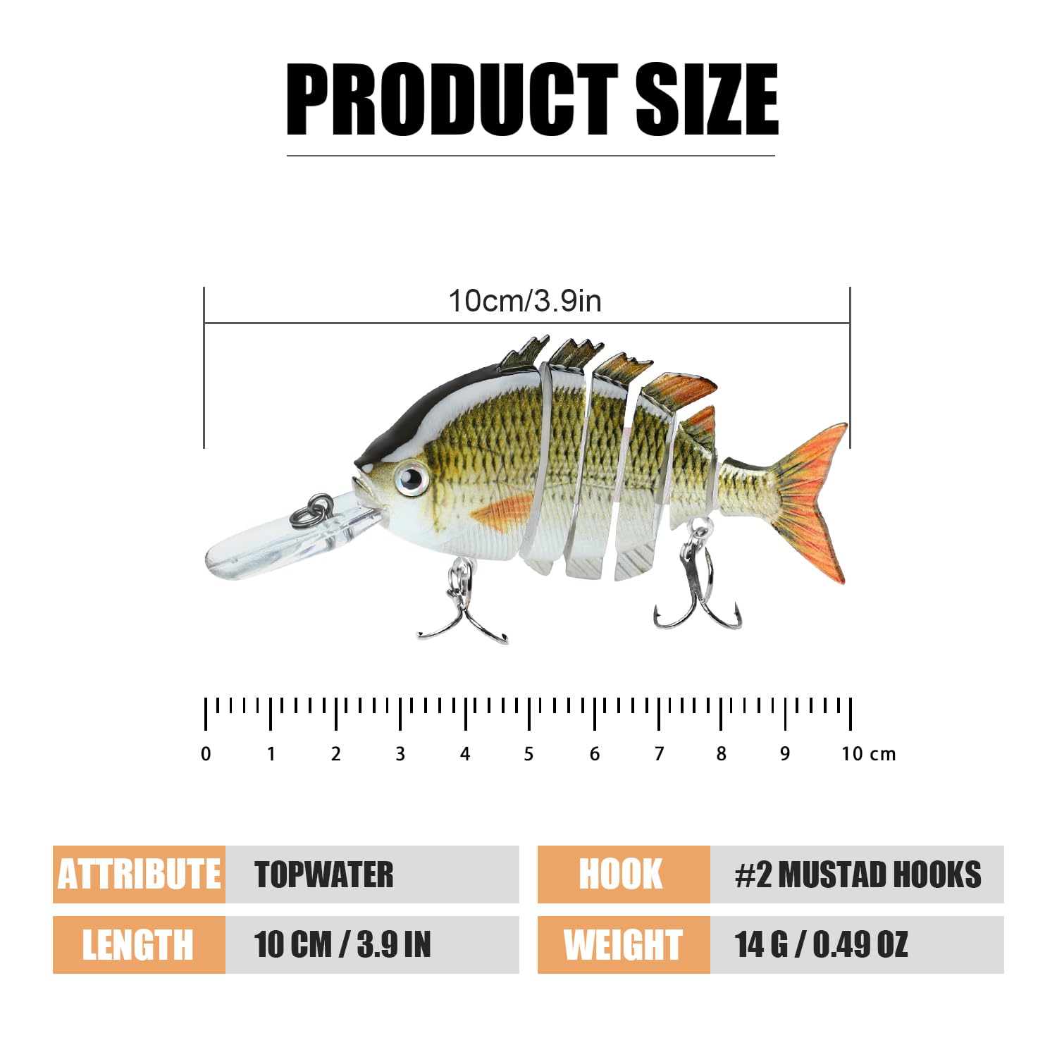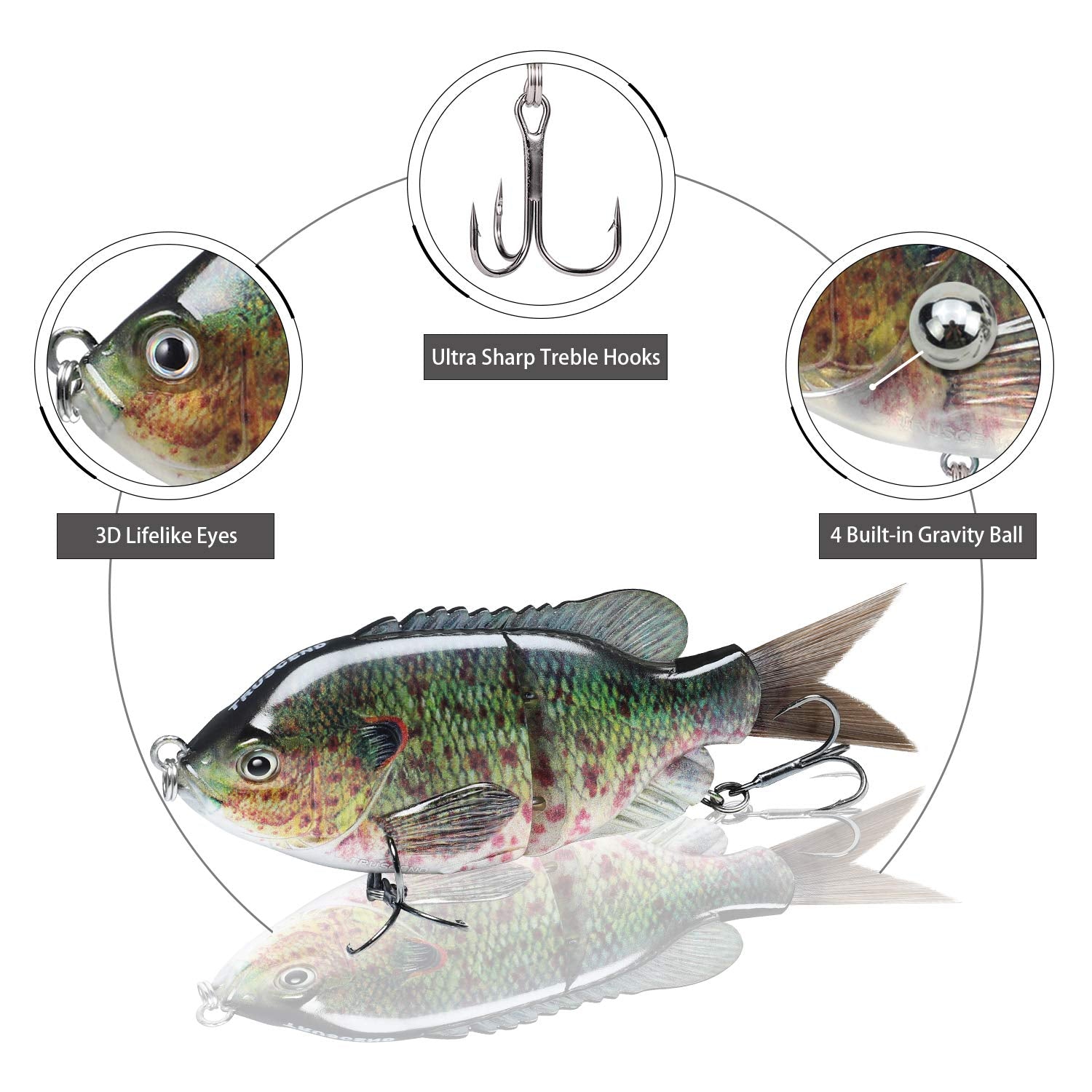 - HIGH SIMULATION: With 3D realistic looking eyes and pearl powder coating, this swimbait appears very delicate and vivid that looks like a real fish. A perfect fishing bait that easily cheats the target fishes.