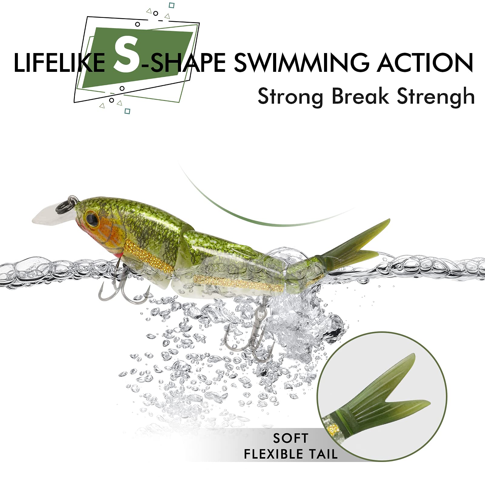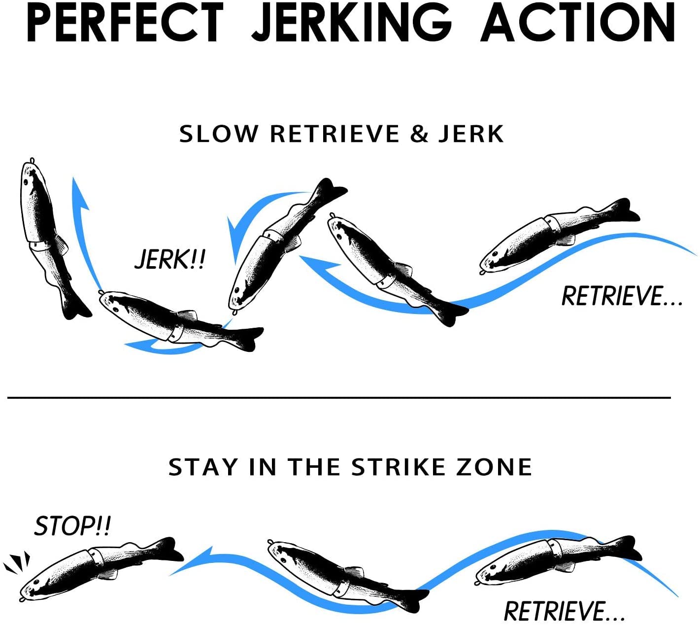 - 8 SEGMENTS LIFELIKE LURES: Designed with 8 segment multi-jointed body, TRUSCEND fishing lure can sink slowly and move flexible in water. In addition, life-like swimming actions make it attracting more catches and provoking predator fish to strike.