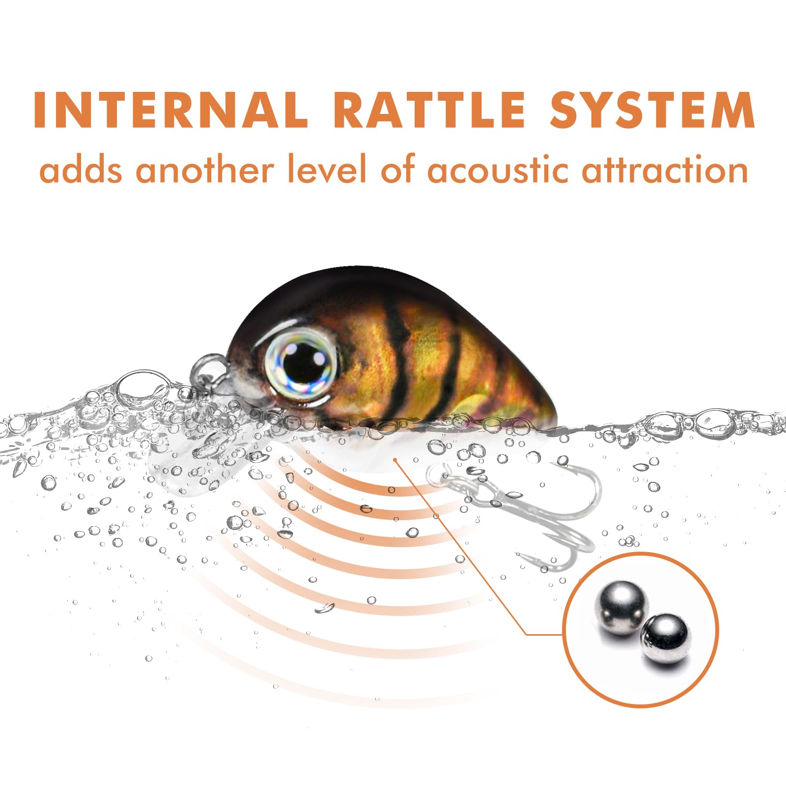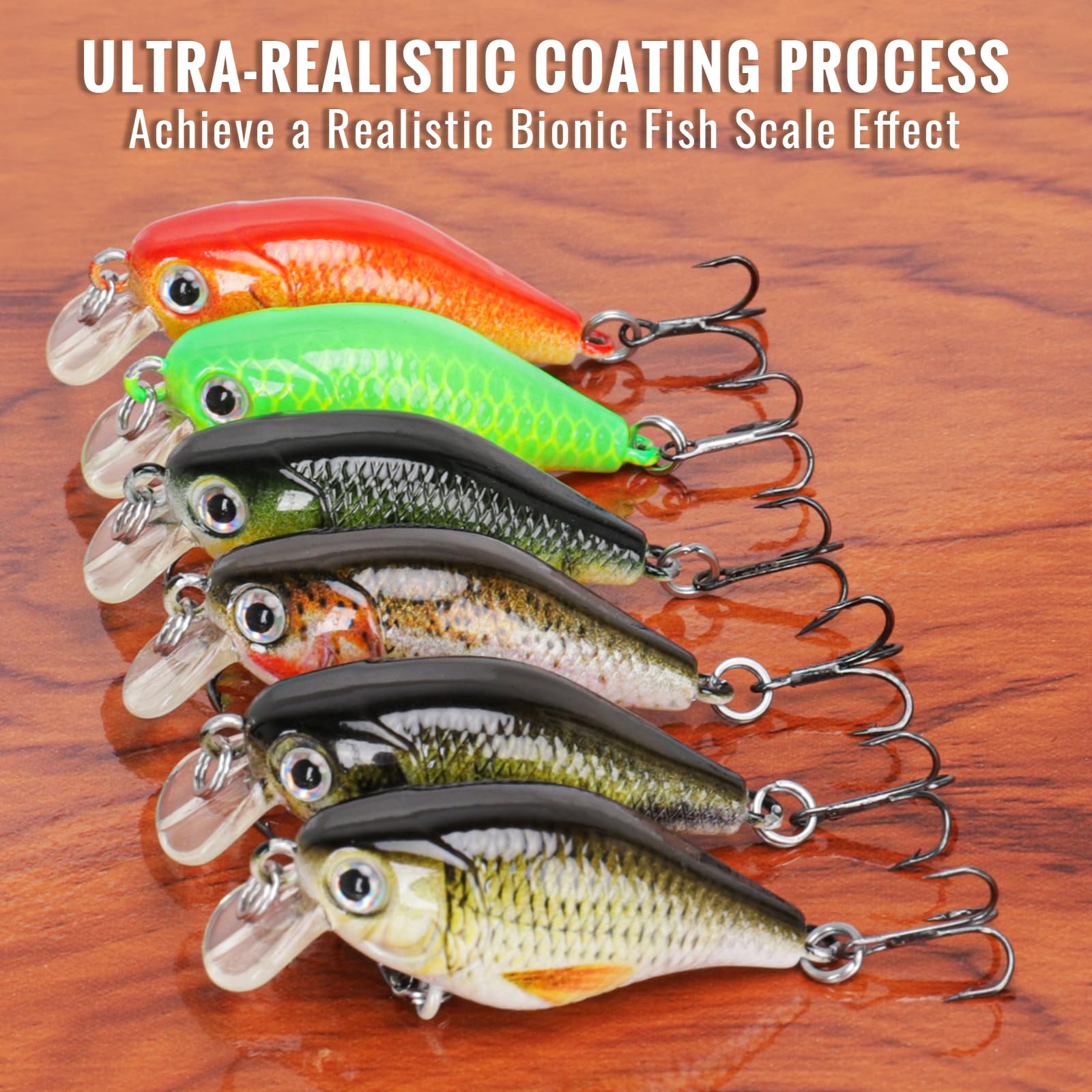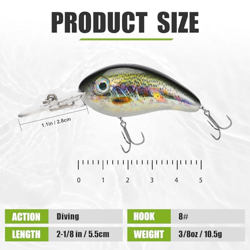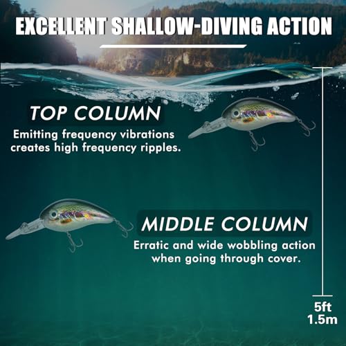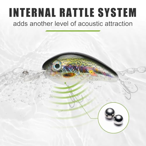 • Drive Any Hungry Predator Wild - The TRUSCEND Fishing Lure has a faint rattle chamber creates a light knocking sound as well that provokes strikes without spooking carefully fish. Reflective body laser design, which achieve a realistic bionic fish scale effect. The translucent body makes the fish's body as transparence as a diamond underwater, sparkling in the refraction of sunlight makes it easier for fish to find the bait in dirty water.