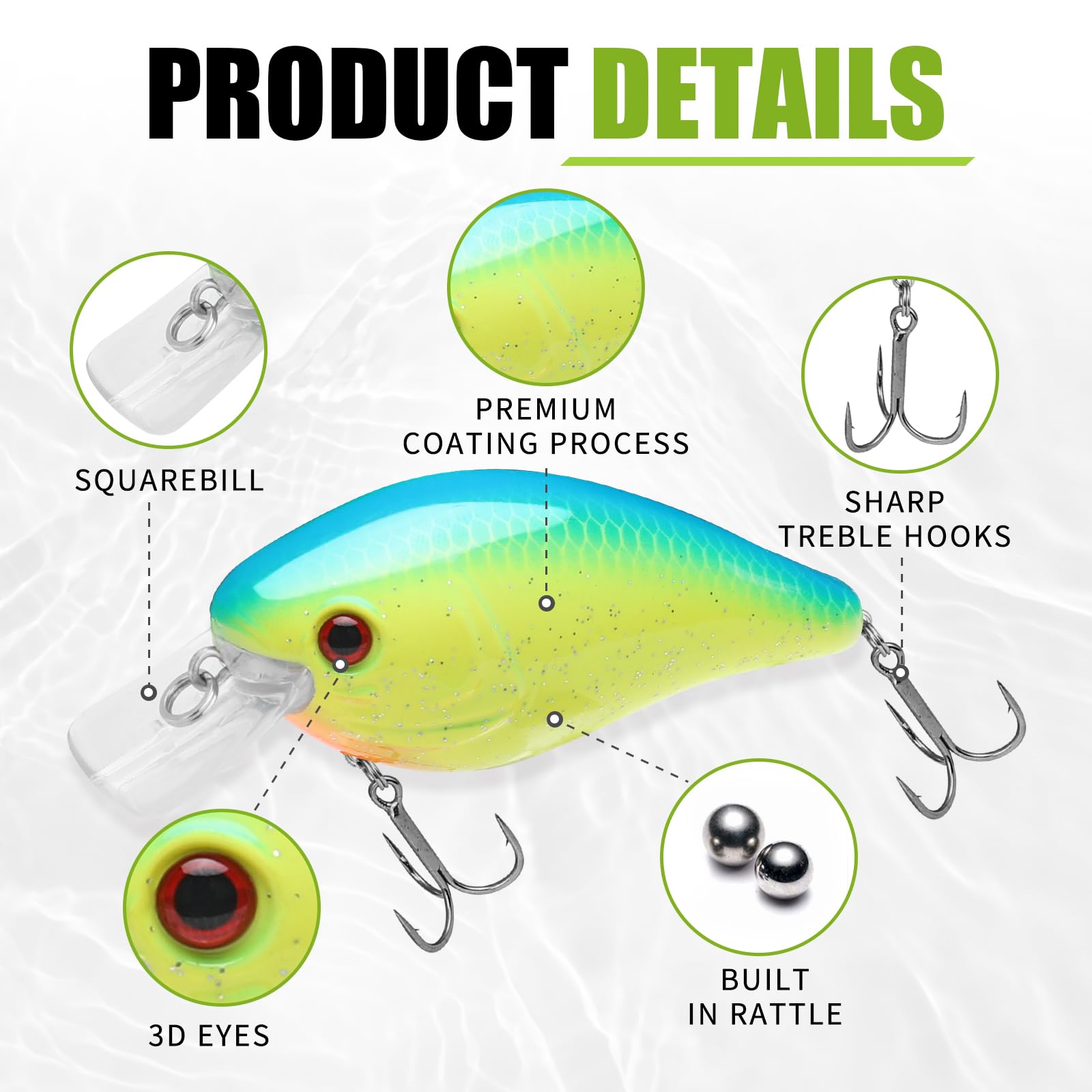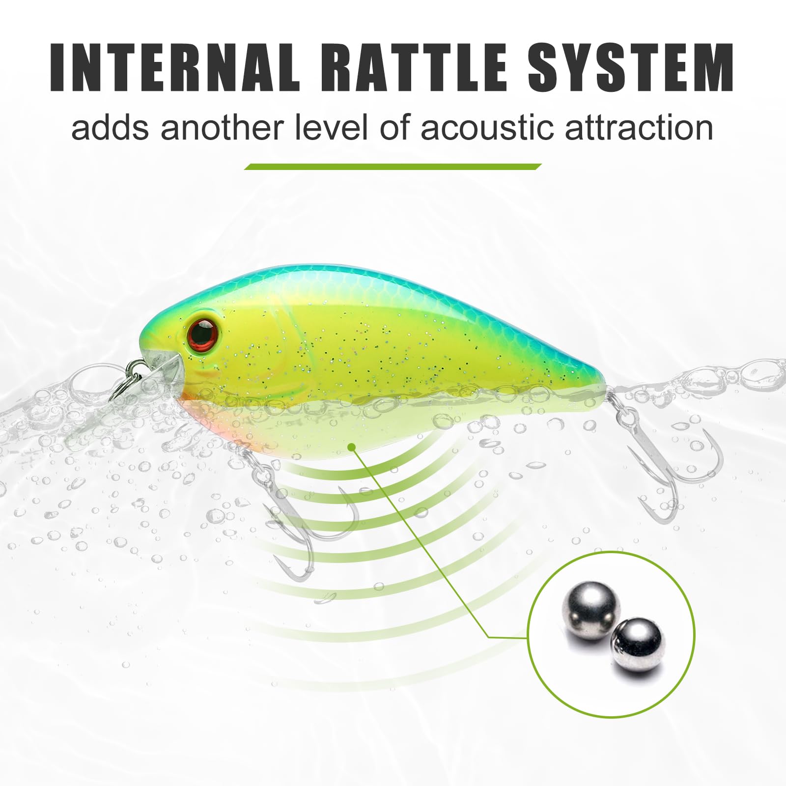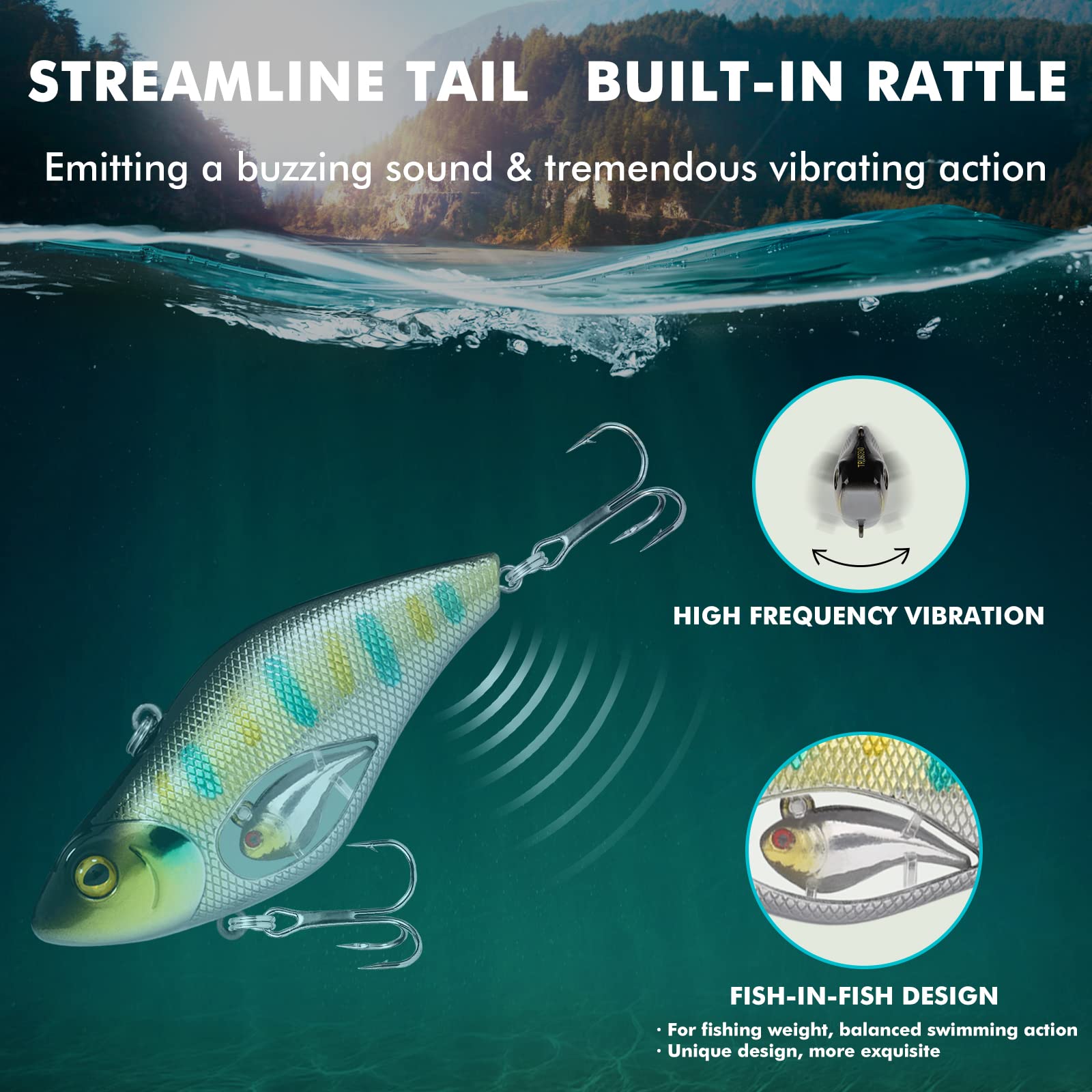 • Drive Any Hungry Predator Wild - The TRUSCEND Fishing Lure has a faint rattle chamber creates a light knocking sound as well that provokes strikes without spooking carefully fish. Reflective body laser design, which achieve a realistic bionic fish scale effect. The translucent body makes the fish's body as transparence as a diamond underwater, sparkling in the refraction of sunlight makes it easier for fish to find the bait in dirty water.