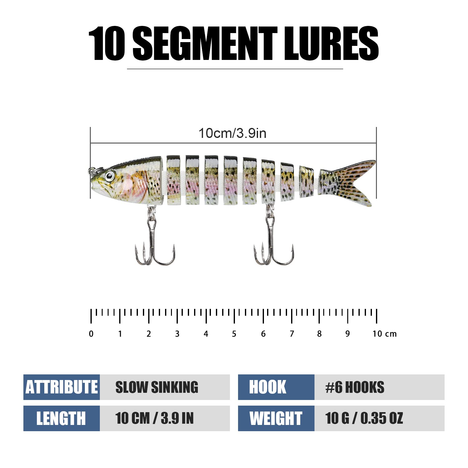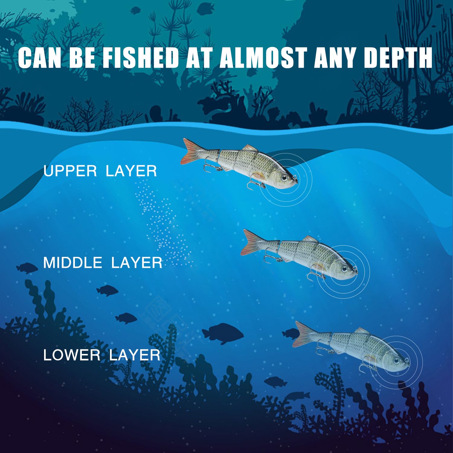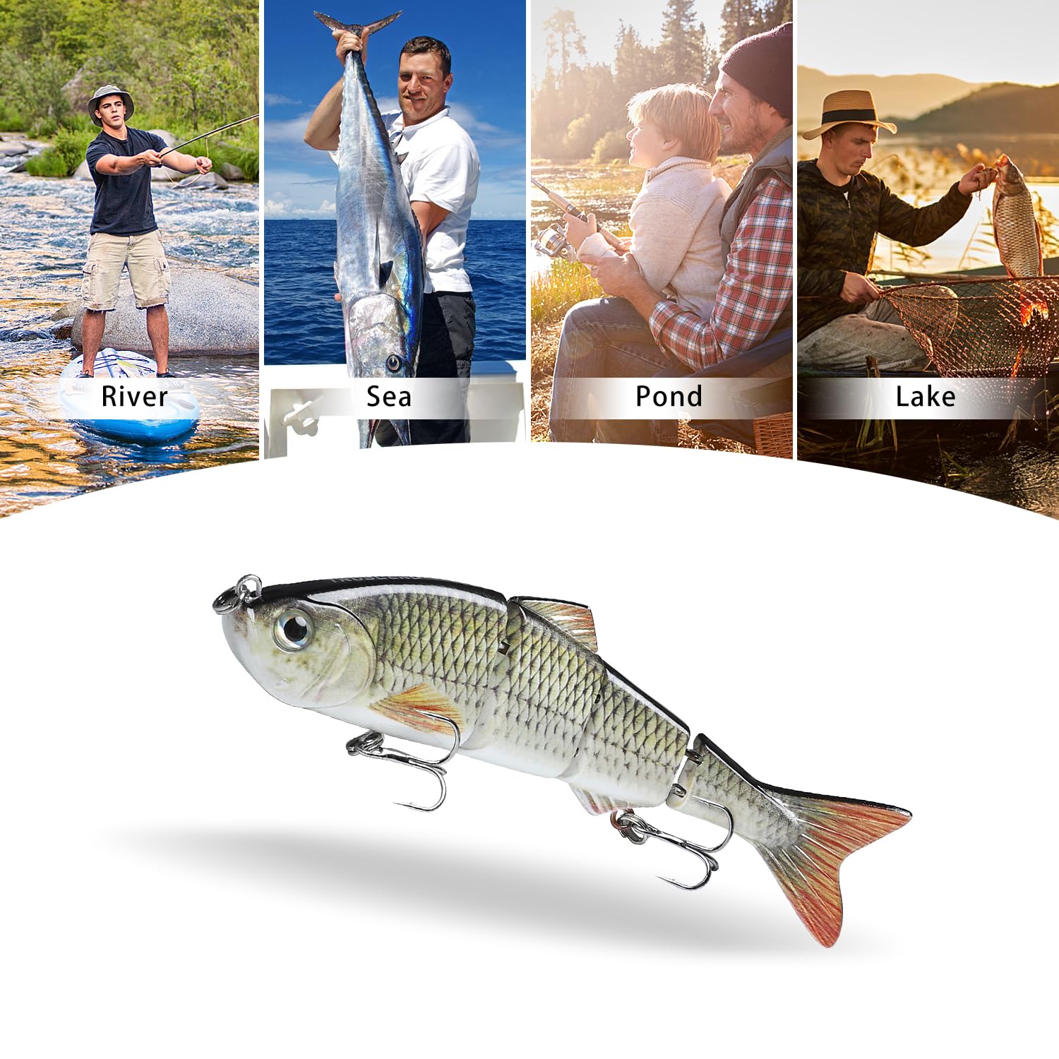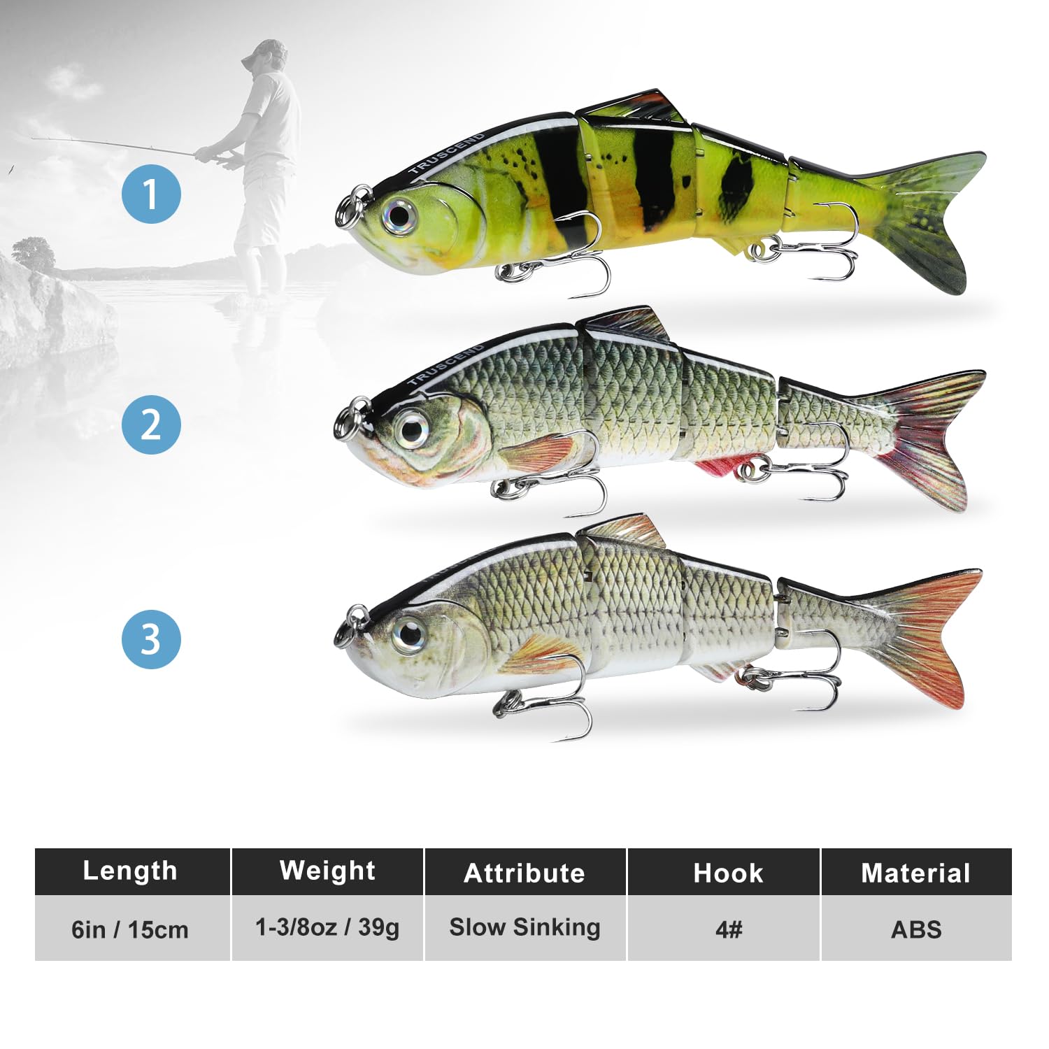 • Highly Versatile Performance For Every Angler - This TRUSCEND Jointed Crank baits are most effective when retrieved slowly, where they can give off the illusion they are travelling quickly. They can be widely used to catch largemouth and smallmouth bass, trout, yellow perch, walleye, crappie, pike, muskie, sunfish, roach, snook etc. This swimbait is quite suitable for both inshore saltwater & freshwater fishing and functions well in all water layers.