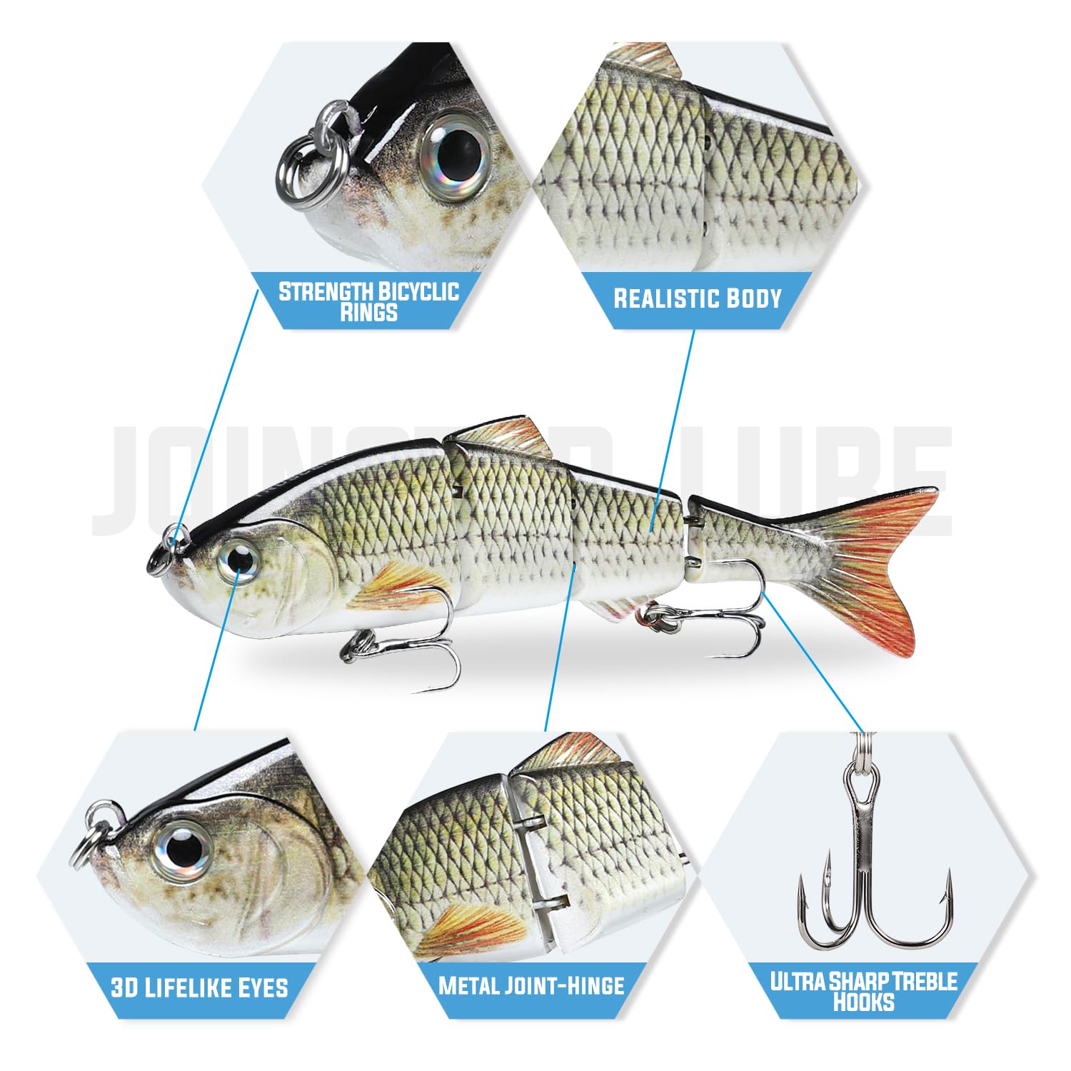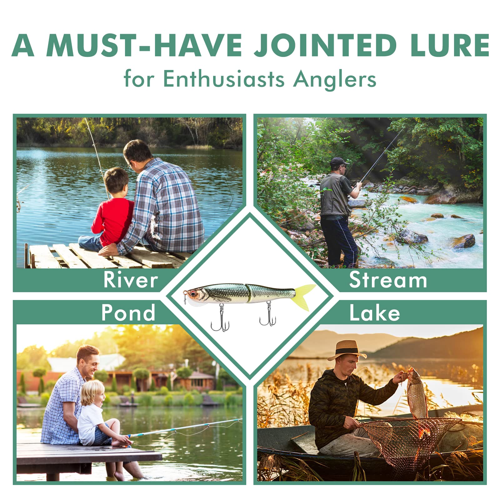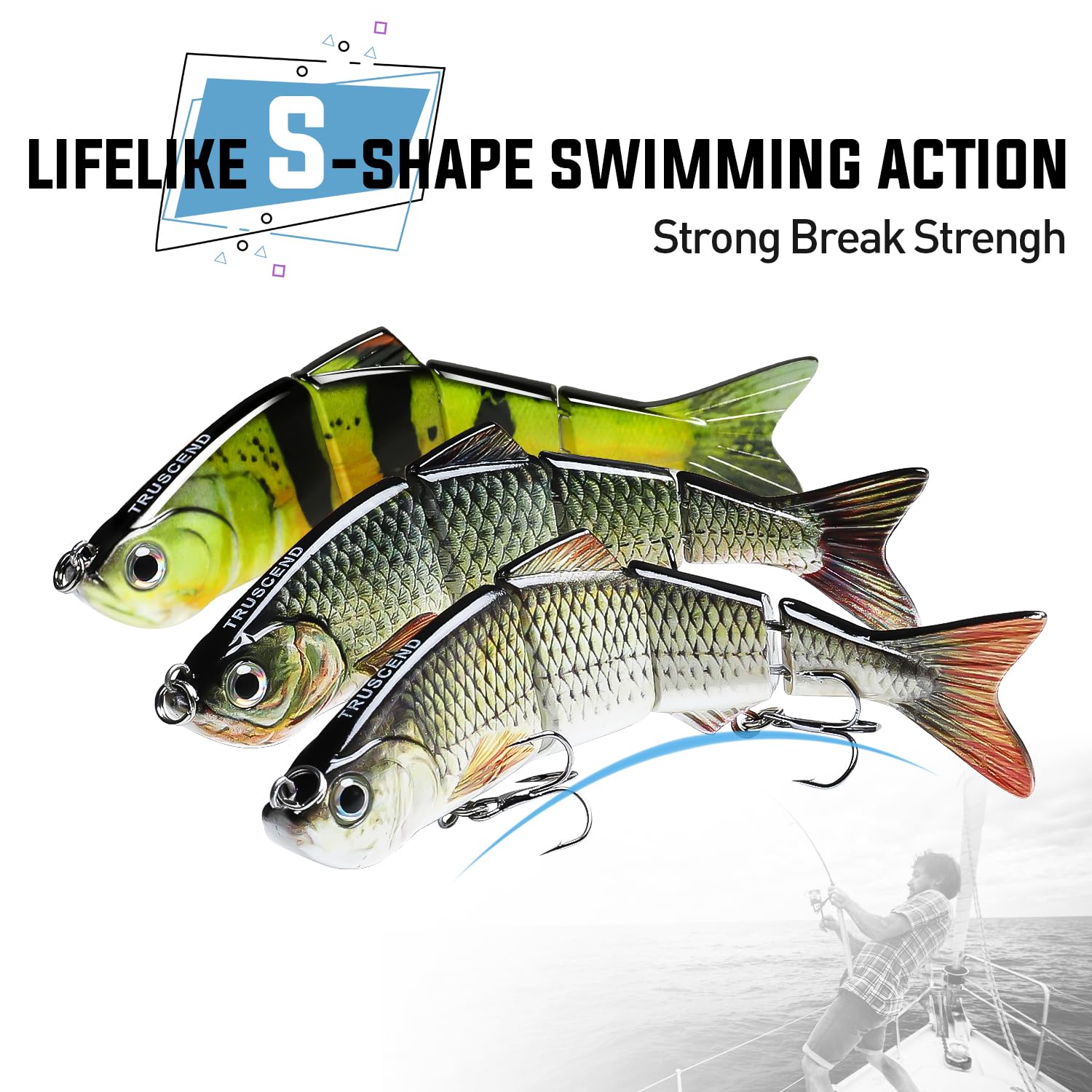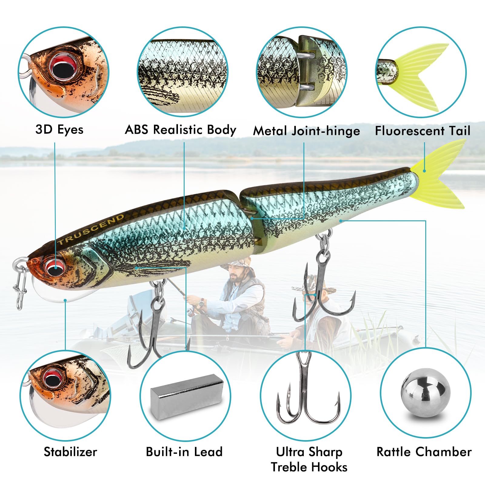 • TRUSCEND Newest Jointed Crankbait - This crank bait considered by many to be the best running glide baits, the all-purpose crankbait is equally effective whether cast or trolled. The swimbait is crafted with super durable dual stainless steel hinged joint connection, lightweight and durable plastic body construction enhance the action.